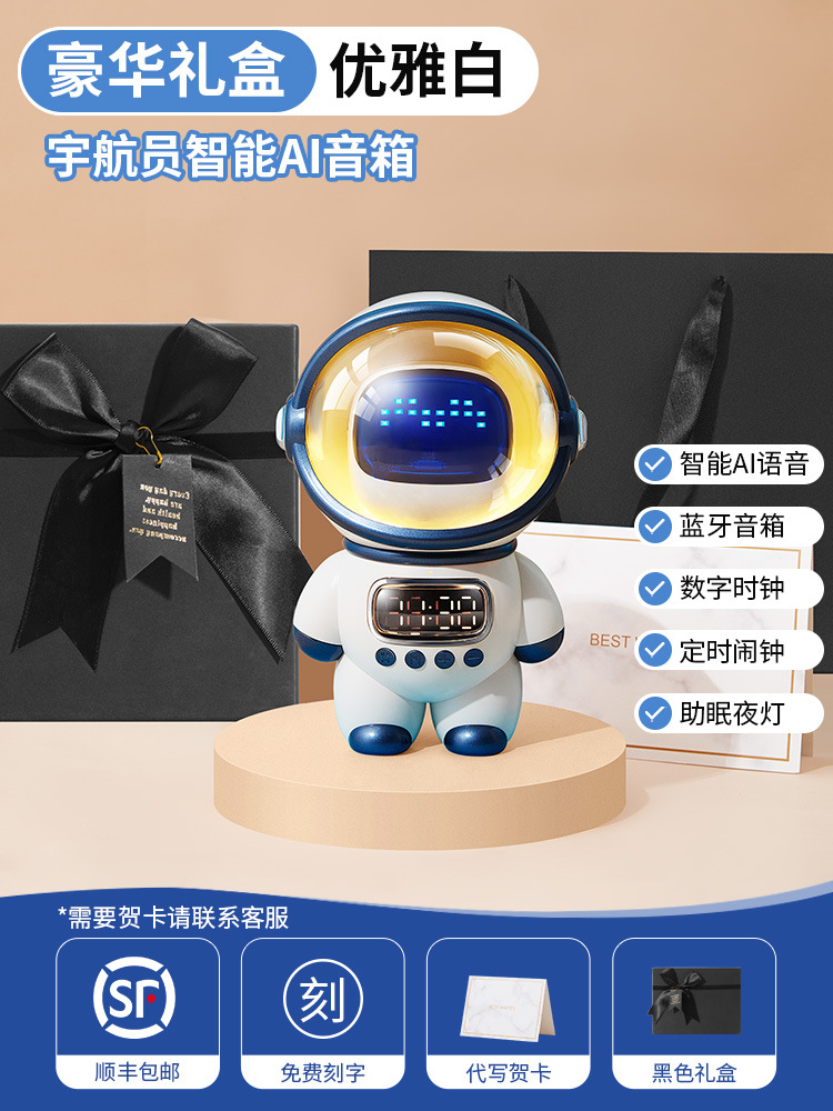 • 남자친구 전용 우아한 화이트 [블랙 선물 상자] 지능형 AI 음성 + 스피커 + 시계 알람시계 + 야간 조명