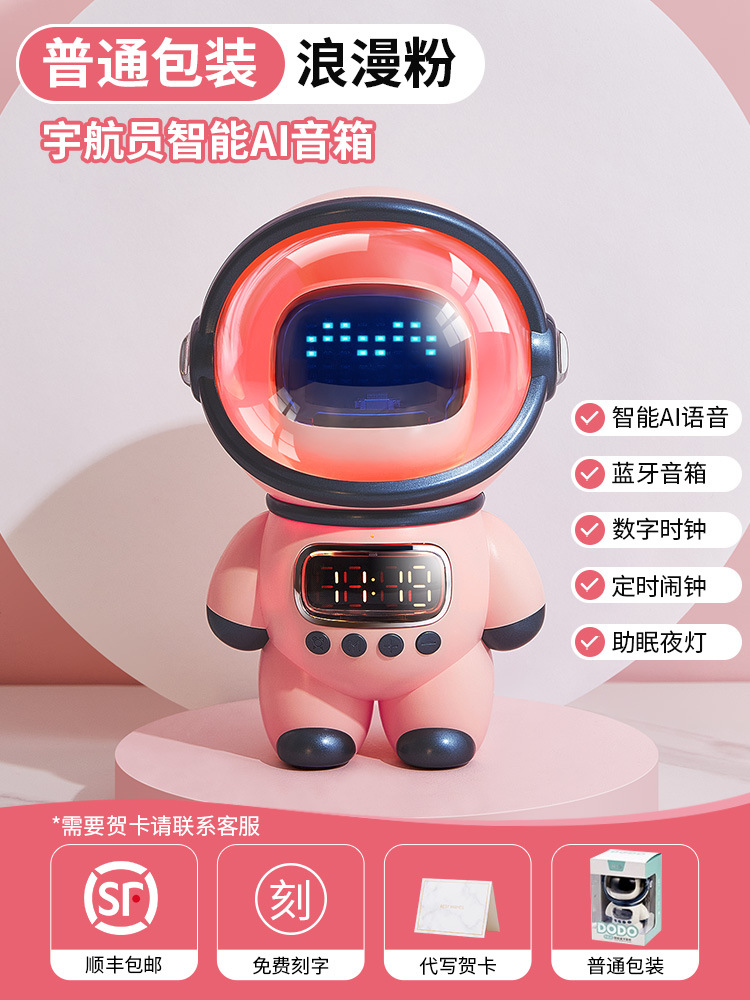 • 로맨틱 핑크 [절묘한 포장] 지능형 AI 음성 + 스피커 + 시계 알람 시계 + 야간 조명