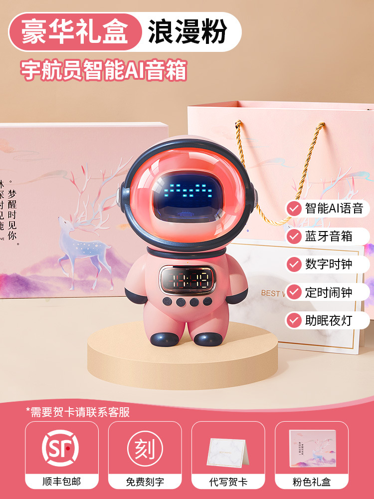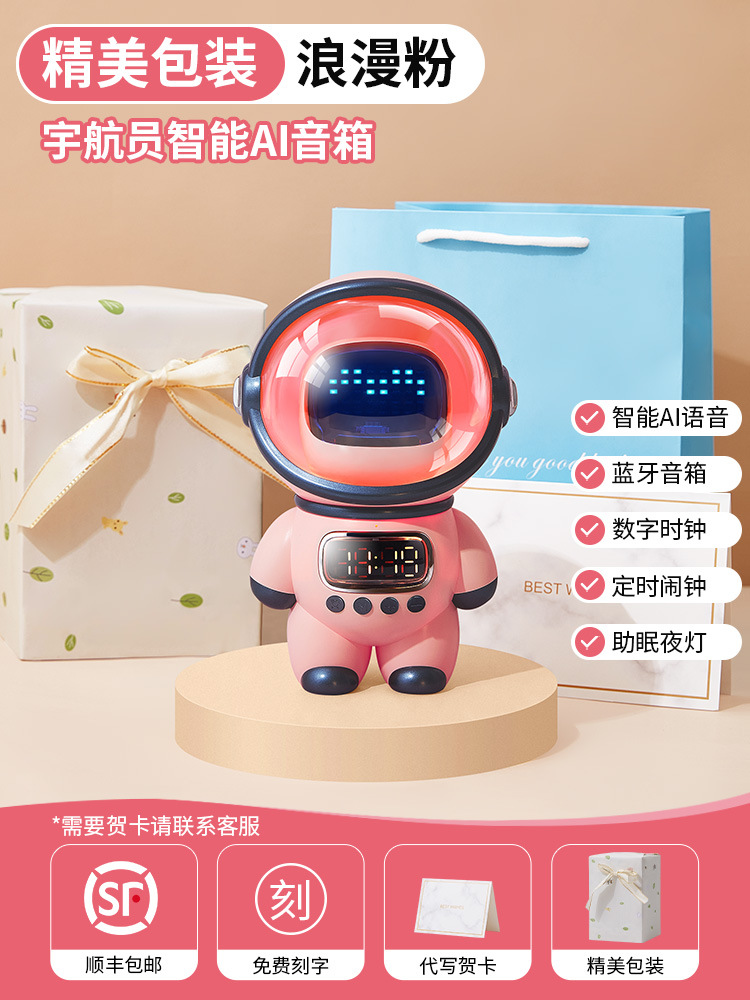 • 로맨틱 핑크 [핑크 선물 상자] 지능형 AI 음성 + 스피커 + 시계 알람 시계 + 야간 조명