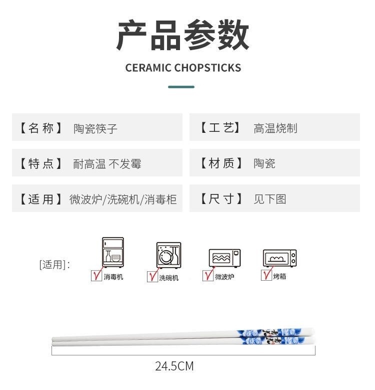 세라믹 젓가락, 식품 등급, 미끄럼 방지, 곰팡이 방지, 청소 용이, 경덕진 고급 식기스토어 가기