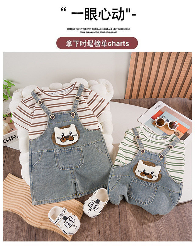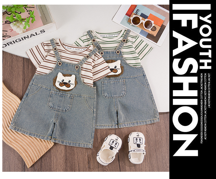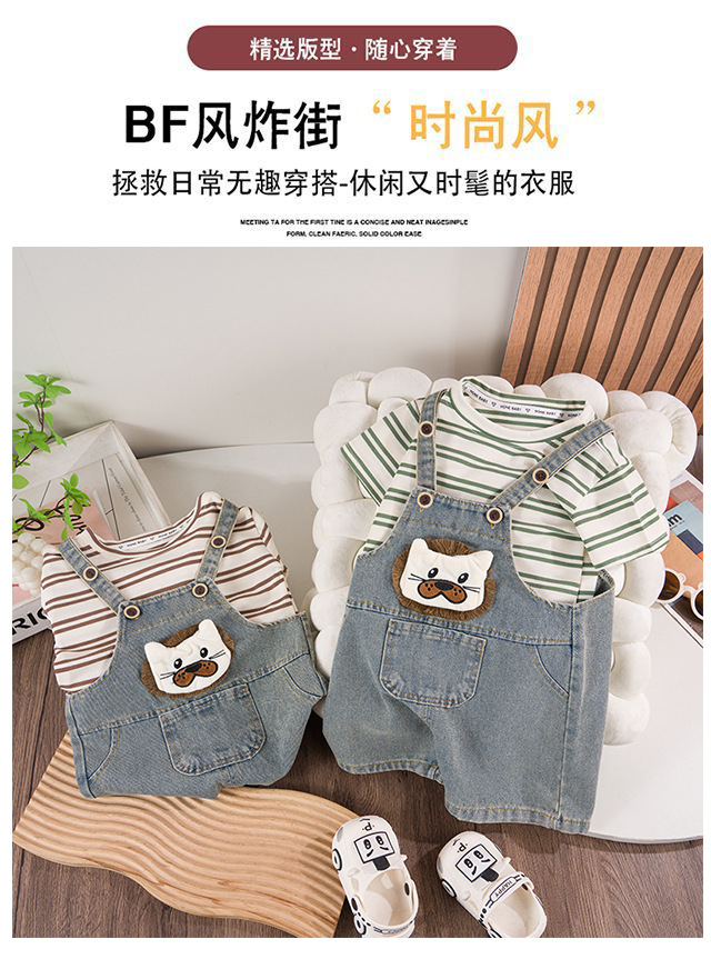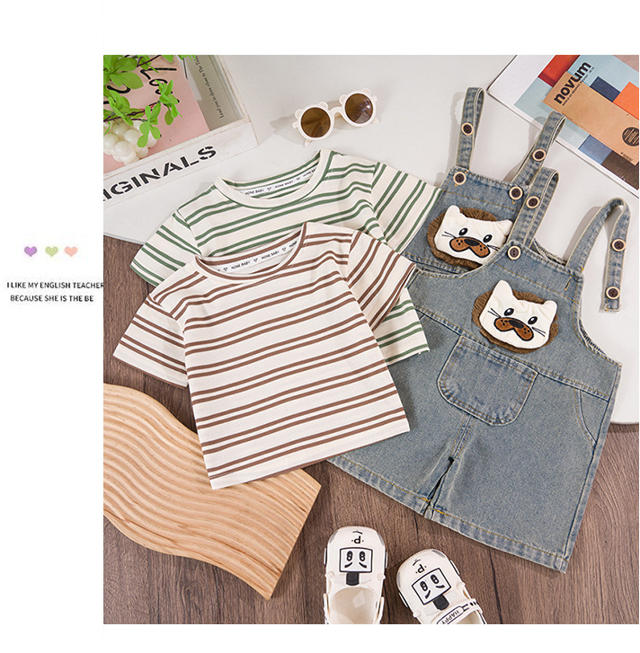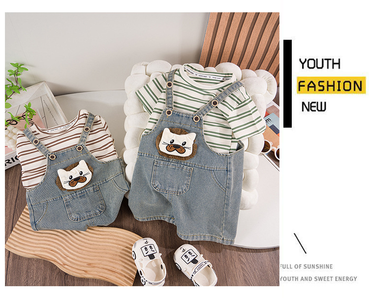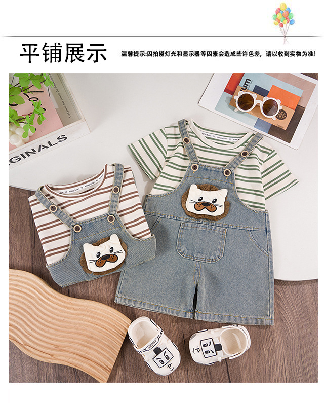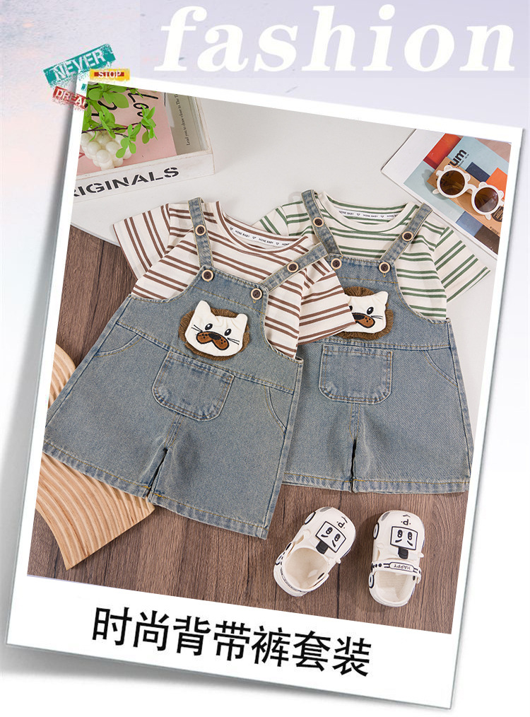 2025 새로운 아동복 아동복 여름 아기 어린이 반팔 작업복 정장 아기 두 세트 공장 재고 있음스토어 가기