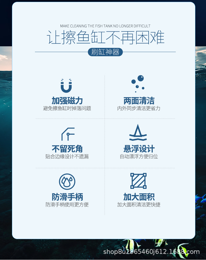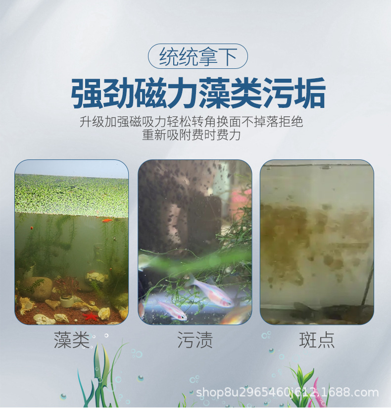 수조 자석 브러시, 초강력 자석 유리 닦는 도구, 조류 스크레이퍼 브러시, 양면 청소 수조 청소 도구스토어 가기
