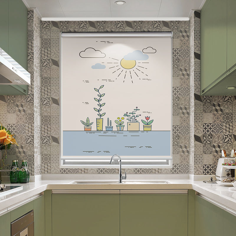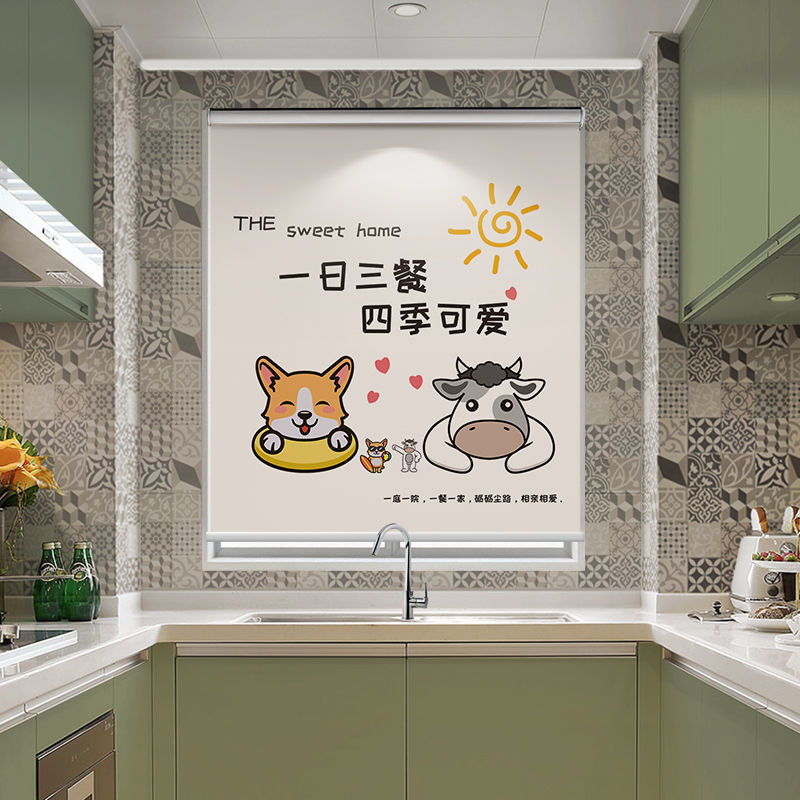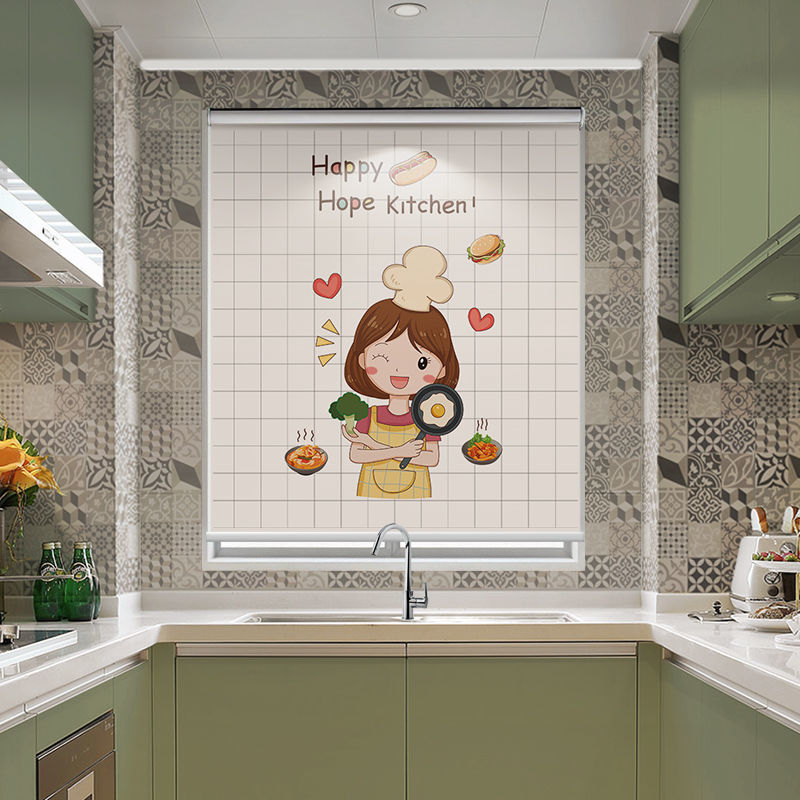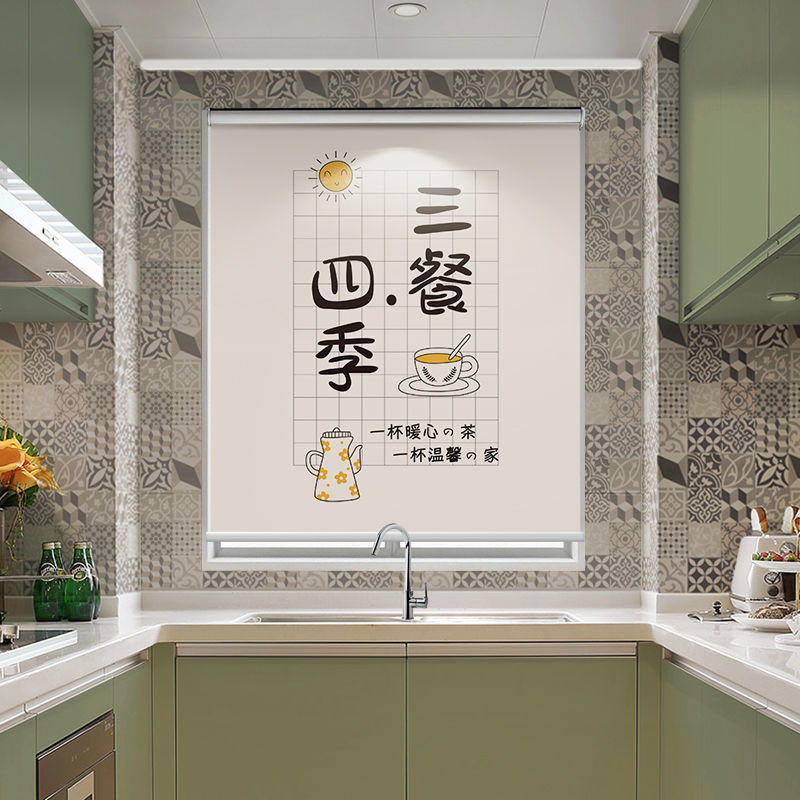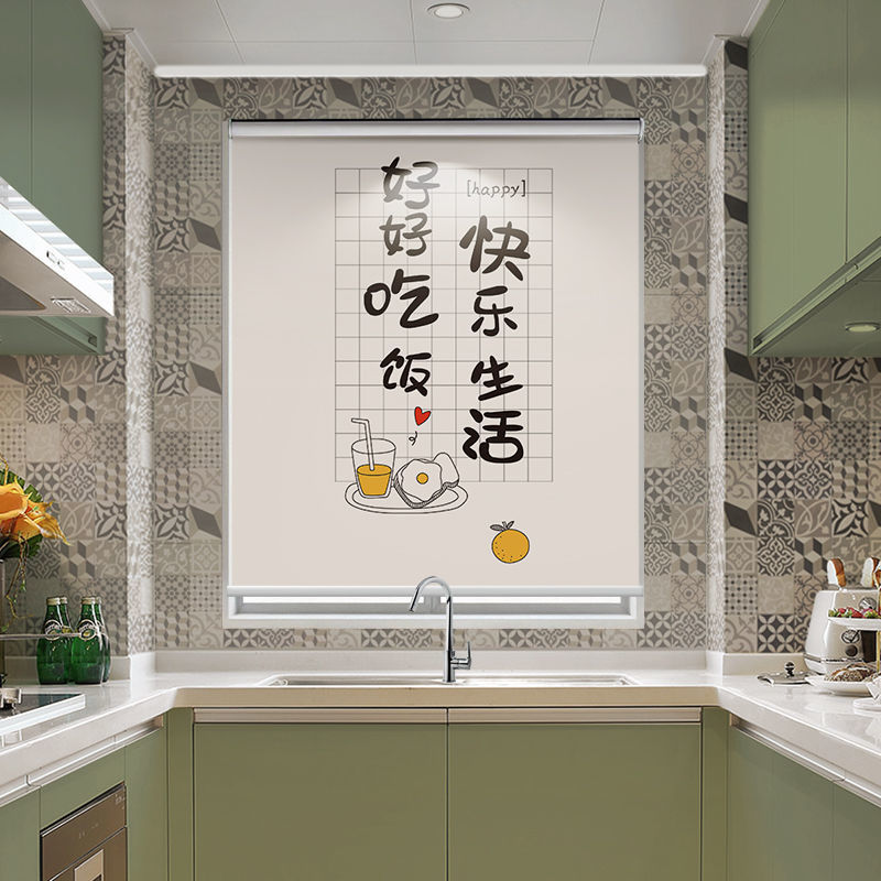 주방 커튼 펀치 무료 설치 창 커튼 가정용 방수 및 내유성 음영 및 양산 롤러 풀 롤러 셔터스토어 가기