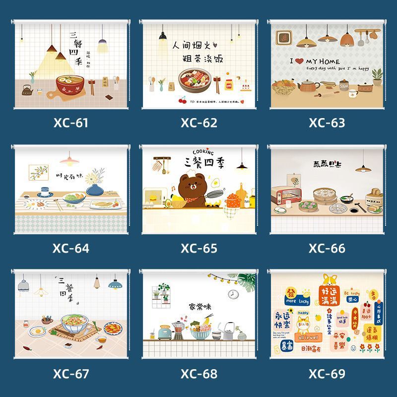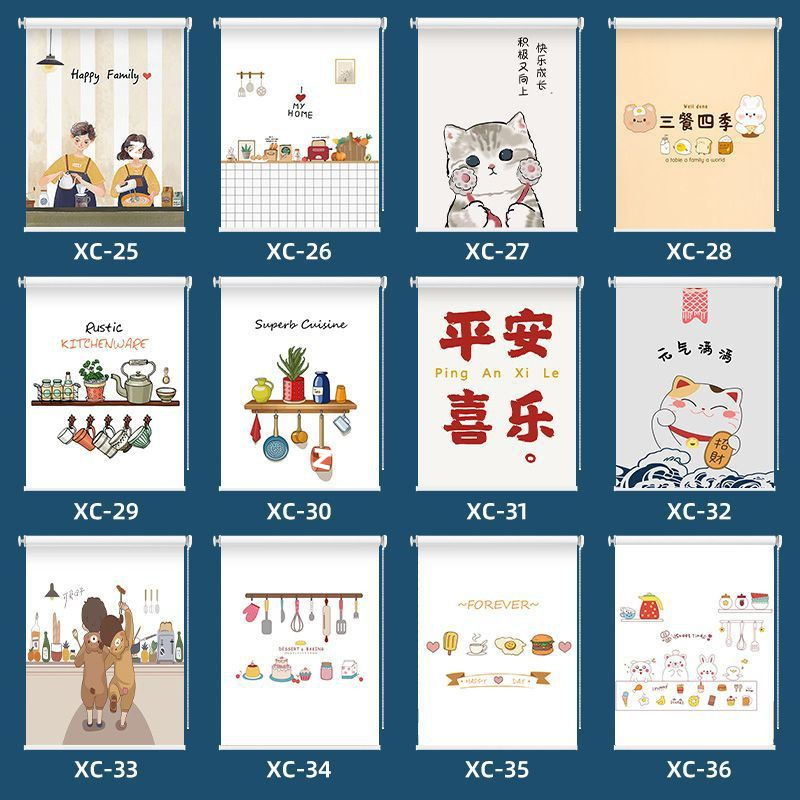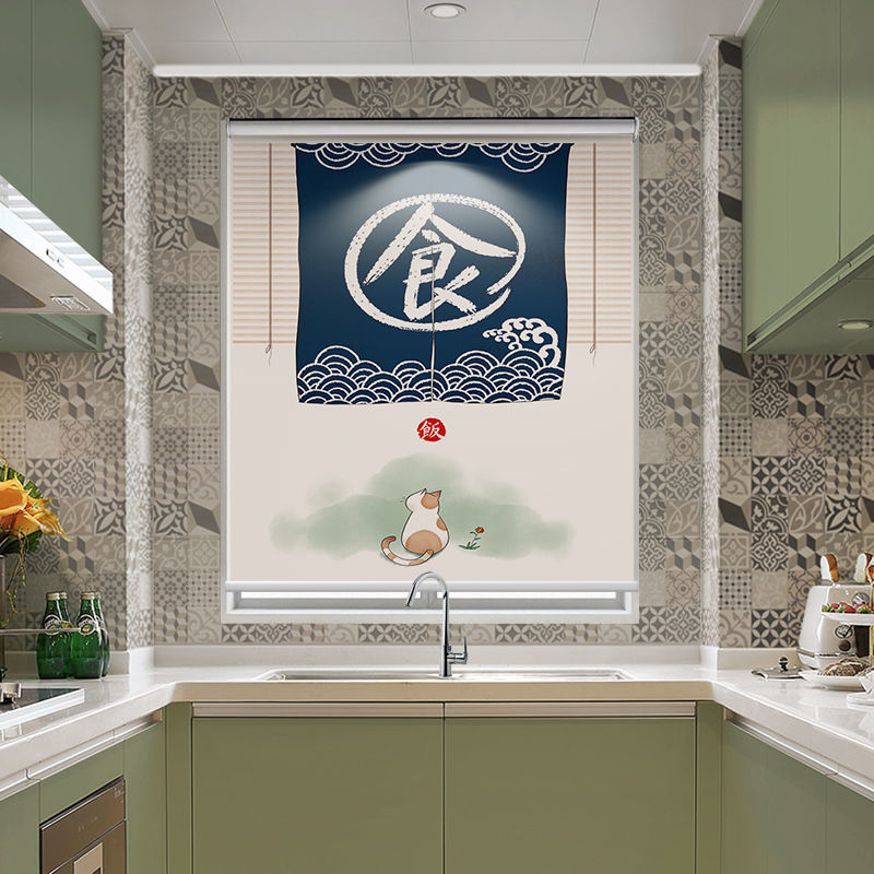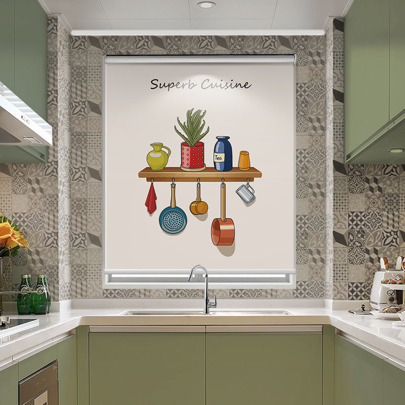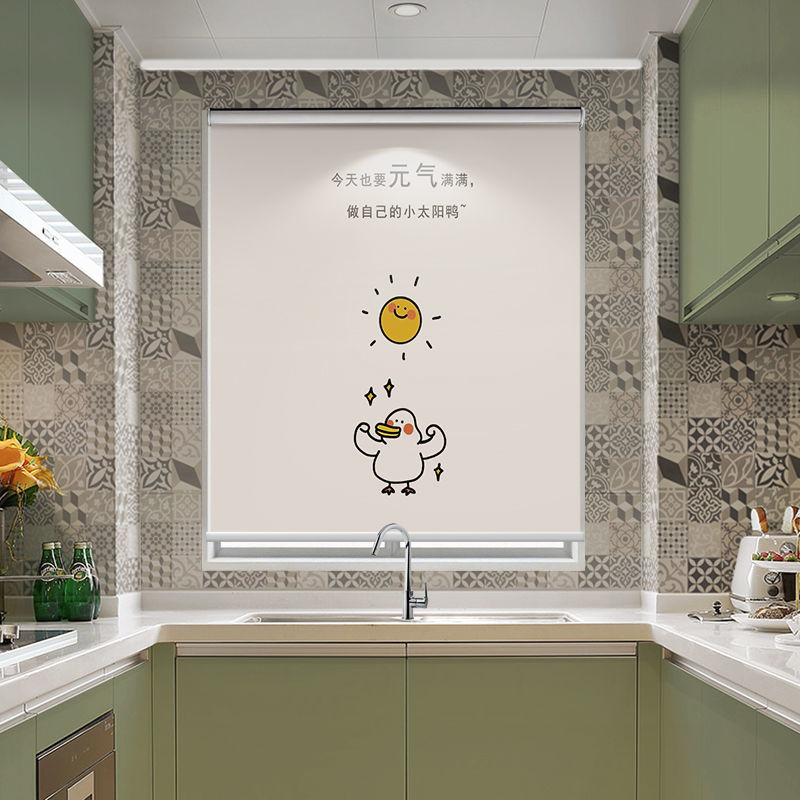 주방 커튼 펀치 무료 설치 창 커튼 가정용 방수 및 내유성 음영 및 양산 롤러 풀 롤러 셔터스토어 가기