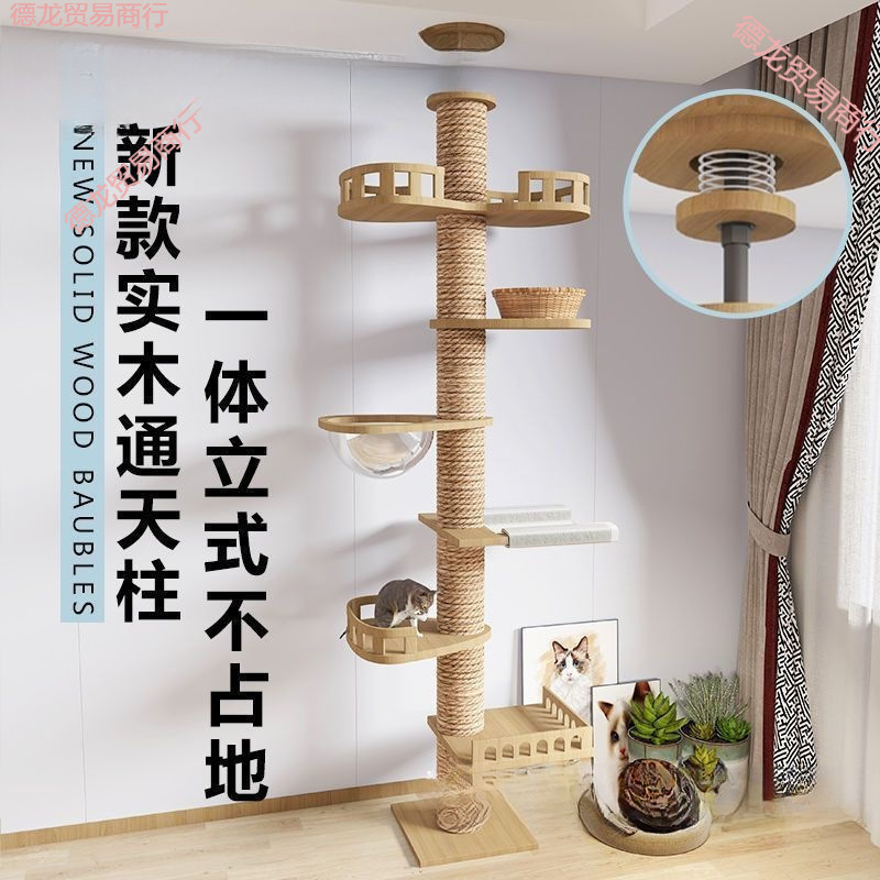 트리하우스 고양이 스크래치 기둥, 천장부터 바닥까지 이어지는 고양이 클라이밍 프레임, 고양이 트리 가구, 우주 캡슐 고양이, 고양이를 위한 원목스토어 가기