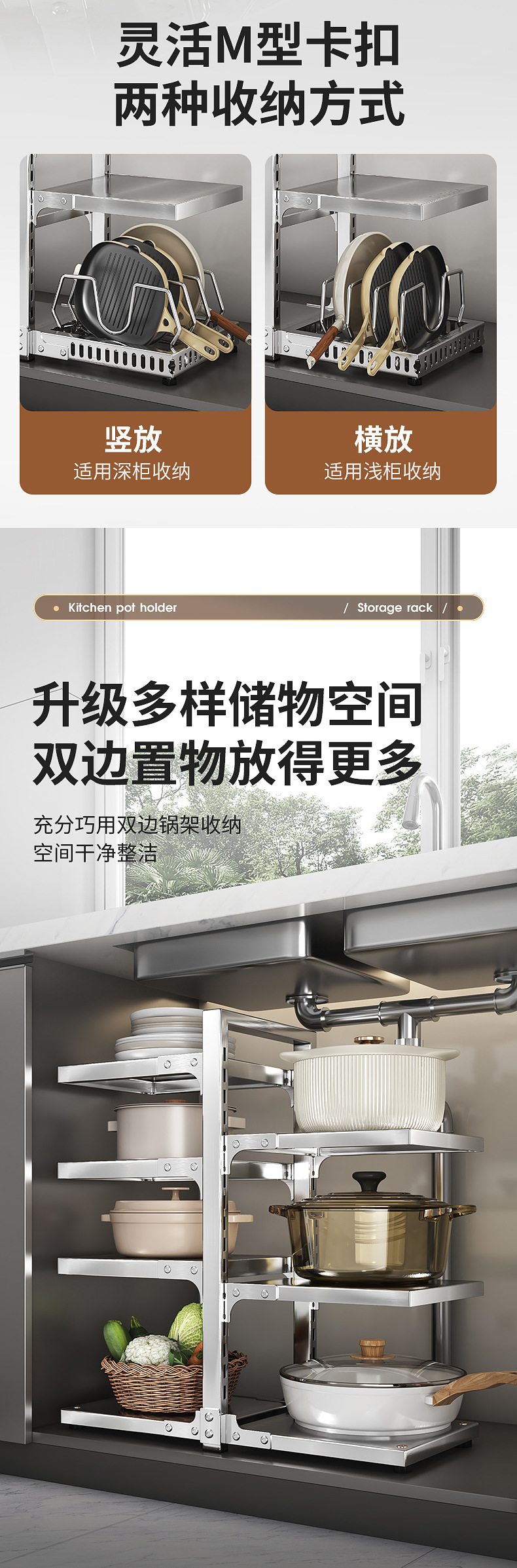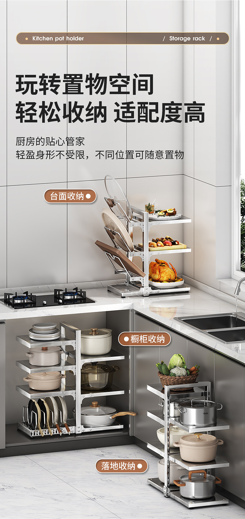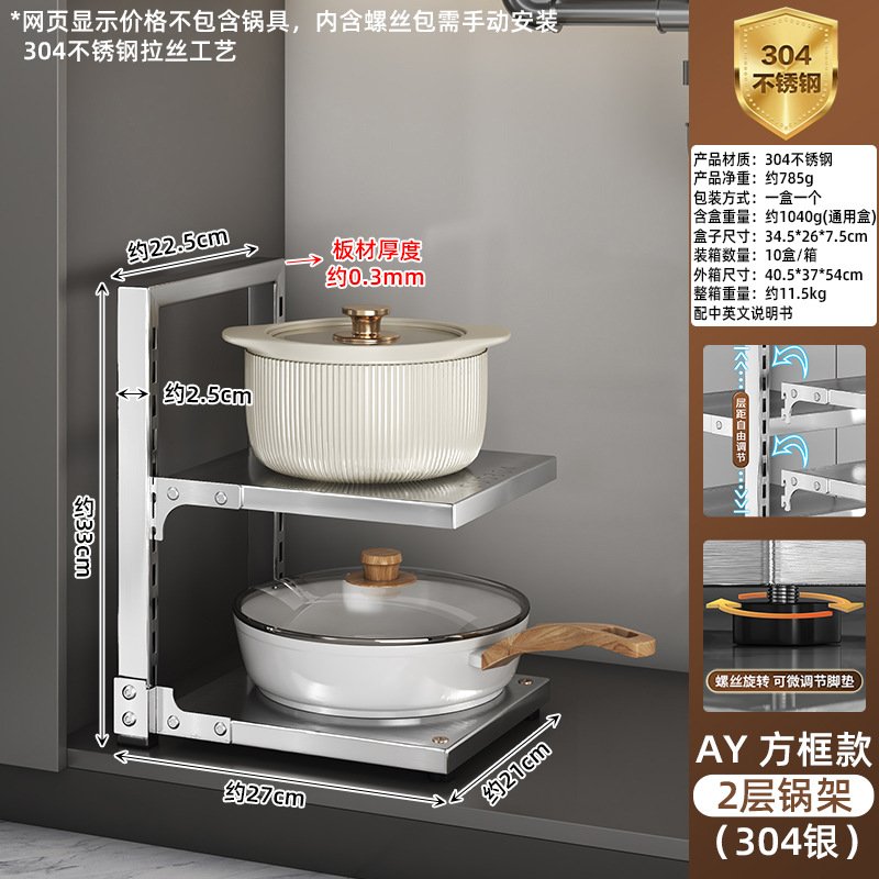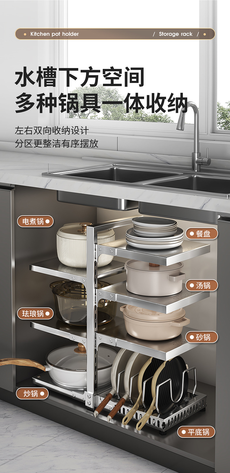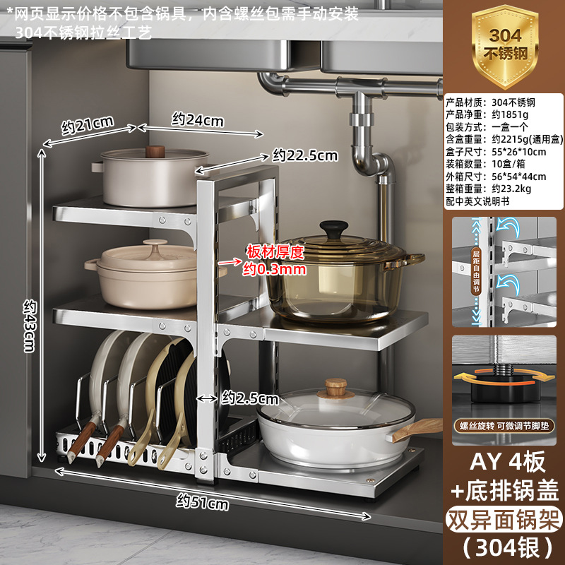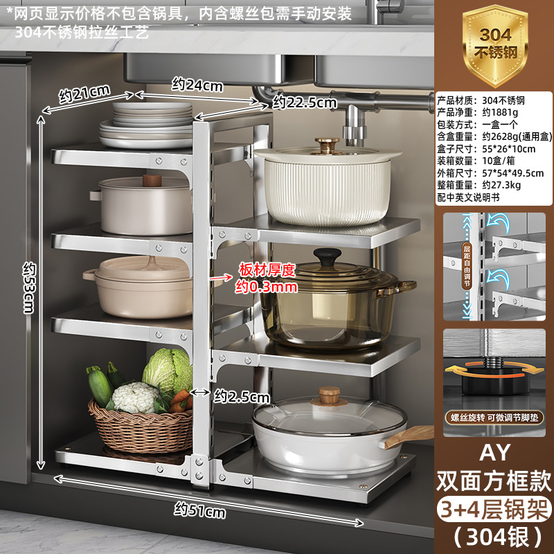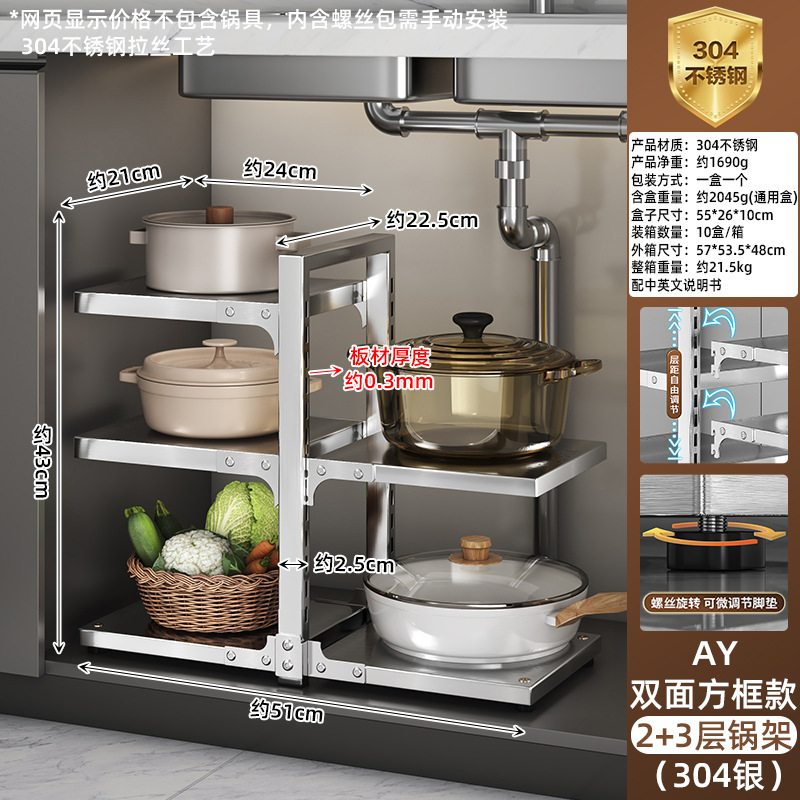 304 스테인레스 스틸 냄비 랙 캐비닛 싱크 다층 냄비 저장 주방 조리대 선반 조정 가능한 도매