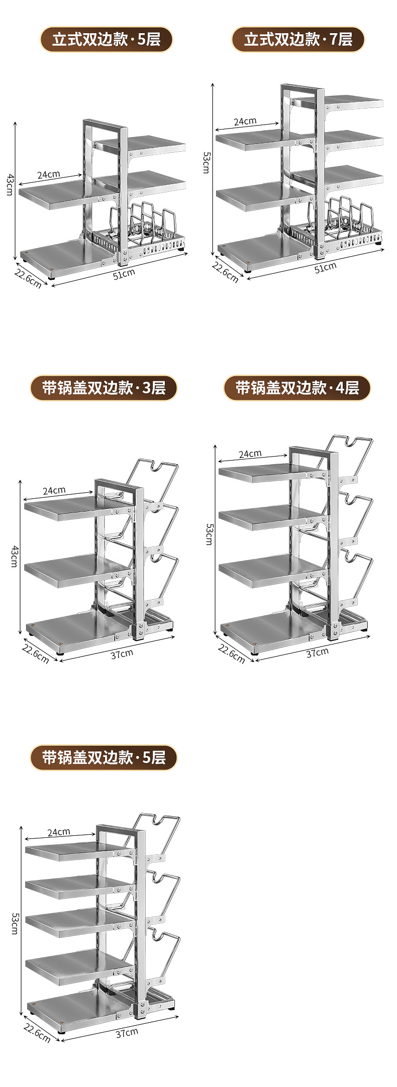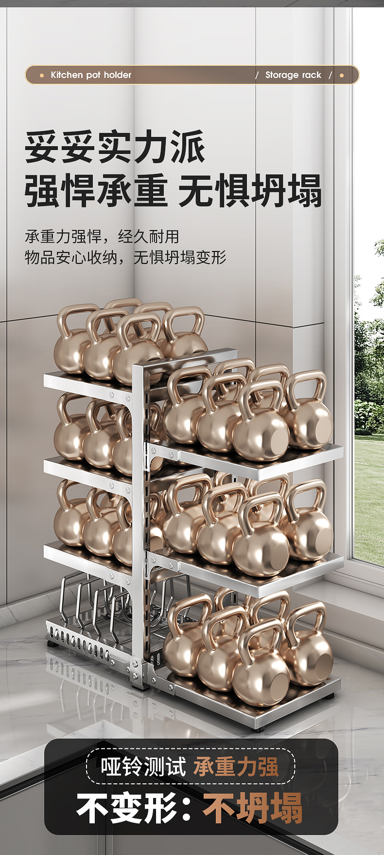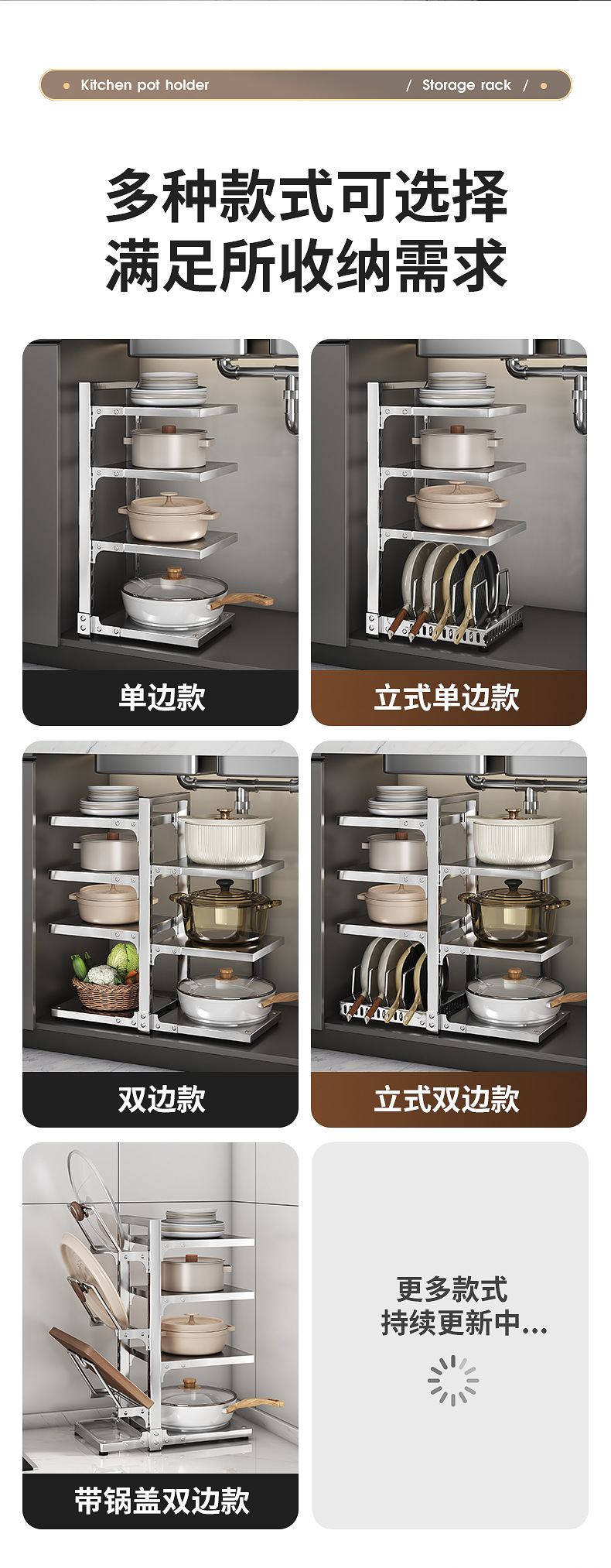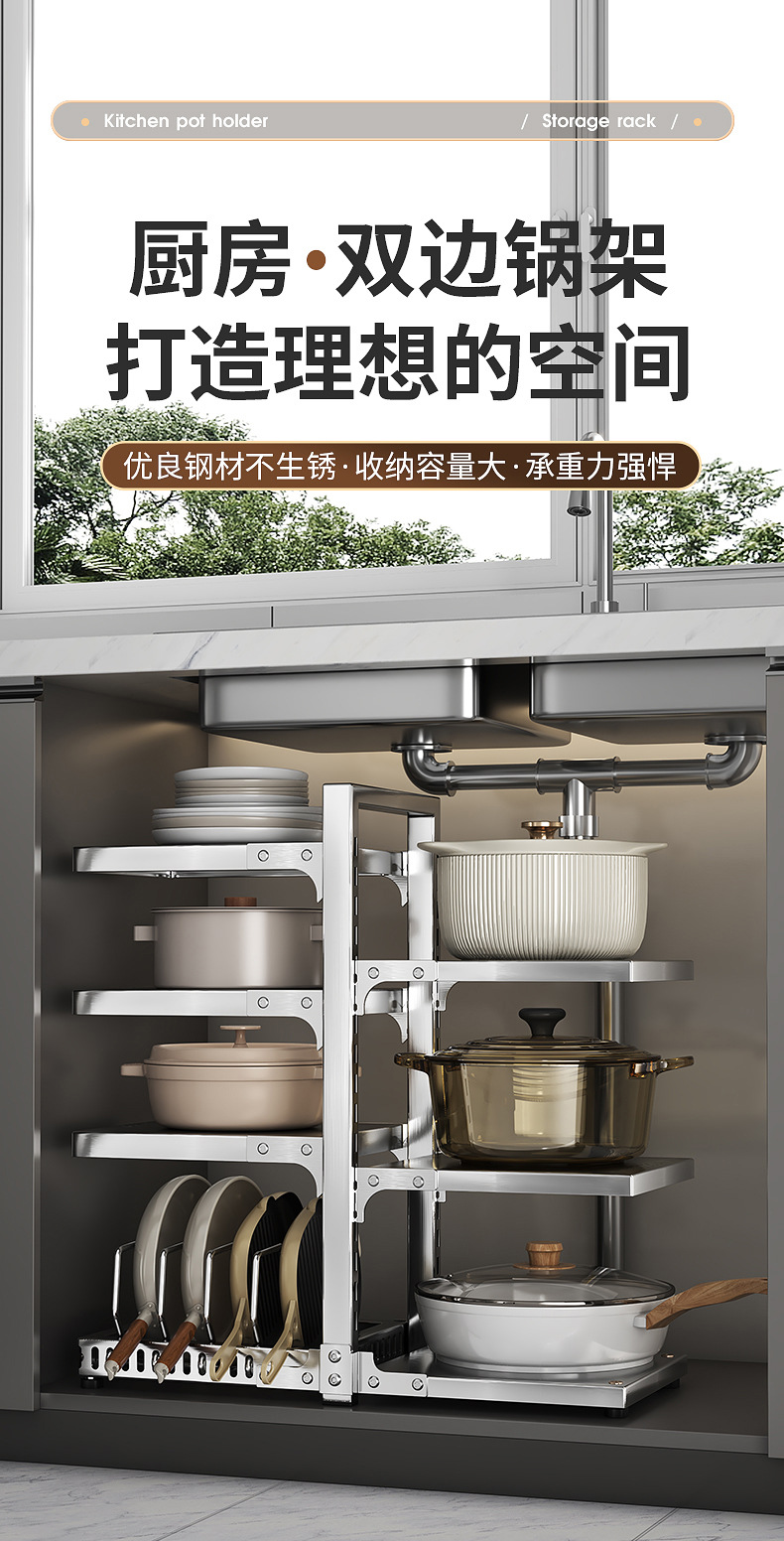304 스테인레스 스틸 냄비 랙 캐비닛 싱크 다층 냄비 저장 주방 조리대 선반 조정 가능한 도매