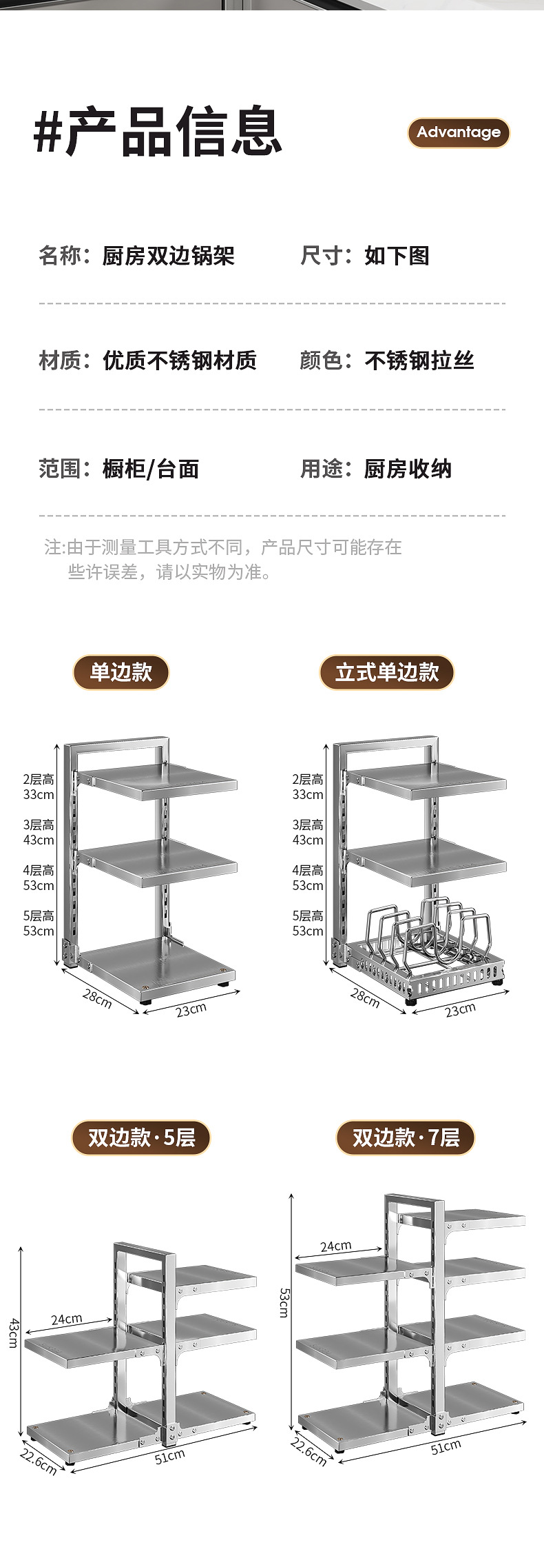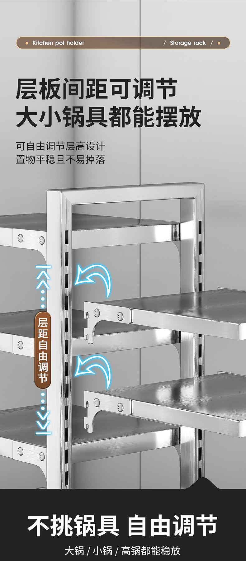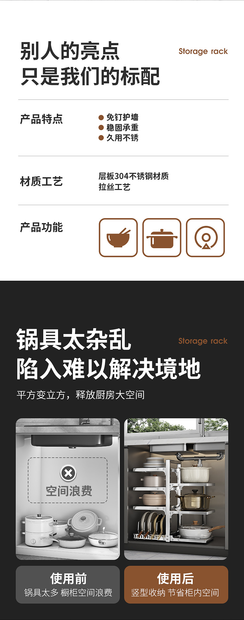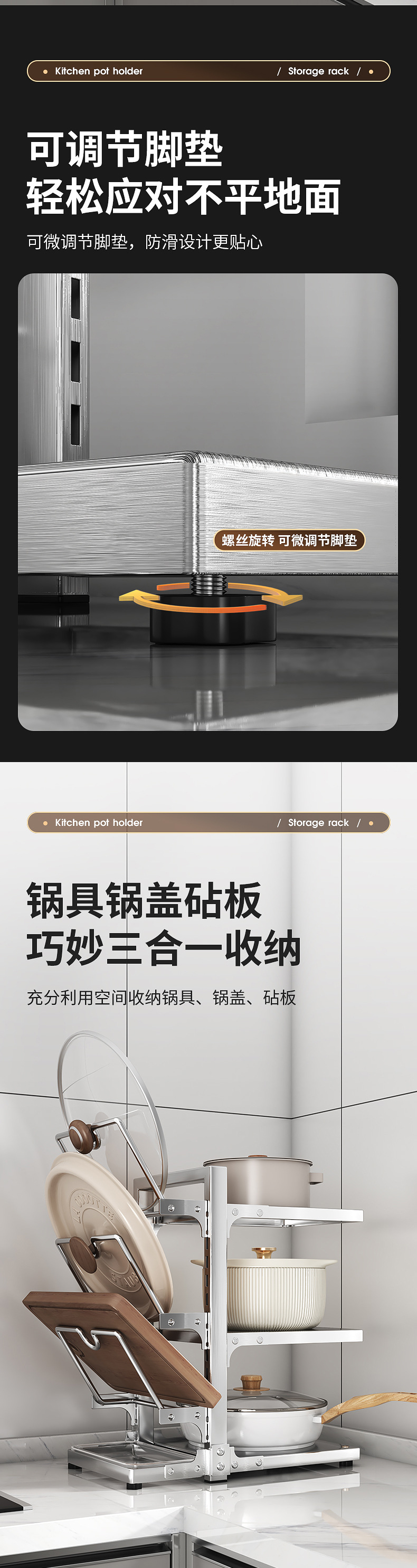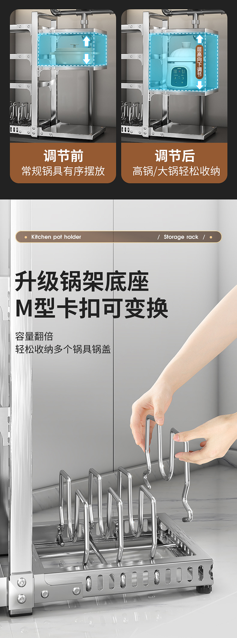 304 스테인레스 스틸 냄비 랙 캐비닛 싱크 다층 냄비 저장 주방 조리대 선반 조정 가능한 도매