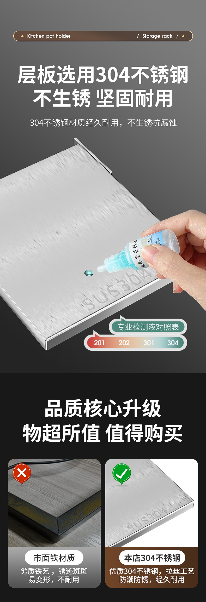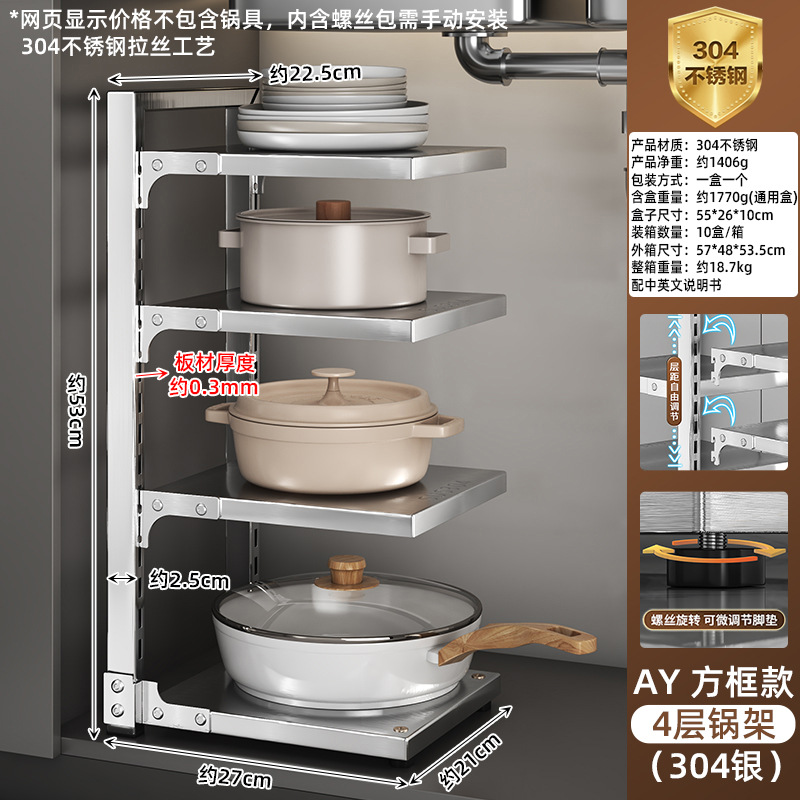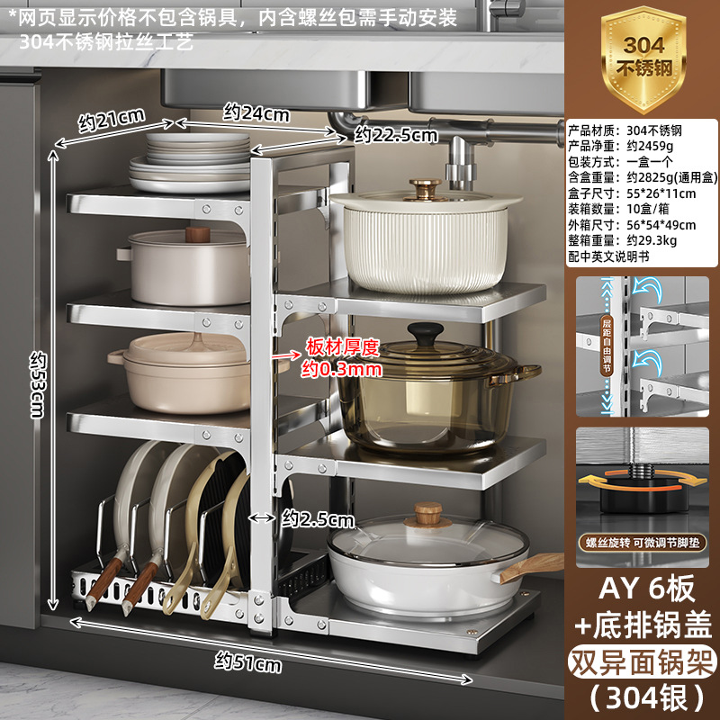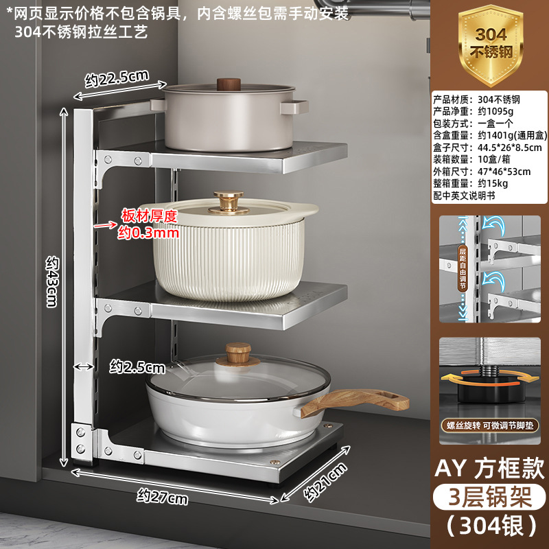 304 스테인레스 스틸 냄비 랙 캐비닛 싱크 다층 냄비 저장 주방 조리대 선반 조정 가능한 도매스토어 가기