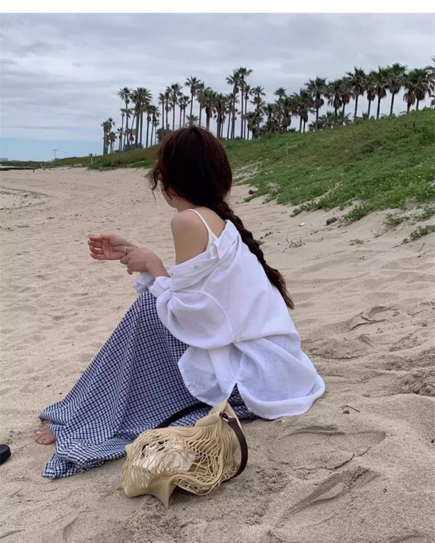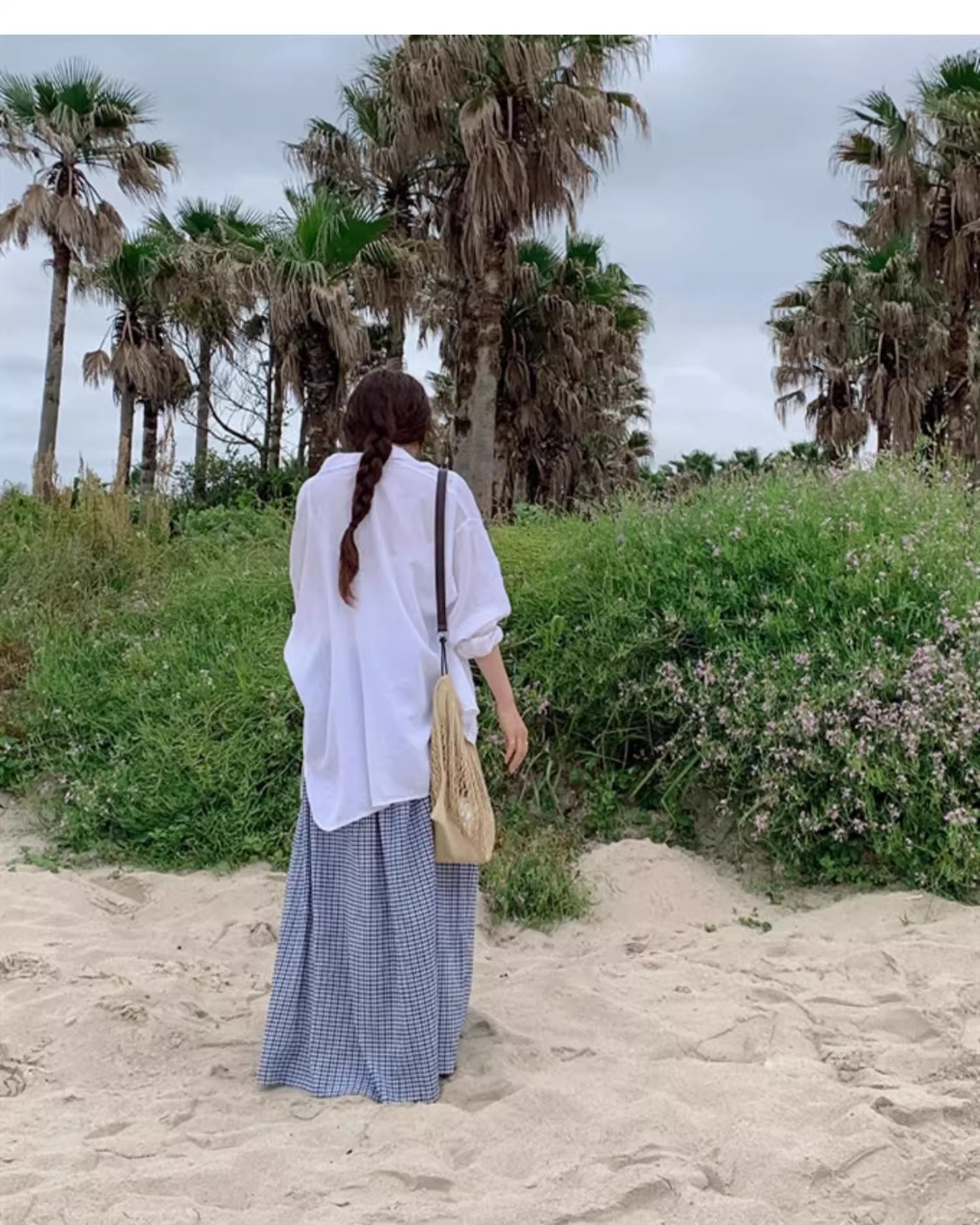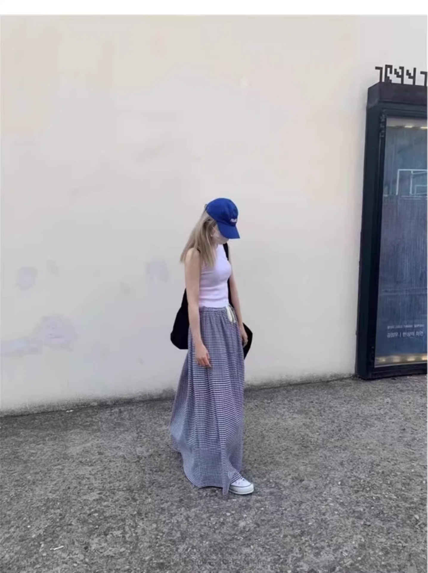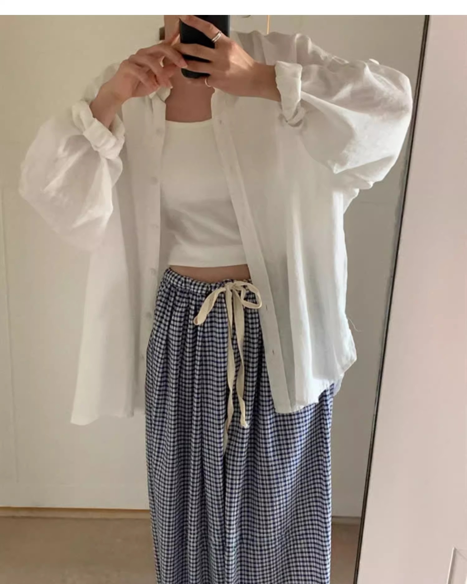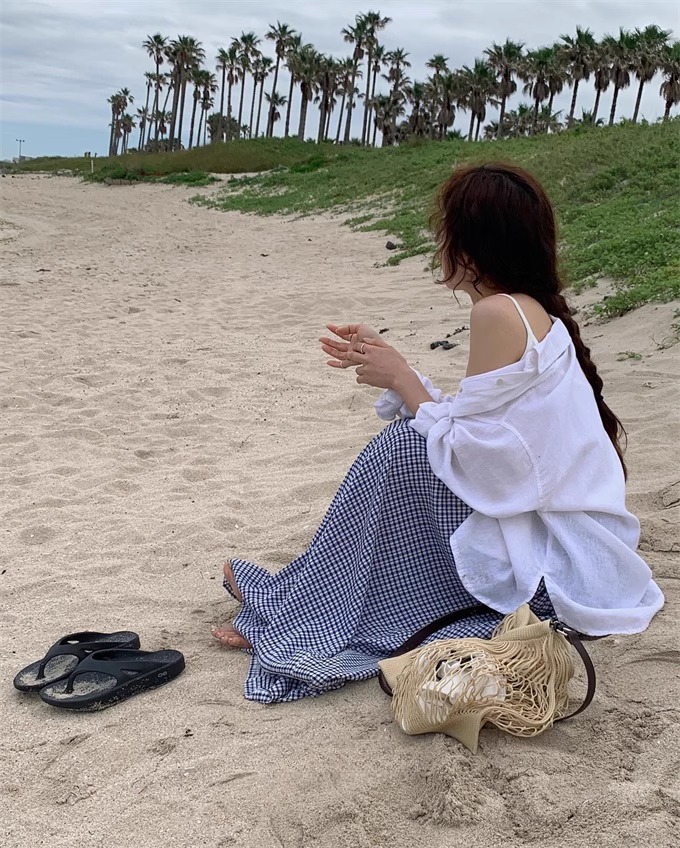 여름 여성용 체크 무늬 드로스트링 스커트 프렌치 니치 하이웨이스트 드레이프 루즈 슬리밍 바닥 길이 A라인 스커트 인 트렌드스토어 가기