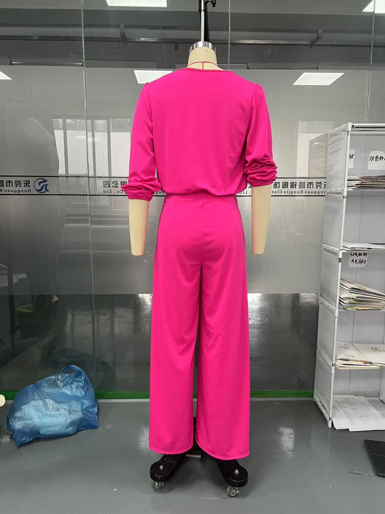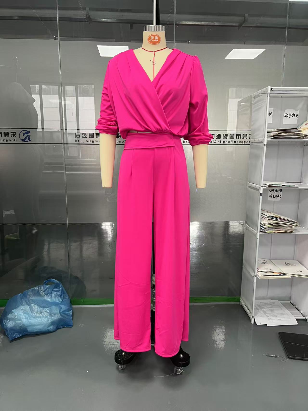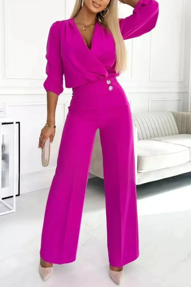 2025 유럽과 미국 스타일의 국경 간 Amazon 독립 스테이션 새로운 여성 솔리드 컬러 v 넥 2 버튼 2 피스 바지 정장