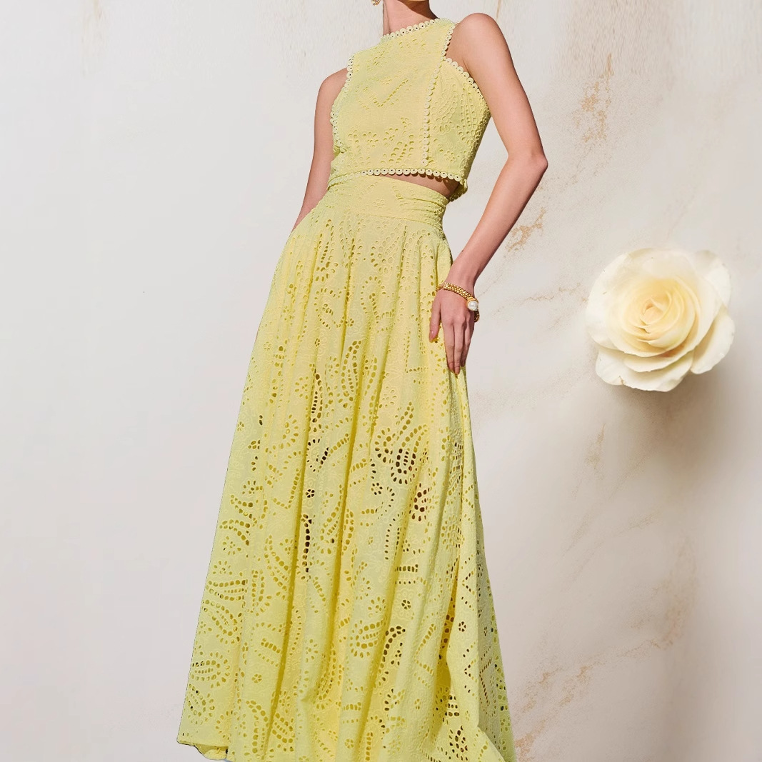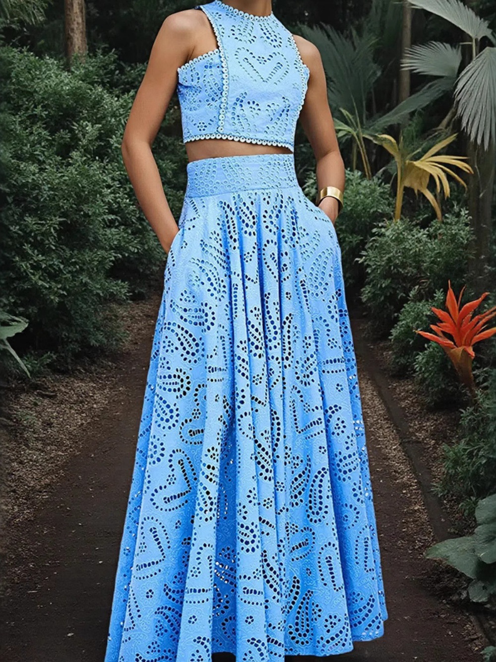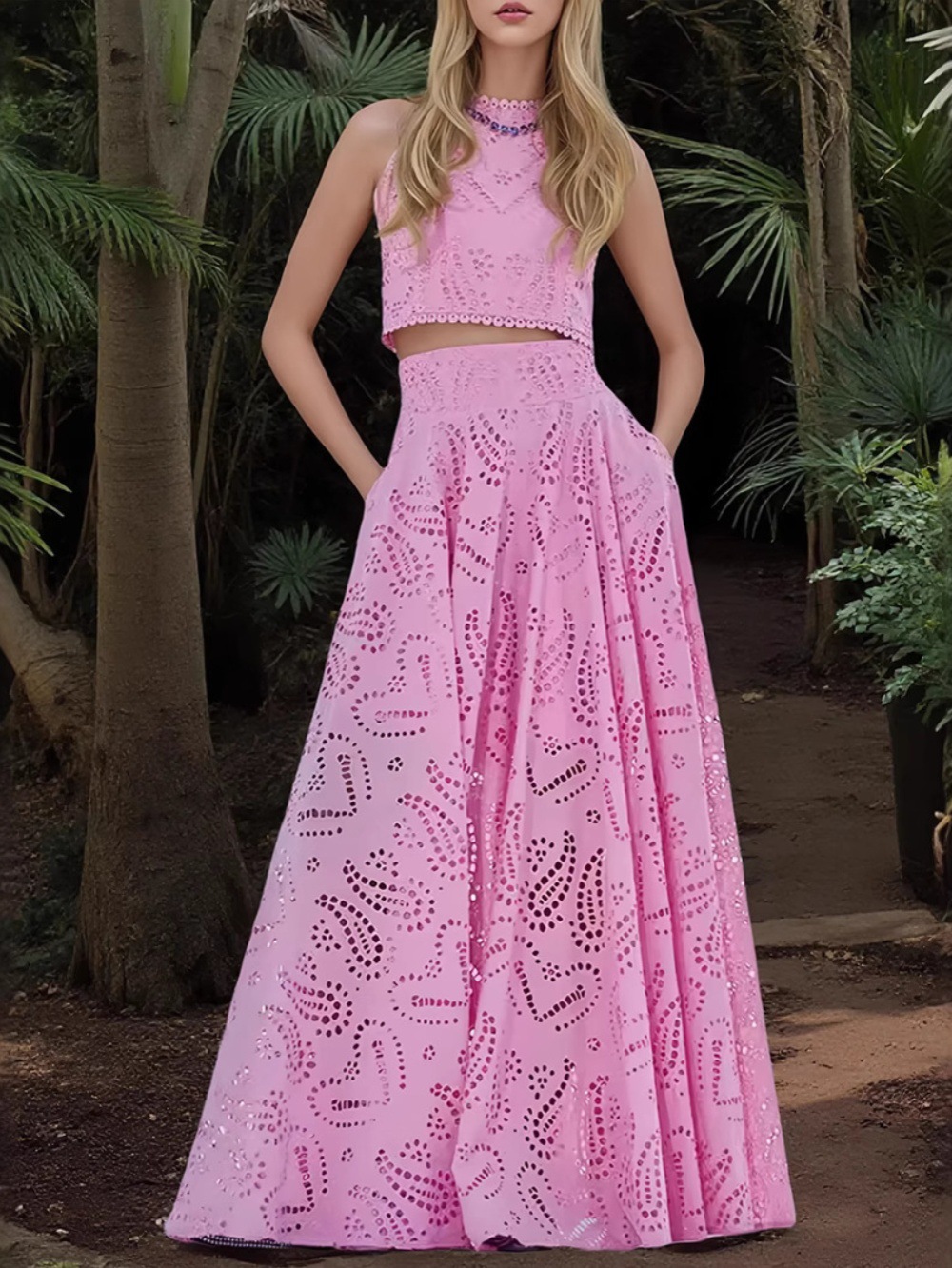 2025 크로스보더 유럽과 미국의 봄 여름 새로운 스타일 레이스 여성 민소매 롱 스커트 포켓 슈트 캐주얼 루즈 투피스 세트