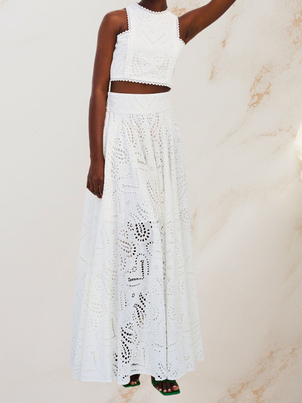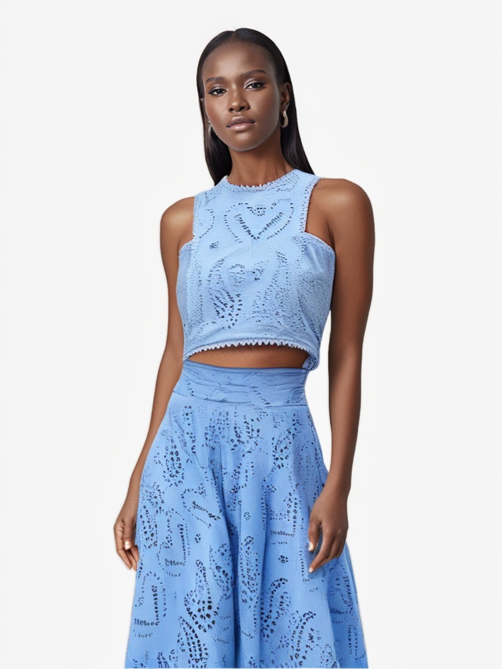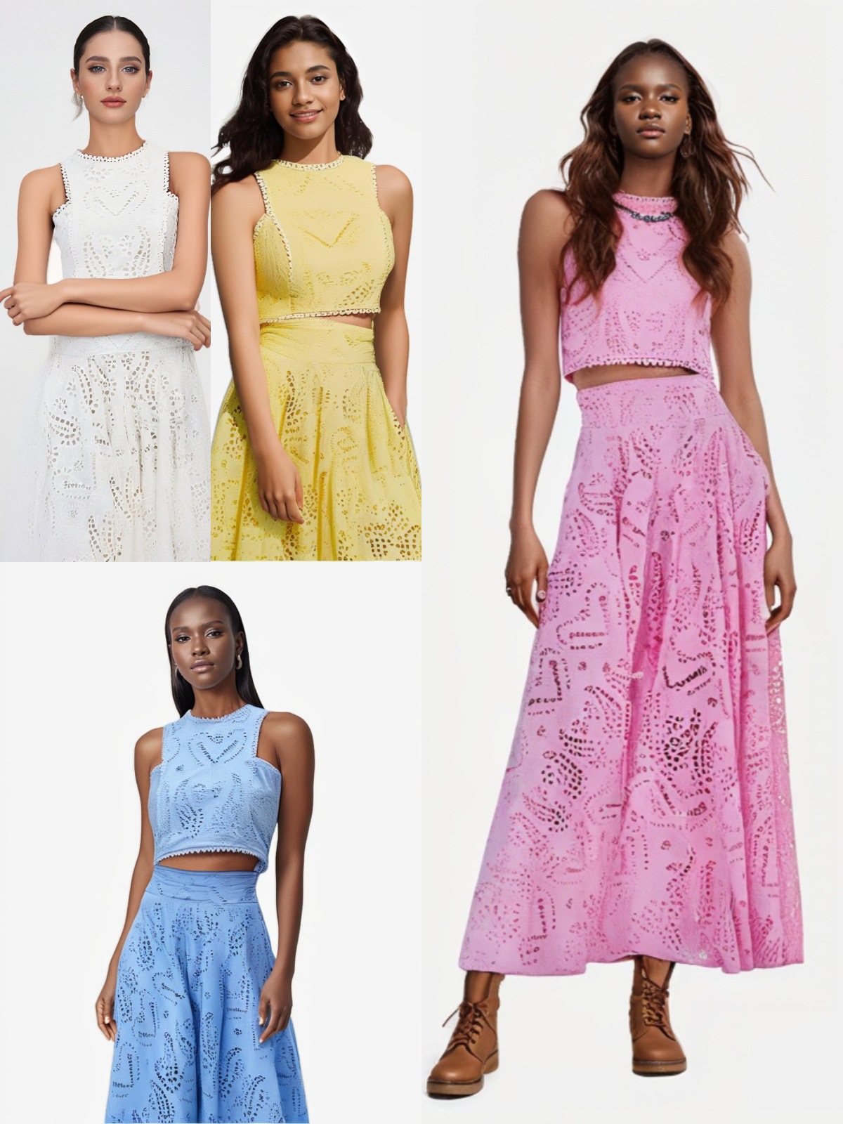 2025 크로스보더 유럽과 미국의 봄 여름 새로운 스타일 레이스 여성 민소매 롱 스커트 포켓 슈트 캐주얼 루즈 투피스 세트