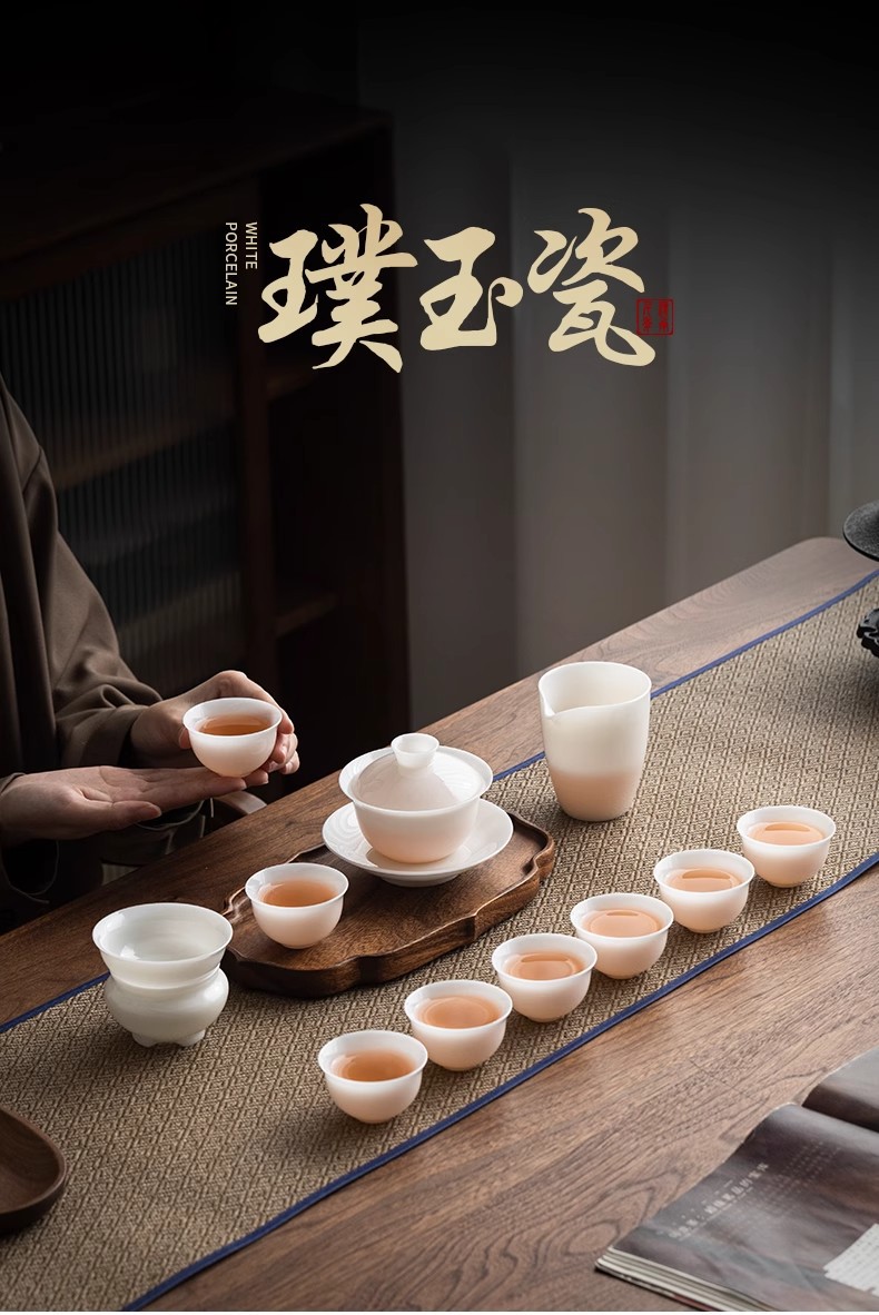 Dehua Puyu White Porcelain Tea Bowl 세라믹 양의 뚱뚱한 옥 Sancai Bowl 호버 따뜻하고 슈퍼 투과성 차 세트 비즈니스 기념품스토어 가기