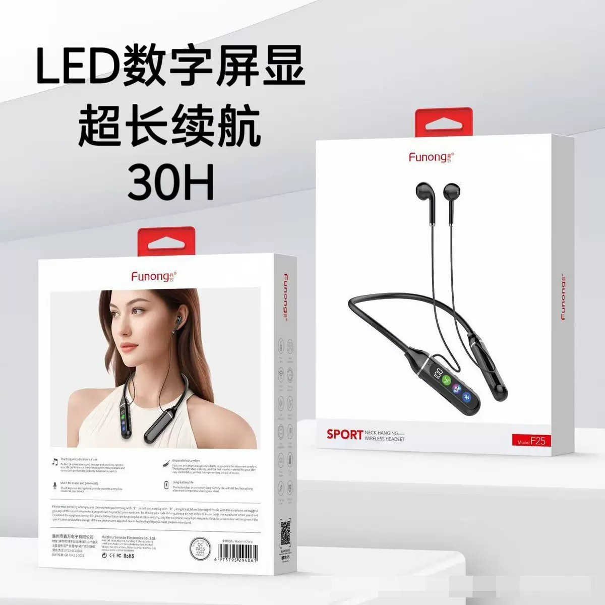 2025년 신형 고급 블루투스 헤드셋은 카드를 삽입하여 라이브 방송 노래방을 재생할 수 있으며 긴 배터리 수명의 목걸이형 무선 스포츠 헤드셋입니다.