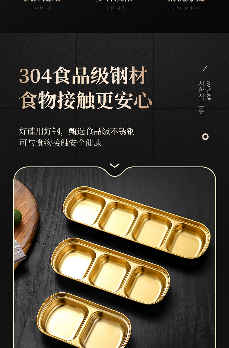 304 스테인리스 소스 접시, 양념 접시, 김치 접시, 2칸/3칸 접시, 식초 접시, 다중 칸 구성스토어 가기