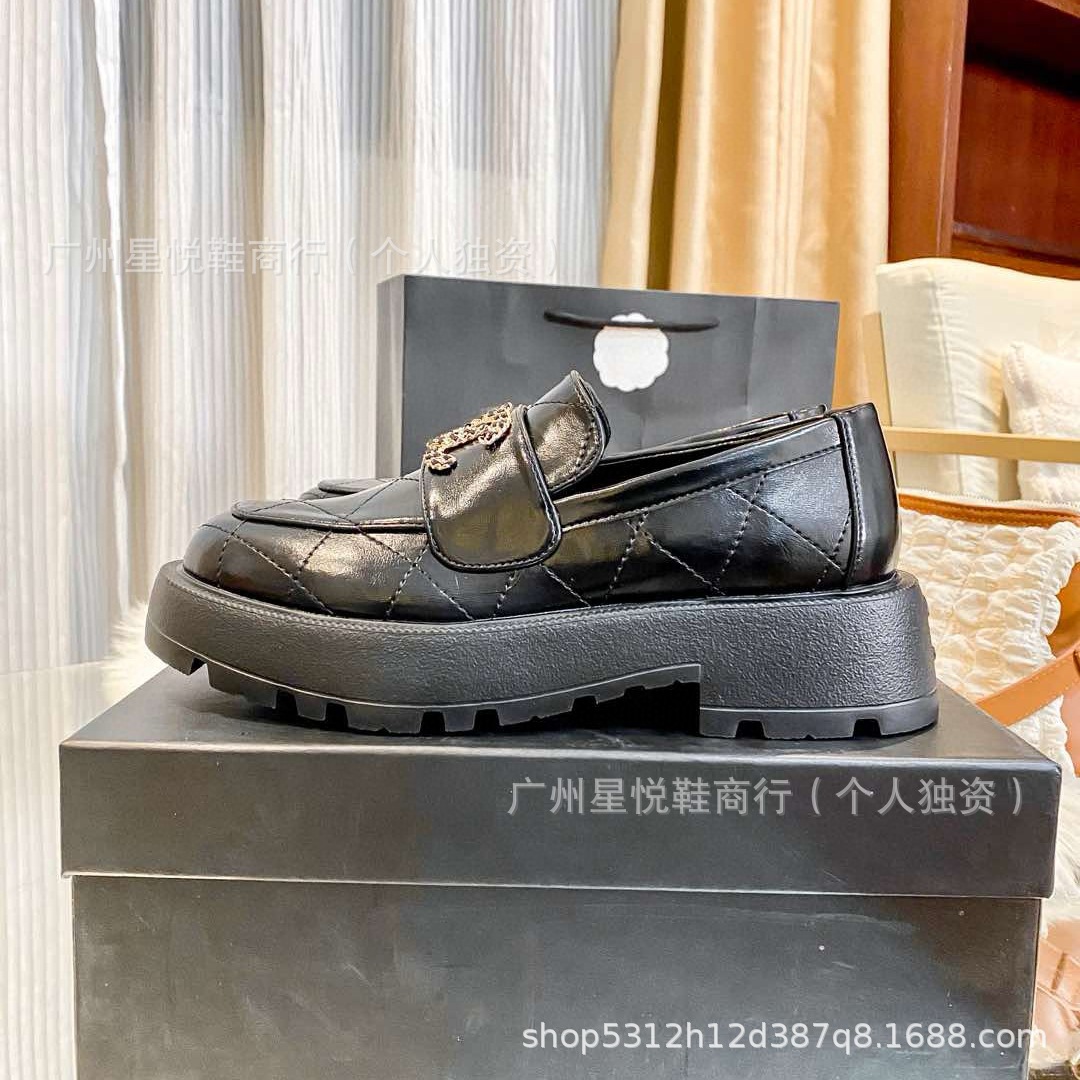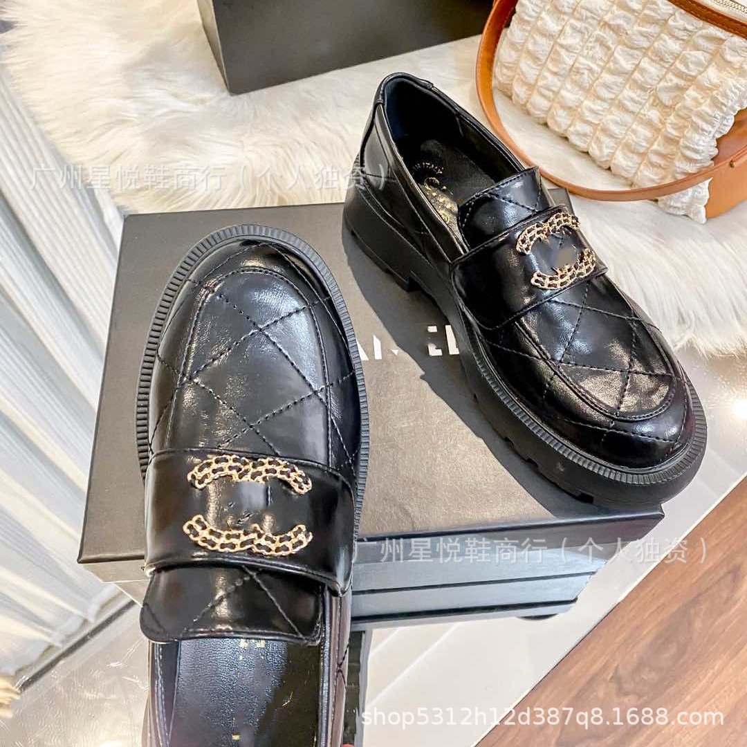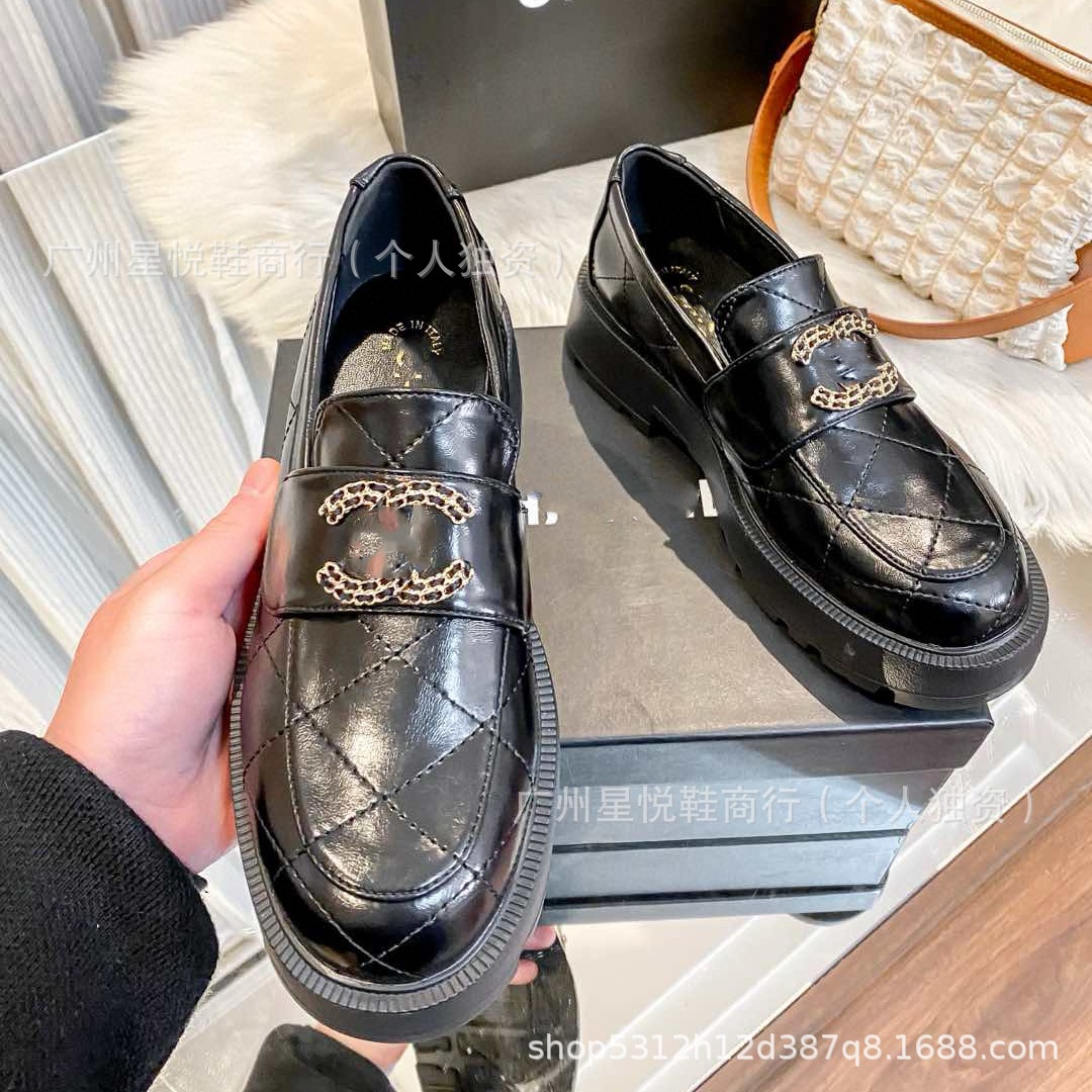 여성을위한 Lingge 골드 버클 복고풍 로퍼 25 가을 새로운 스타일 대학 영국 스타일 슬립 온 작은 가죽 신발스토어 가기
