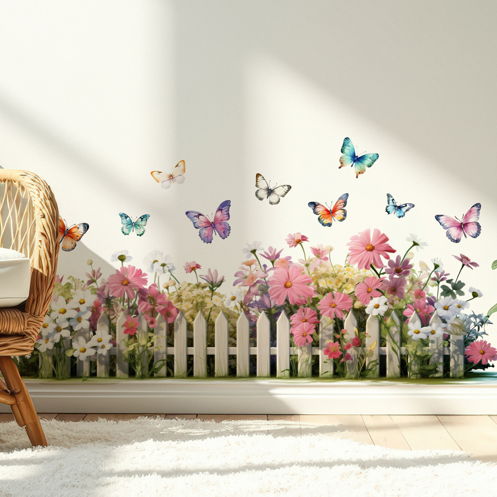 Yiyao DD3673 로맨틱 나비 식물 꽃 울타리 벽 스티커 거실 벽 코너 베이스 보드 장식 스티커스토어 가기