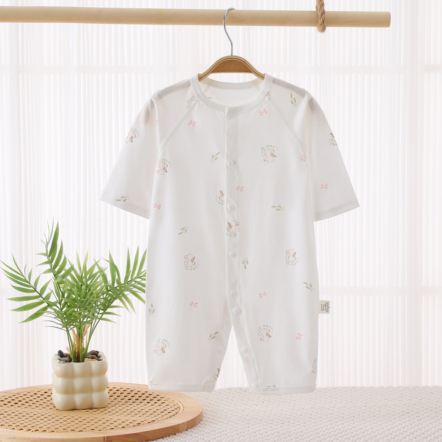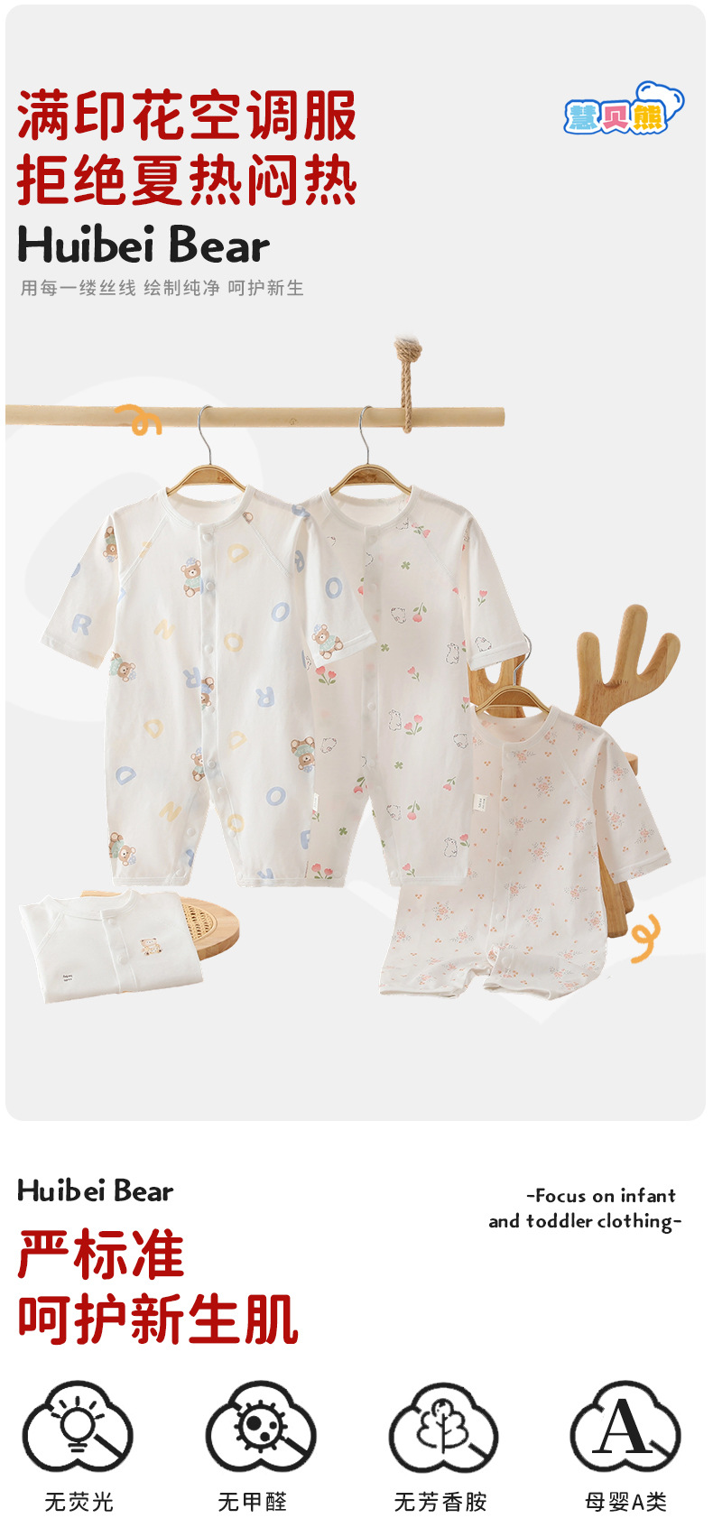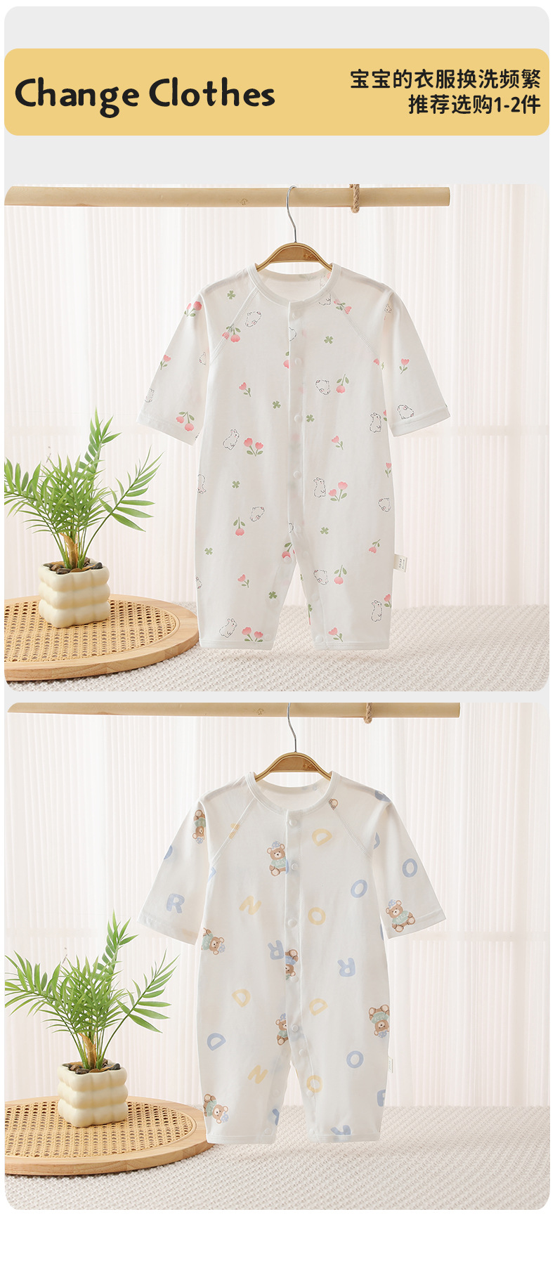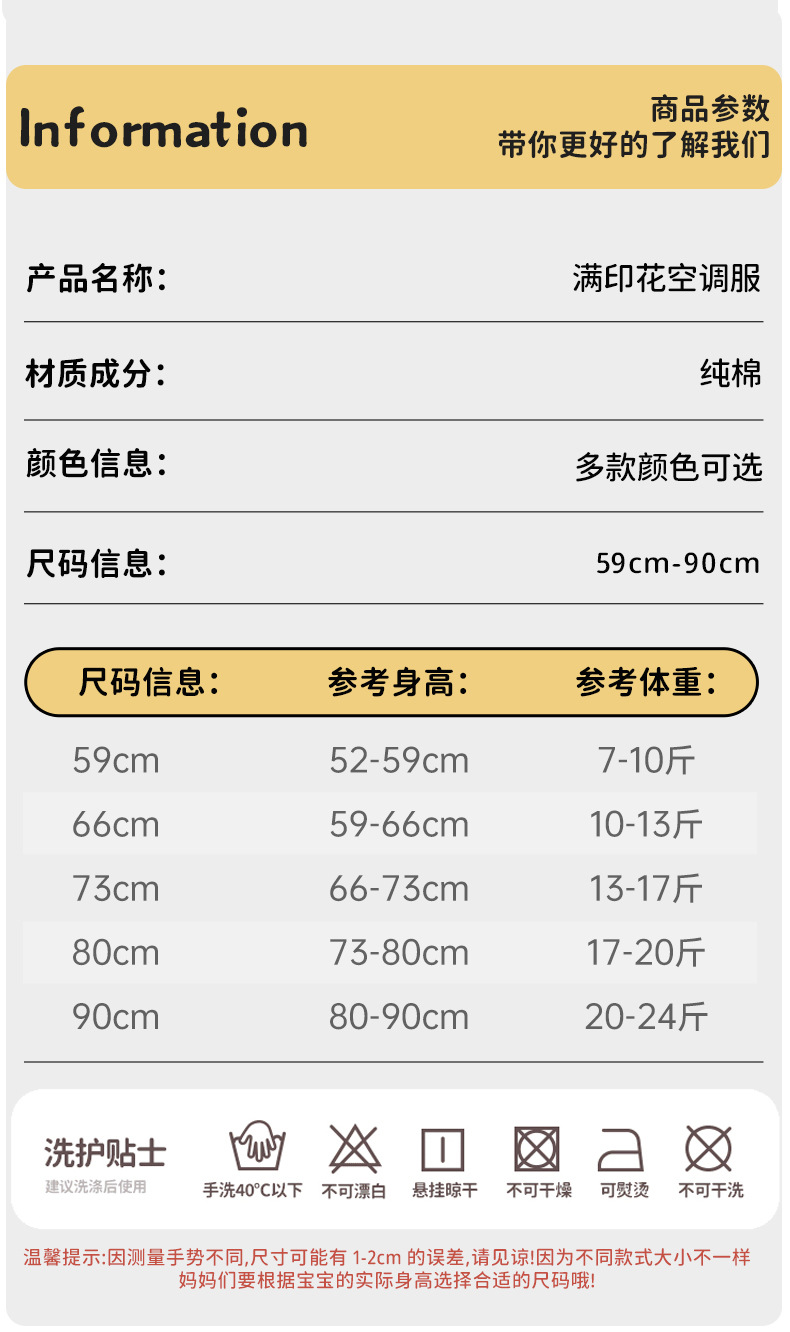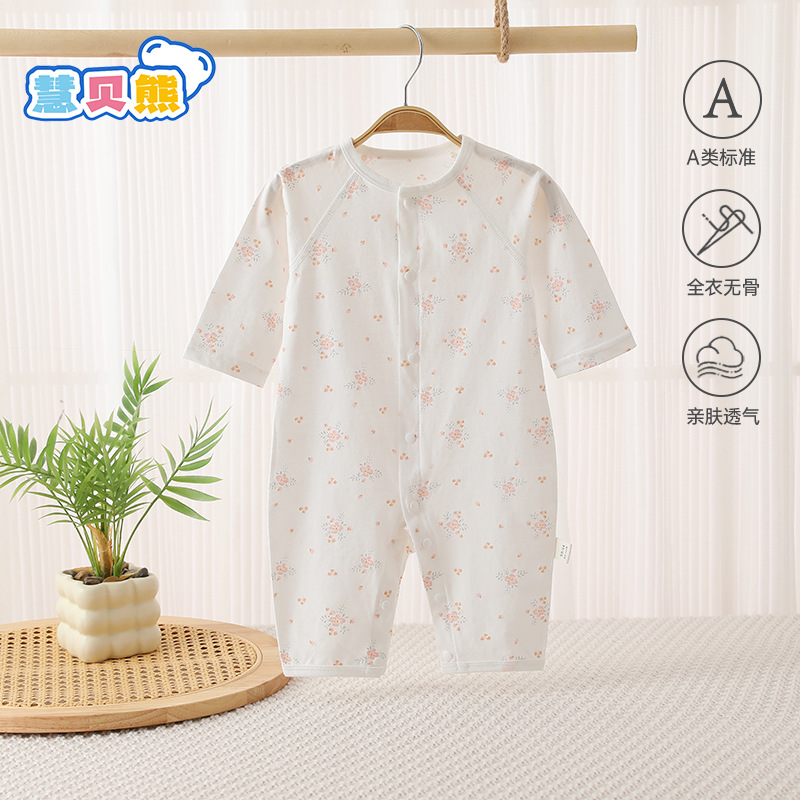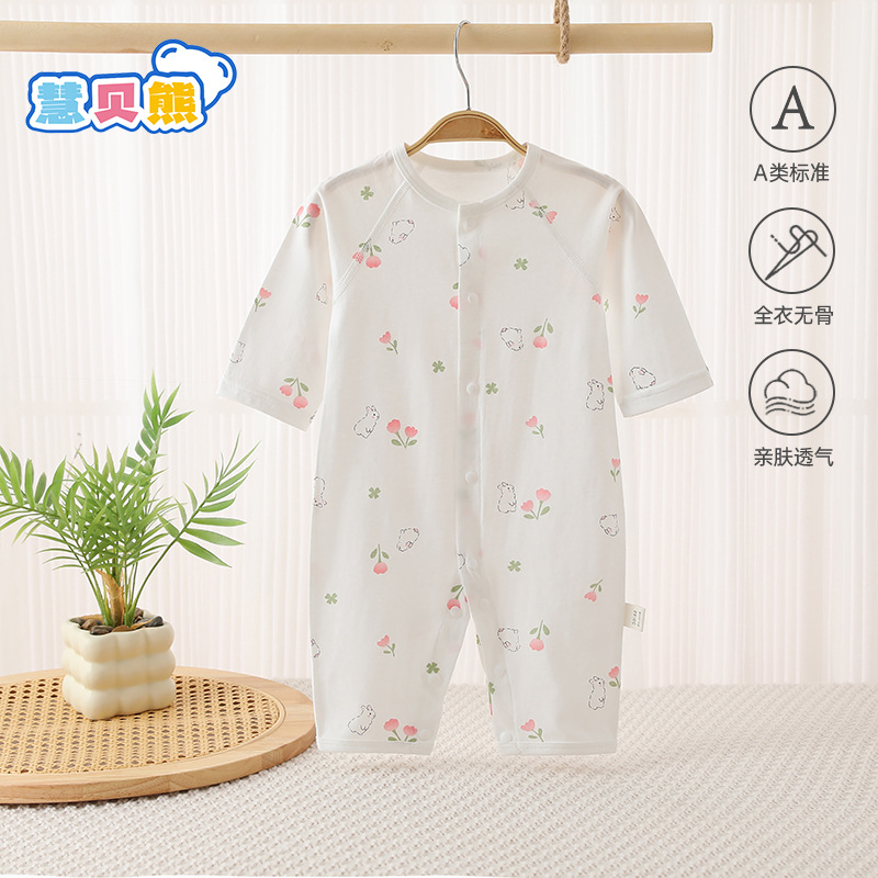 여름 얇은 순면 뼈없는 점프 수트 아기 긴 소매 에어컨 의류 만화 뼈없는 통기성스토어 가기