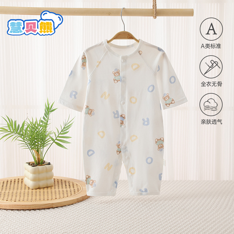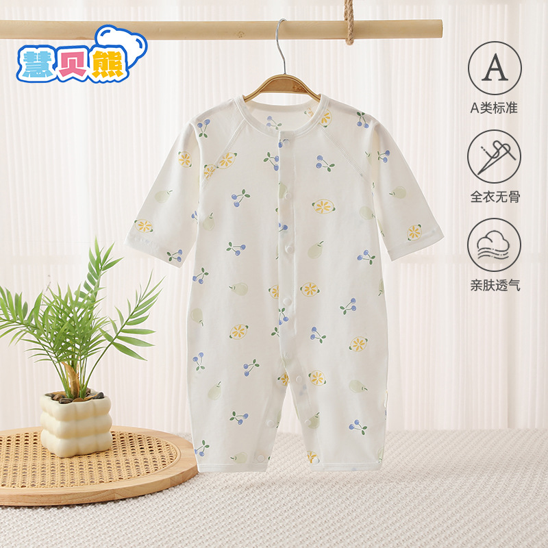 여름 얇은 순면 뼈없는 점프 수트 아기 긴 소매 에어컨 의류 만화 뼈없는 통기성