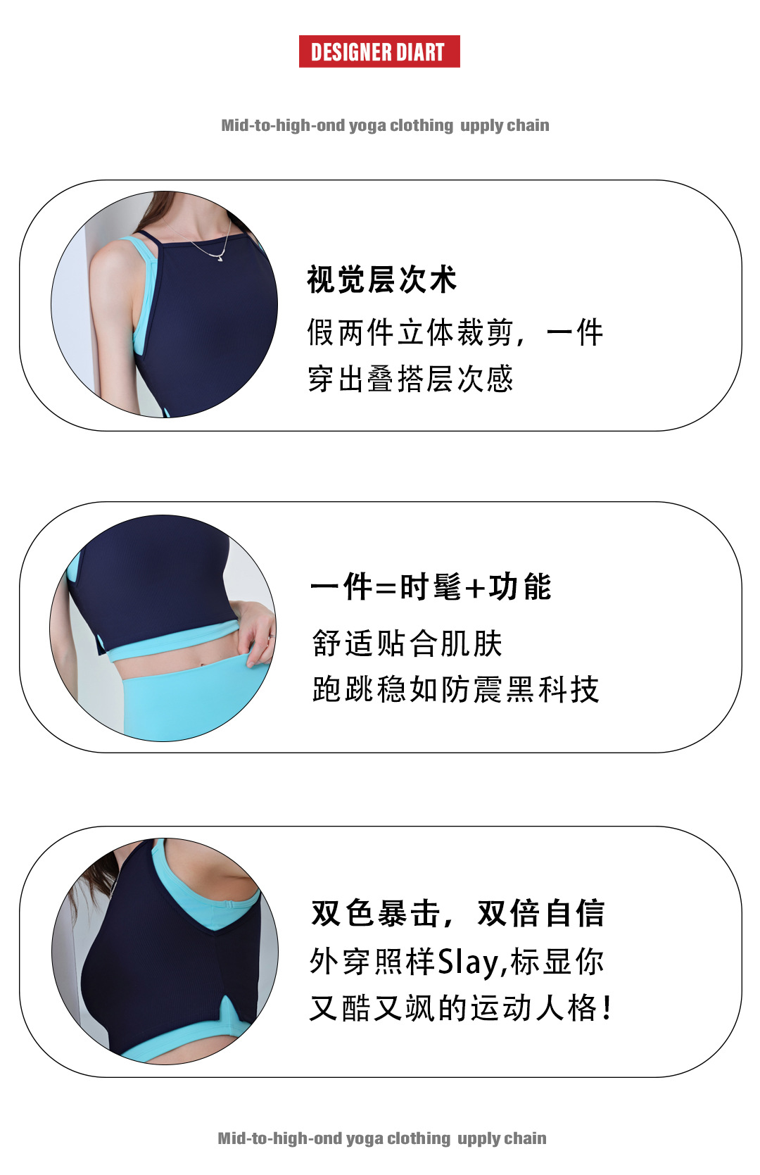 새로운 고강도 가짜 투피스 스포츠 속옷 여성 여름 명암 요가 의류 충격 방지 러닝 브라 빠른 건조 조끼