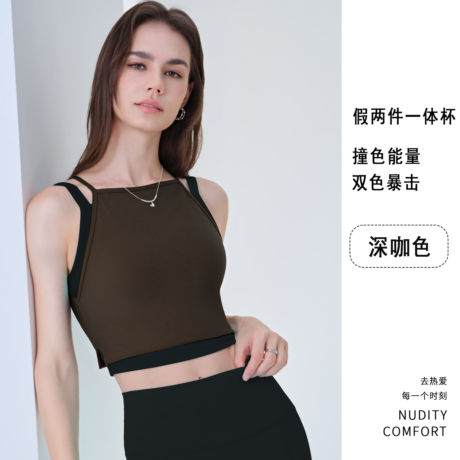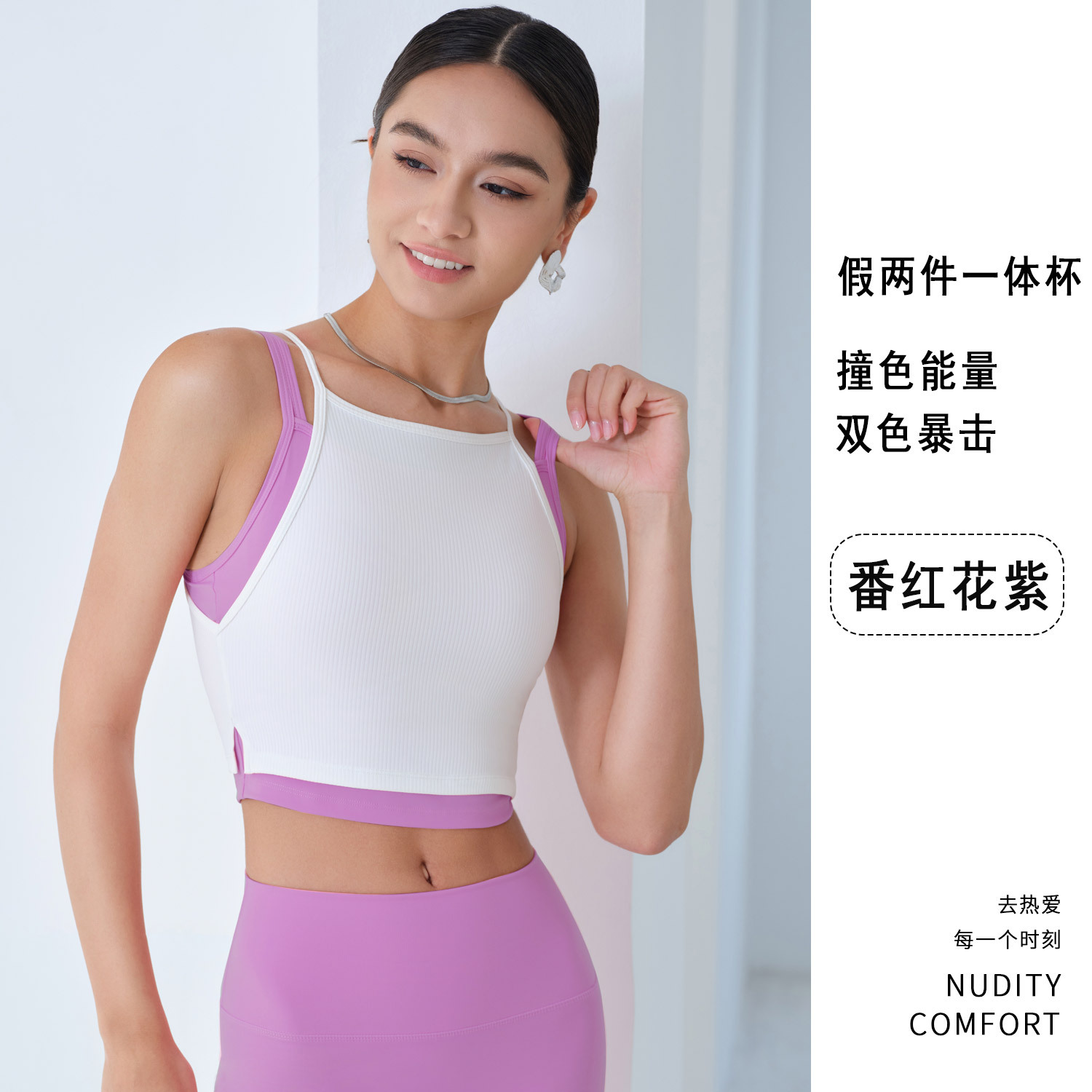 새로운 고강도 가짜 투피스 스포츠 속옷 여성 여름 명암 요가 의류 충격 방지 러닝 브라 빠른 건조 조끼스토어 가기