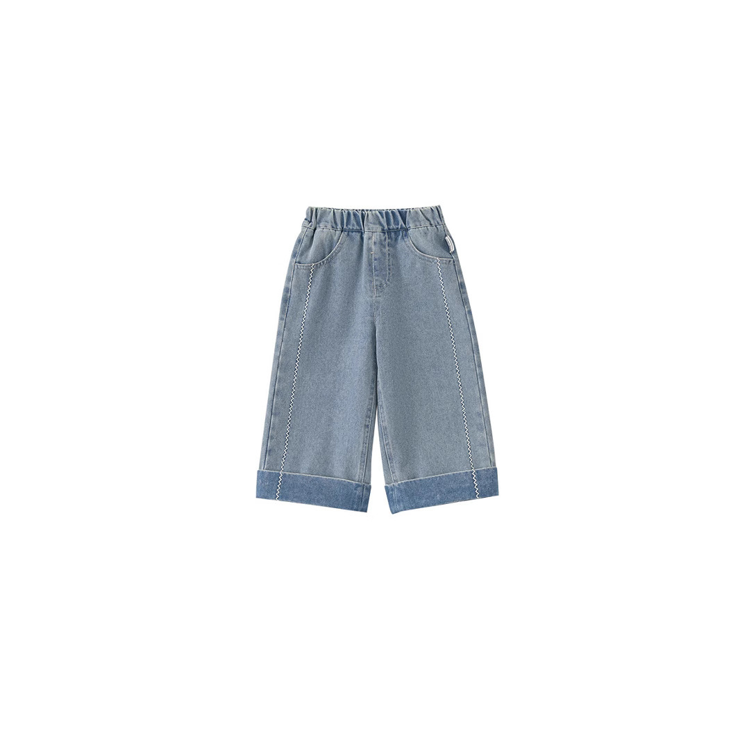 유바오 아동복 여중 청바지 2024 가을 새 어린이 한국식 컬링 올매치 바지 와이드 레그 팬츠