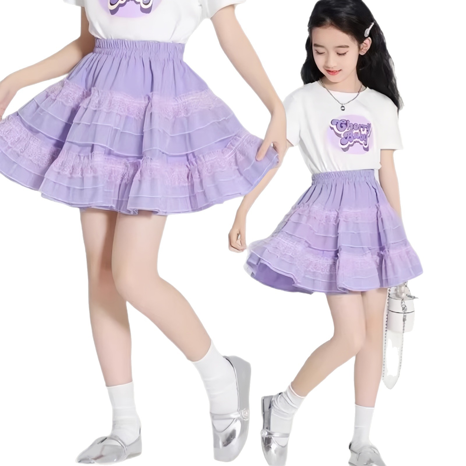 여자 스커트 여름 2025 새로운 어린이 퍼프 스커트 솔리드 컬러 여자 케이크 스커트 여름 공주 스커트