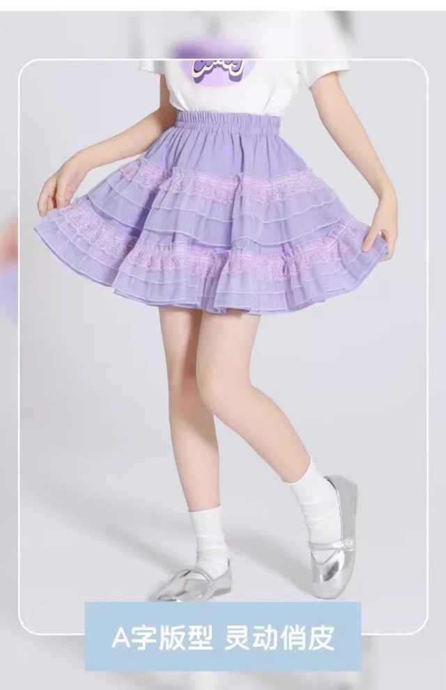 여자 스커트 여름 2025 새로운 어린이 퍼프 스커트 솔리드 컬러 여자 케이크 스커트 여름 공주 스커트스토어 가기