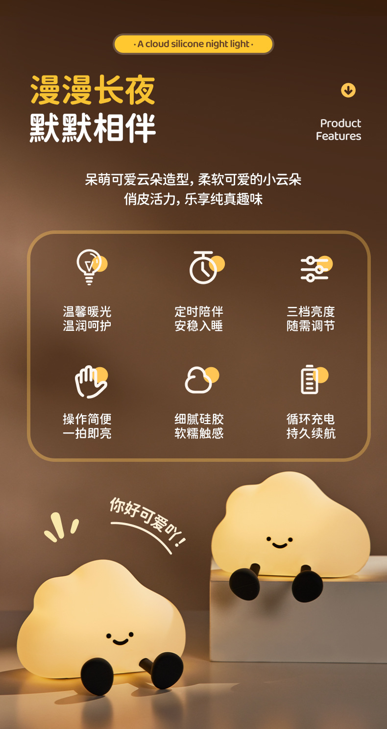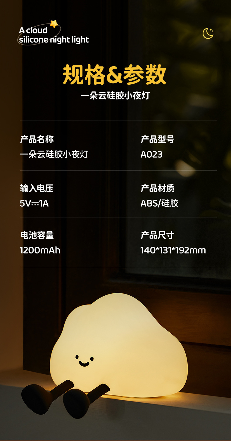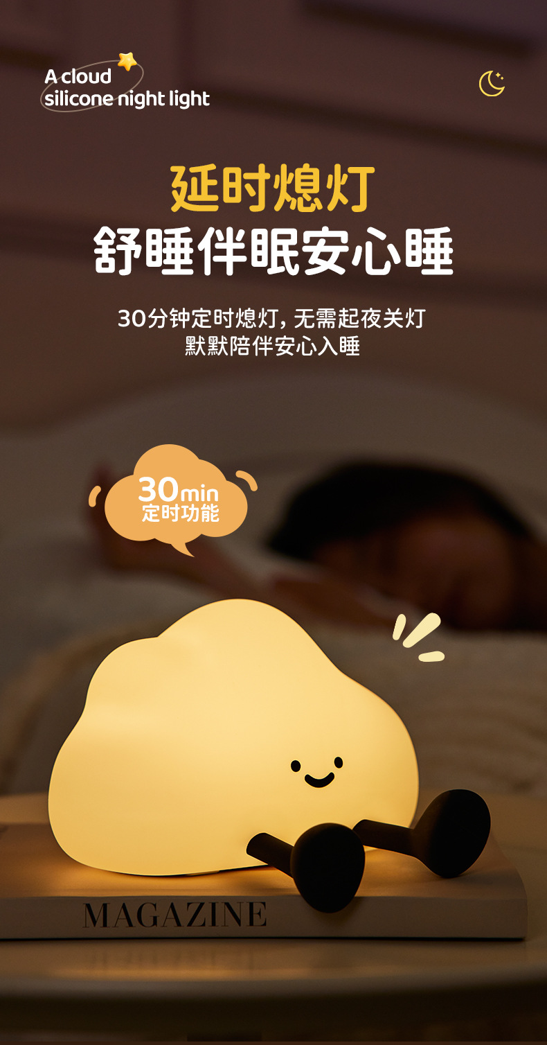 귀여운 구름 팻 라이트 실리콘 야간 조명 침실 머리맡 램프 센서 램프 감압 야간 조명 소녀 생일 선물