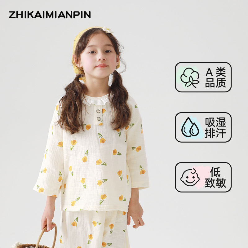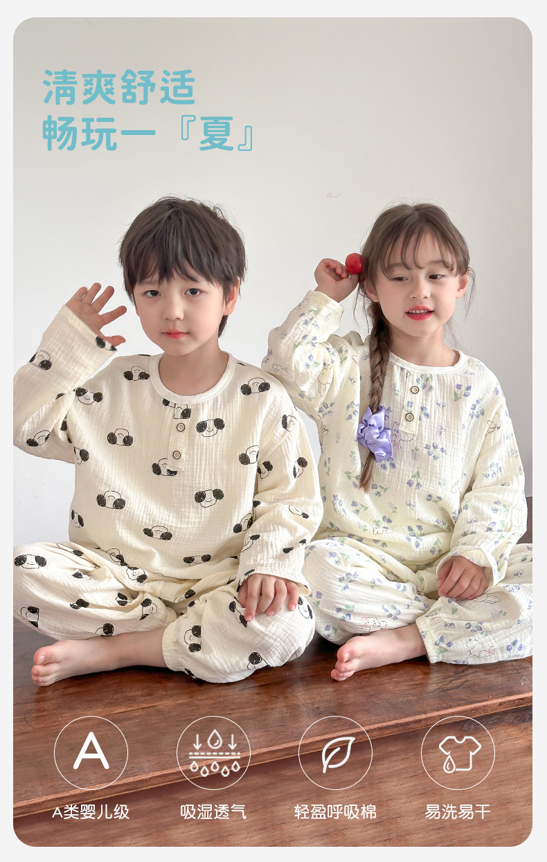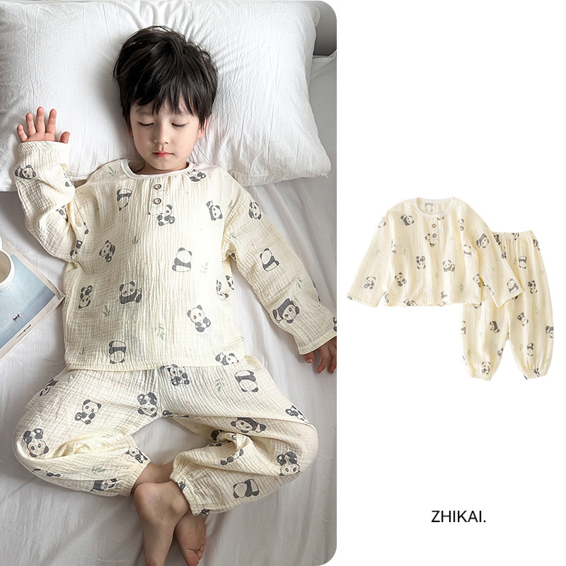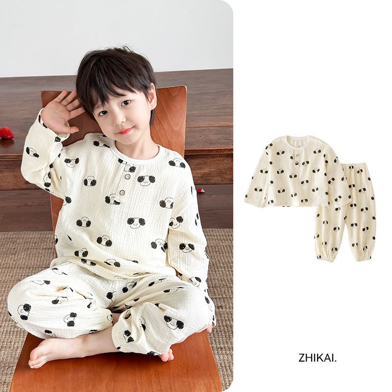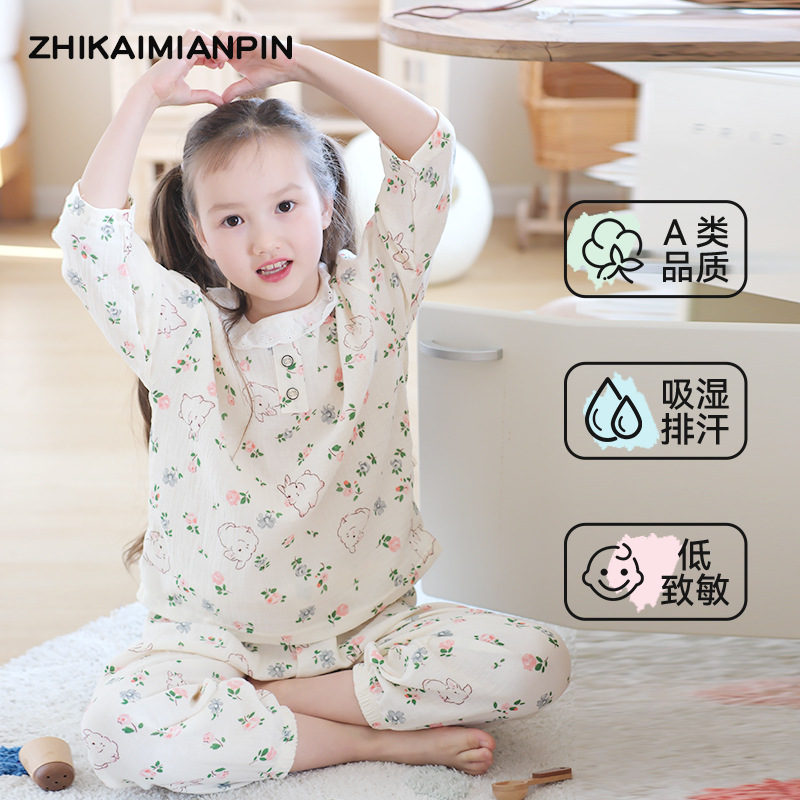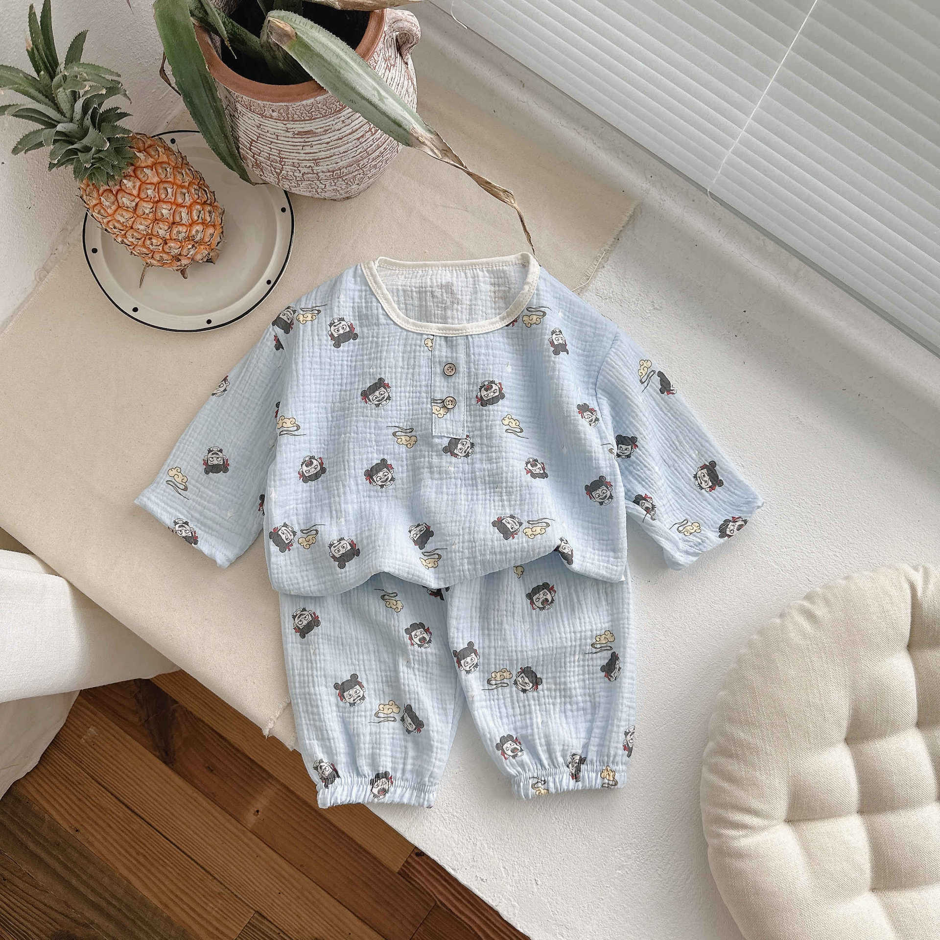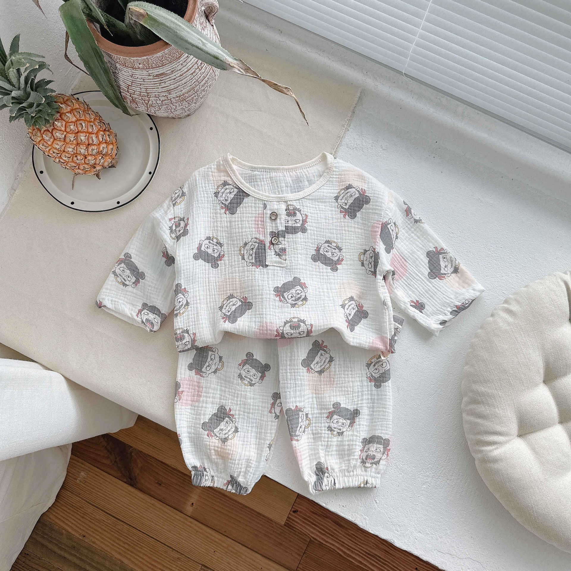 어린이 잠옷 여름 순수 코튼 홈 의류 세트 클래스 A 코튼 만화 Nezha 소년과 소녀 면화 실크 에어컨 의류스토어 가기