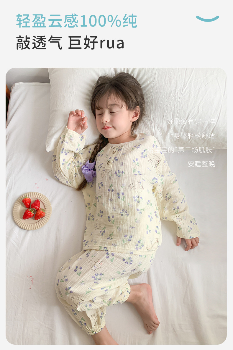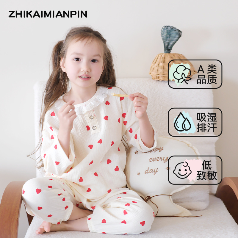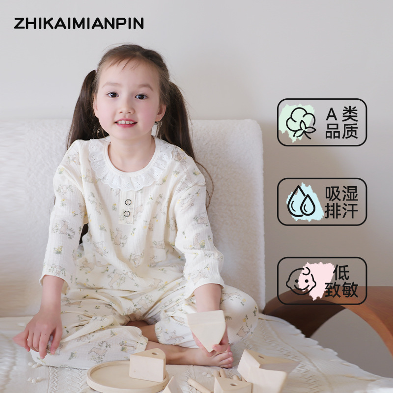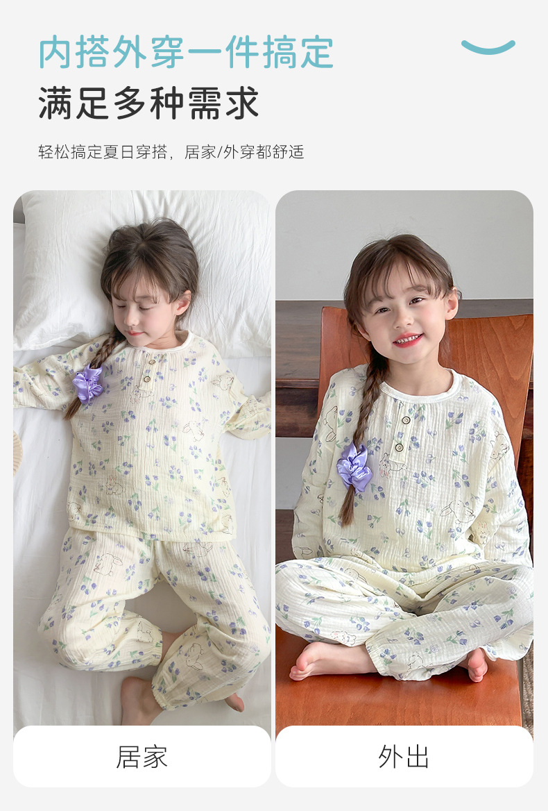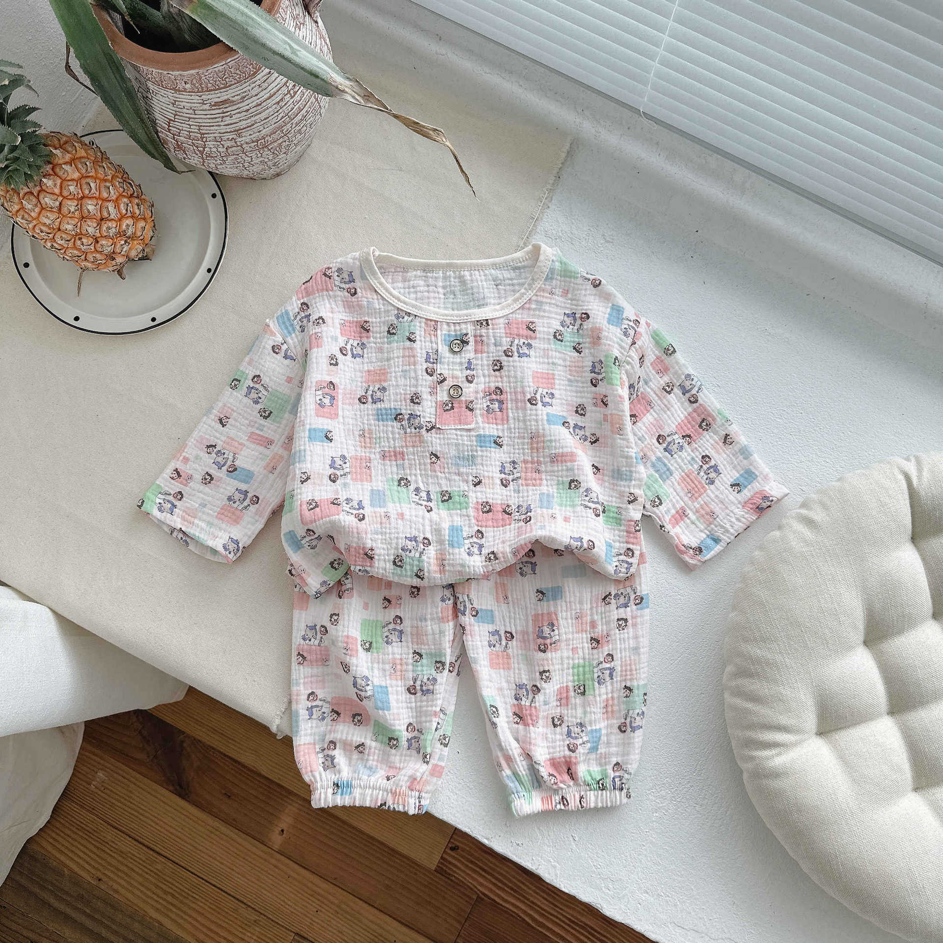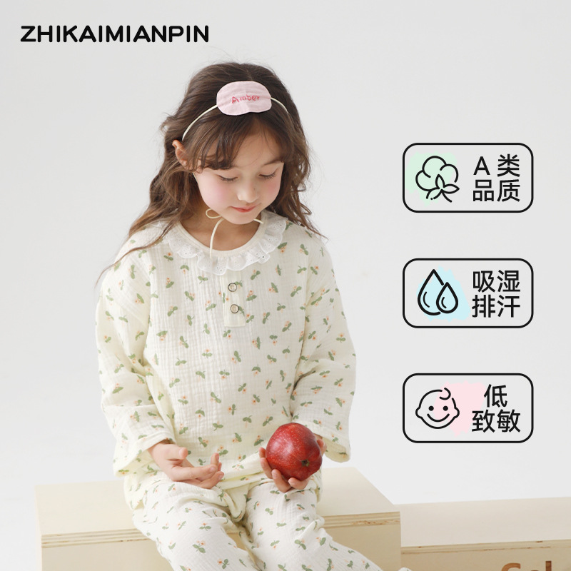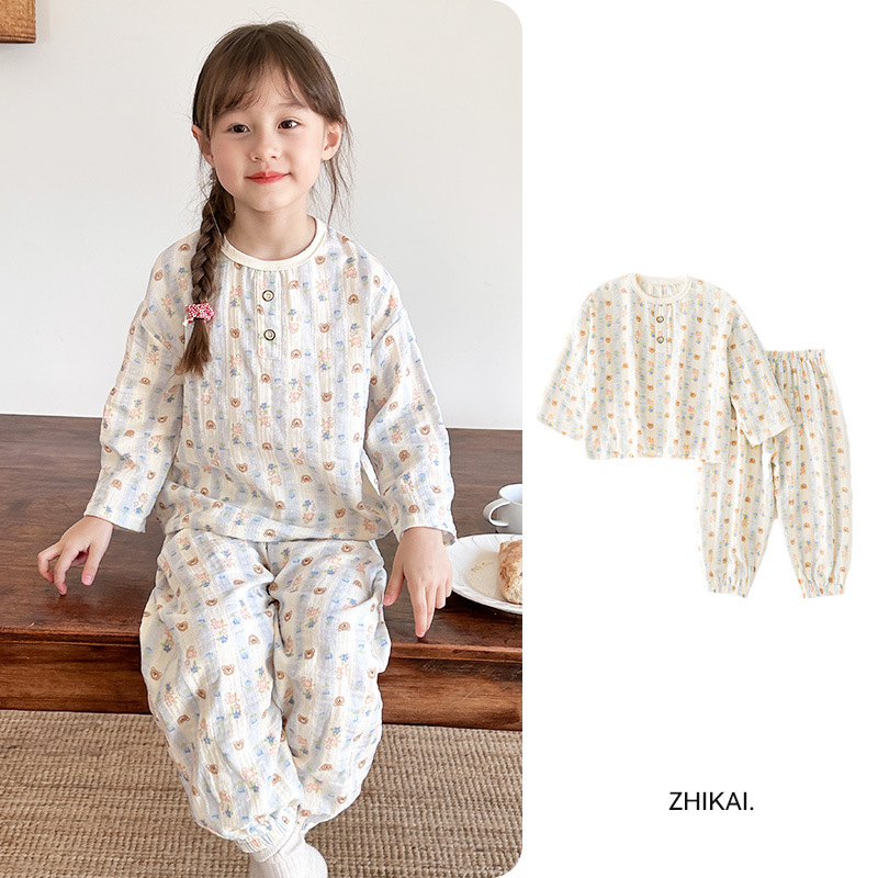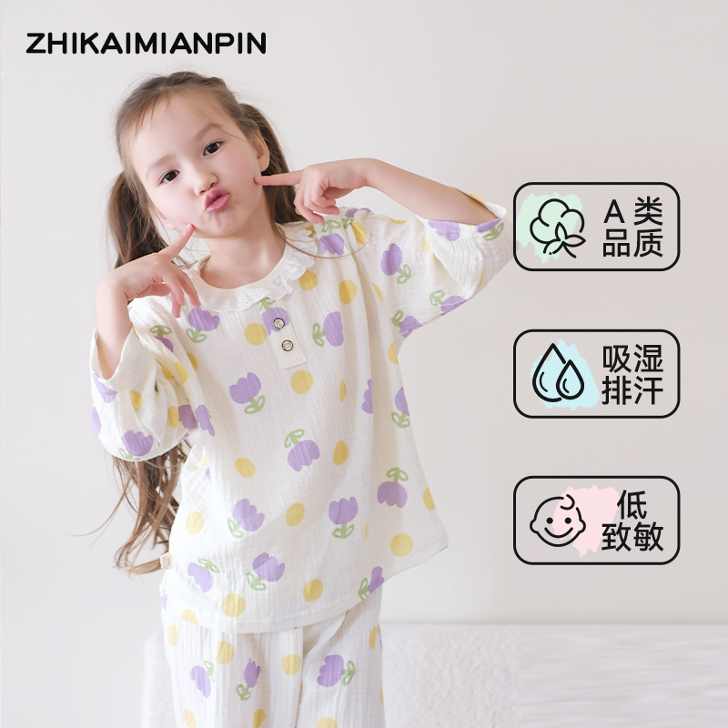 어린이 잠옷 여름 순수 코튼 홈 의류 세트 클래스 A 코튼 만화 Nezha 소년과 소녀 면화 실크 에어컨 의류스토어 가기