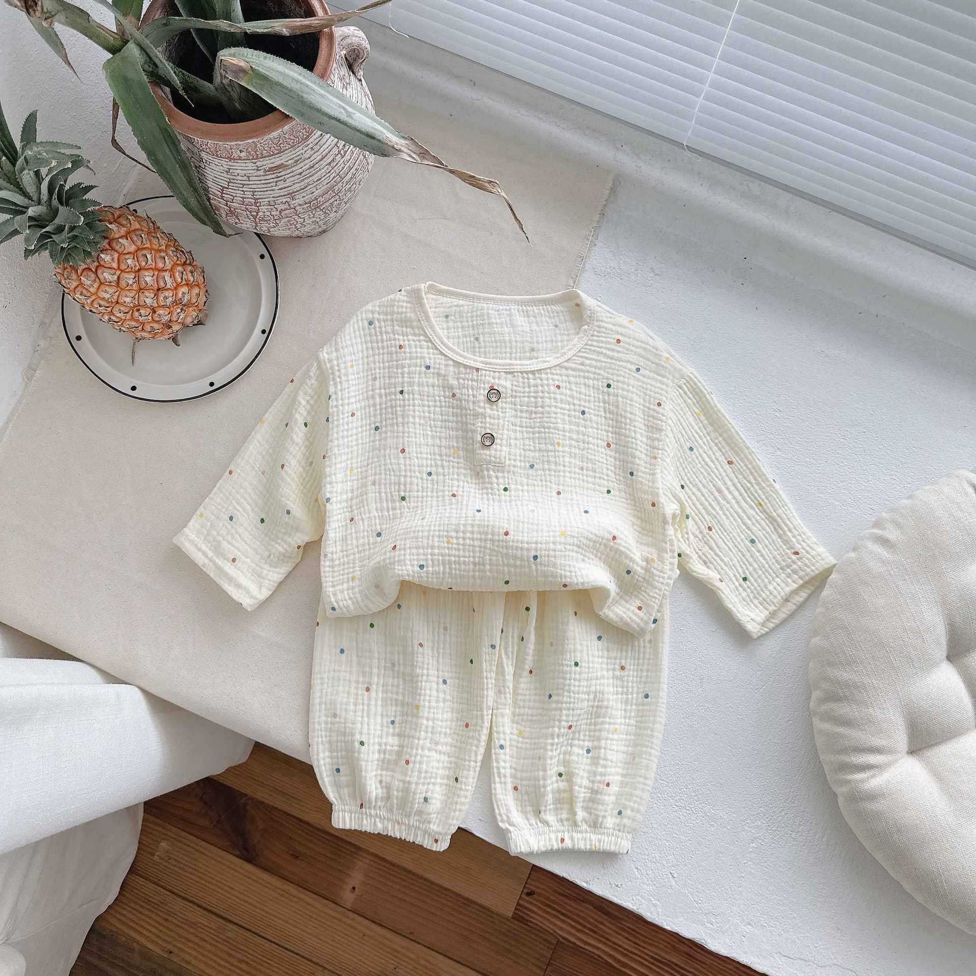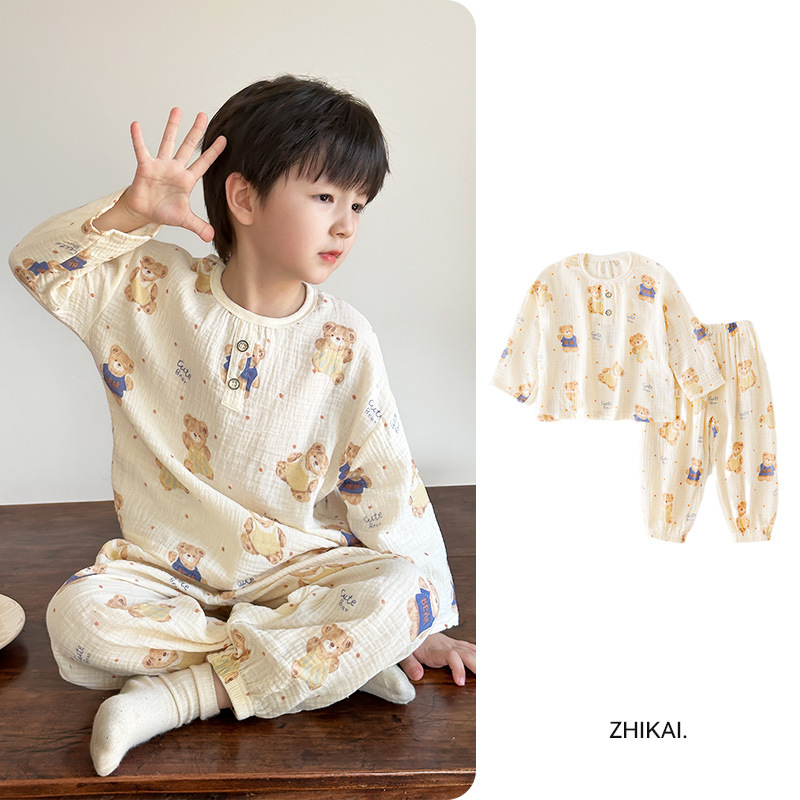 어린이 잠옷 여름 순수 코튼 홈 의류 세트 클래스 A 코튼 만화 Nezha 소년과 소녀 면화 실크 에어컨 의류