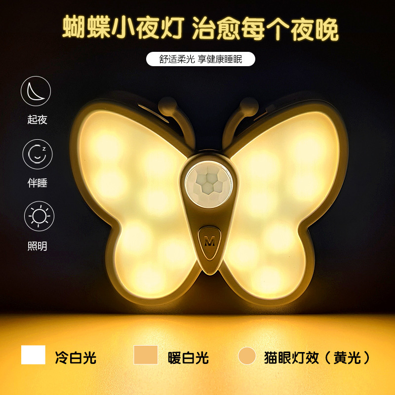 • 나비 센서 캣아이 야간 조명 충전식 3색 조명 1팩 YDA1