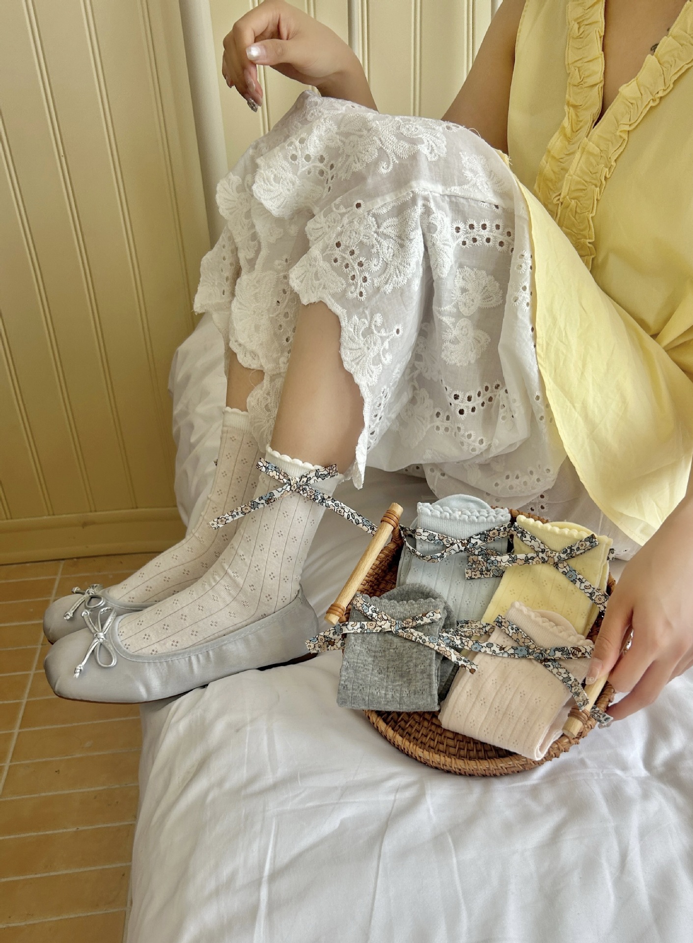 일본 잡지 스타일 꽃 메쉬 뼈없는 양말 여자 여름 얇은 올매치 통기성 메쉬 한국식 면 양말 송무