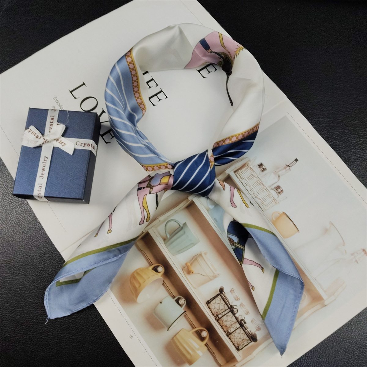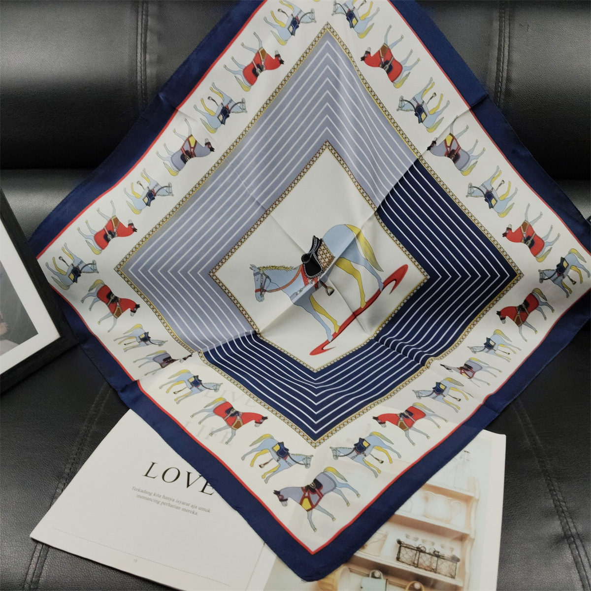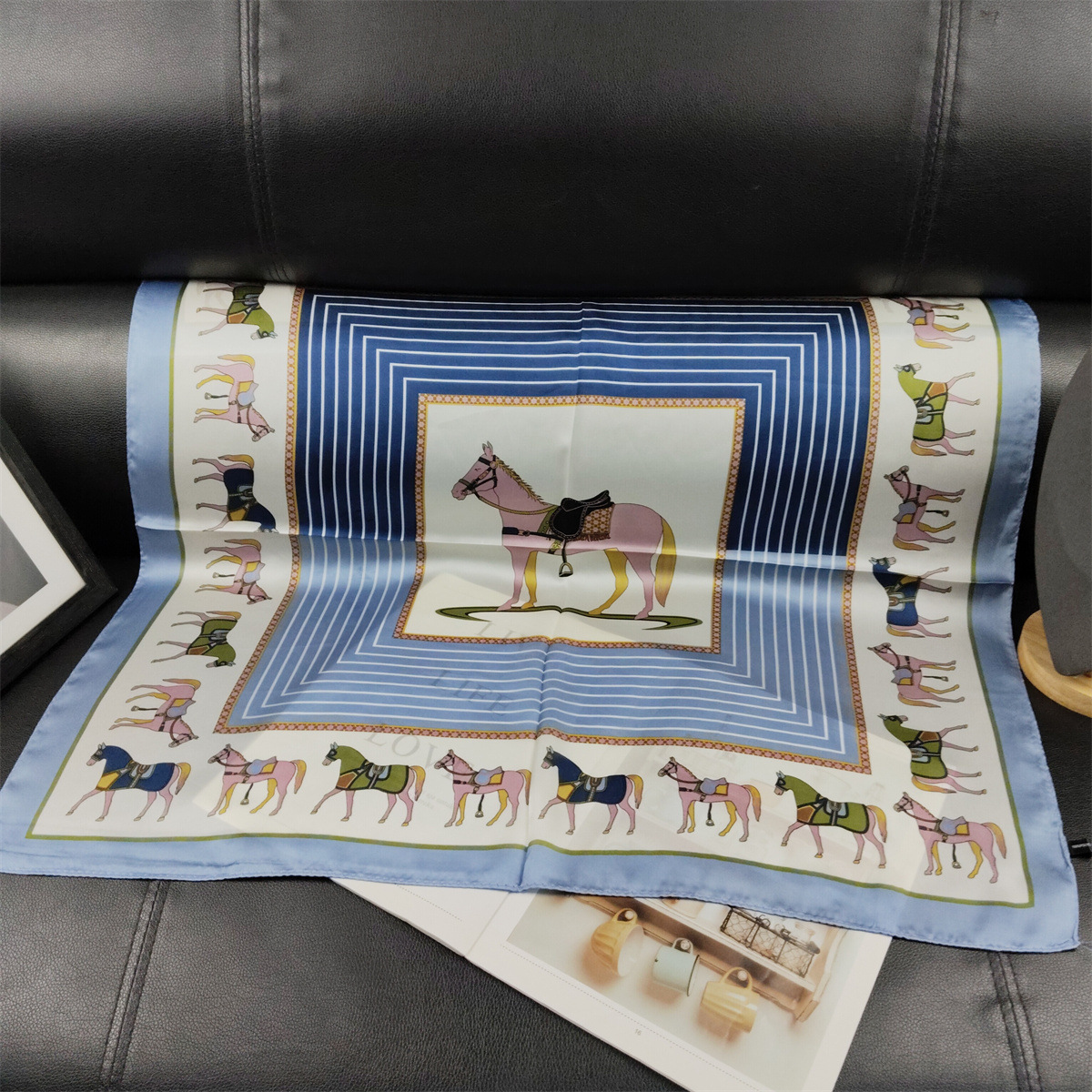 대외 무역 새로운 70cm 고급 캐리지 작은 사각형 스카프 봄과 여름 시뮬레이션 실크 인쇄 실크 스카프 여성 얇은 스카프 태양 보호 머리 스카프스토어 가기