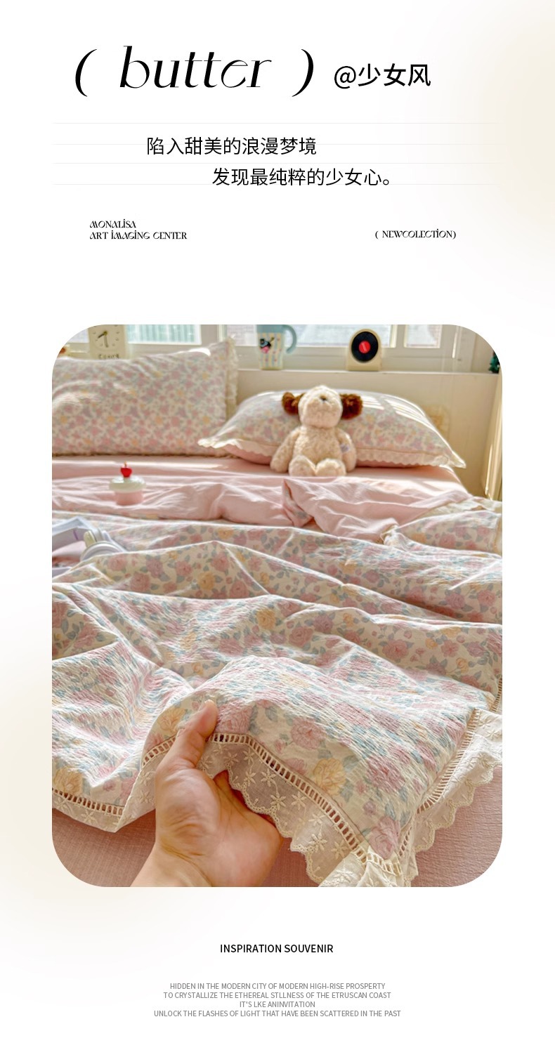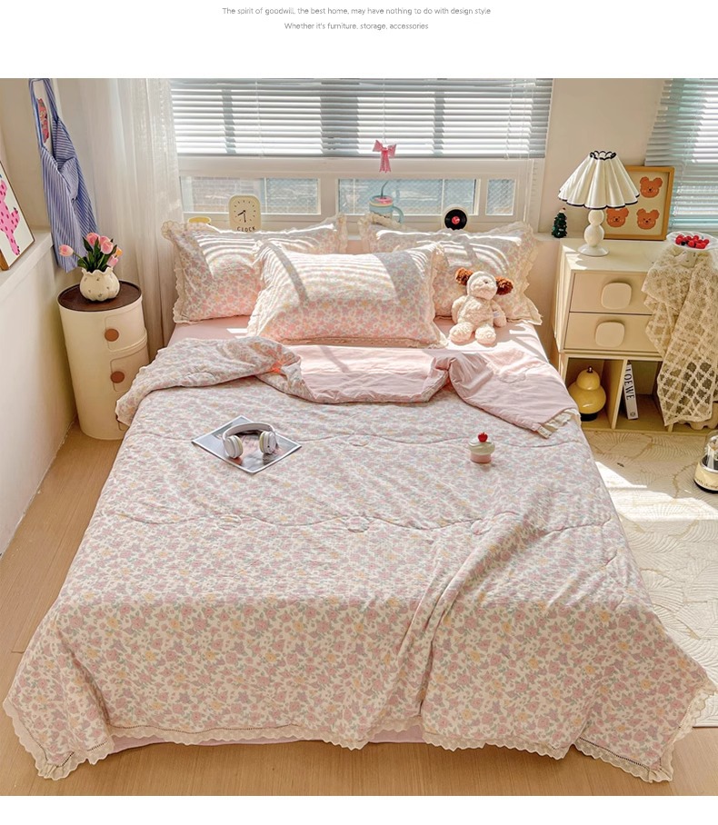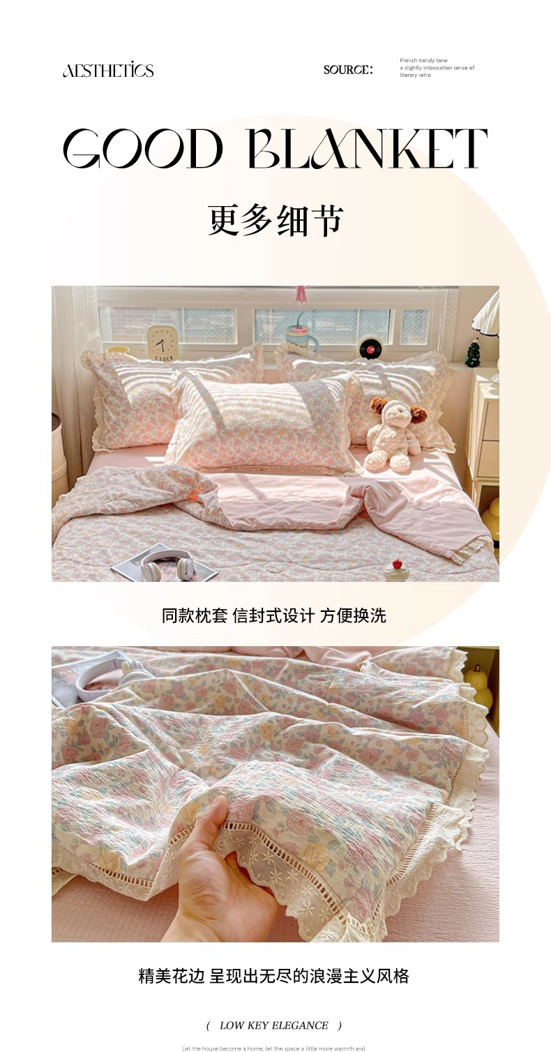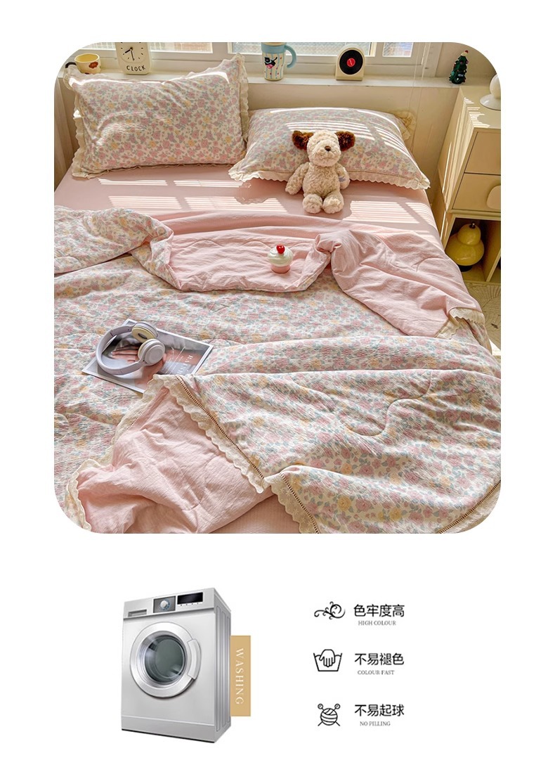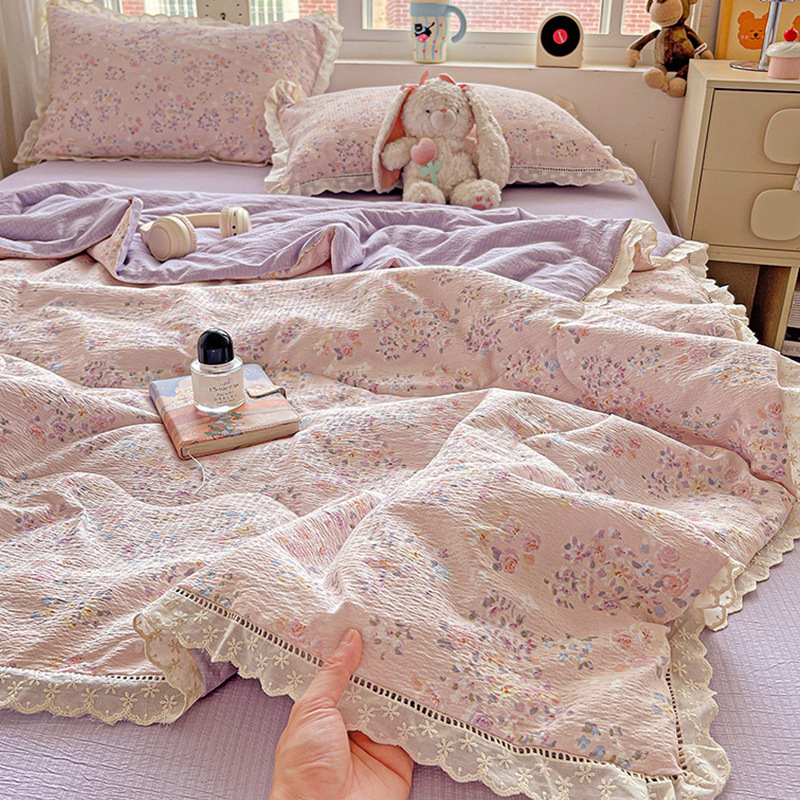 Kapok 주름 원사 레이스 여름 퀼트 4 피스 세트 프랑스 소녀 공주 스타일 알몸 잠자는 에어컨 이불 여름 이불스토어 가기