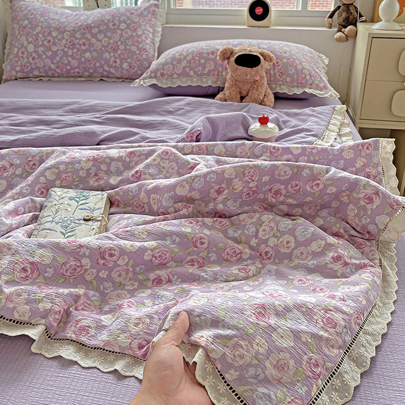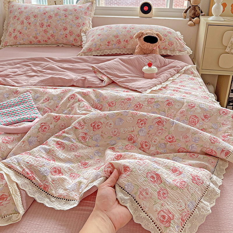 Kapok 주름 원사 레이스 여름 퀼트 4 피스 세트 프랑스 소녀 공주 스타일 알몸 잠자는 에어컨 이불 여름 이불