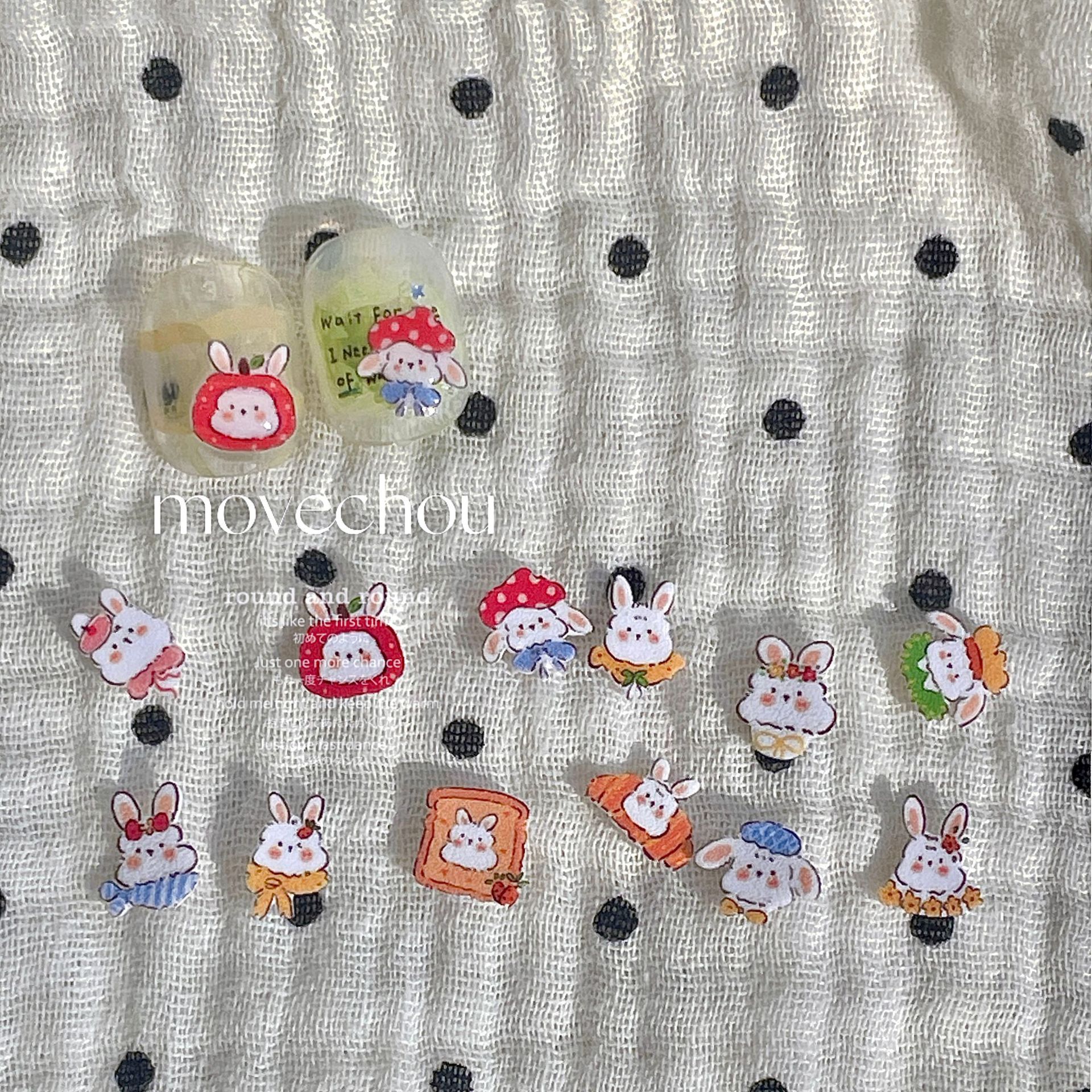한국 스타일 인 스타일 짧은 손톱 빵 토스트 토끼 네일 아트 액세서리 일러스트 핸드북 귀여운 웨어러블 네일 액세서리