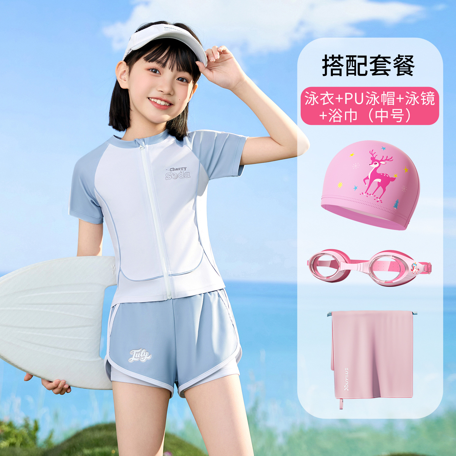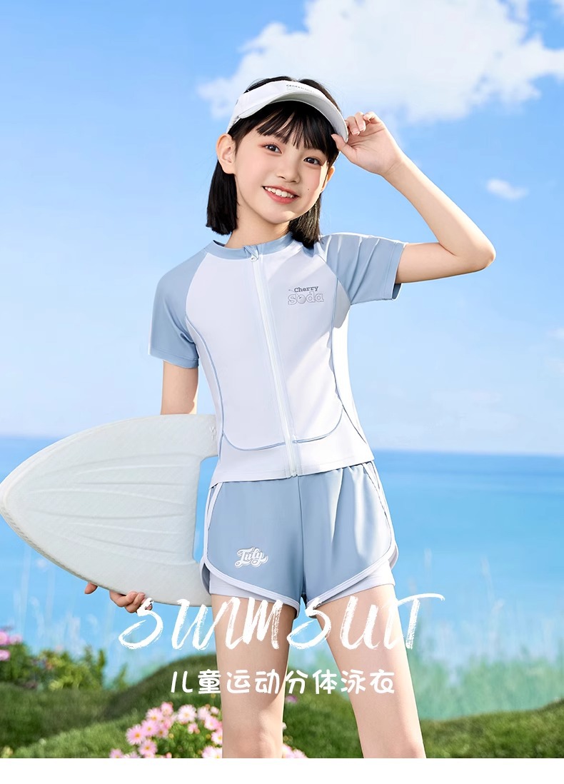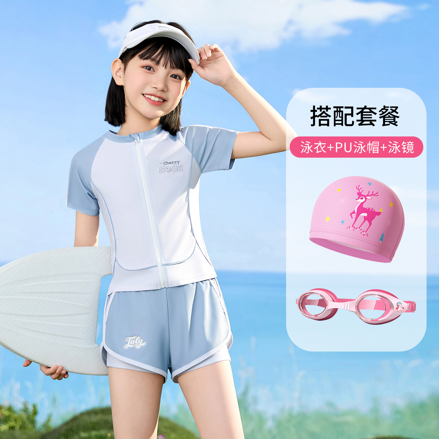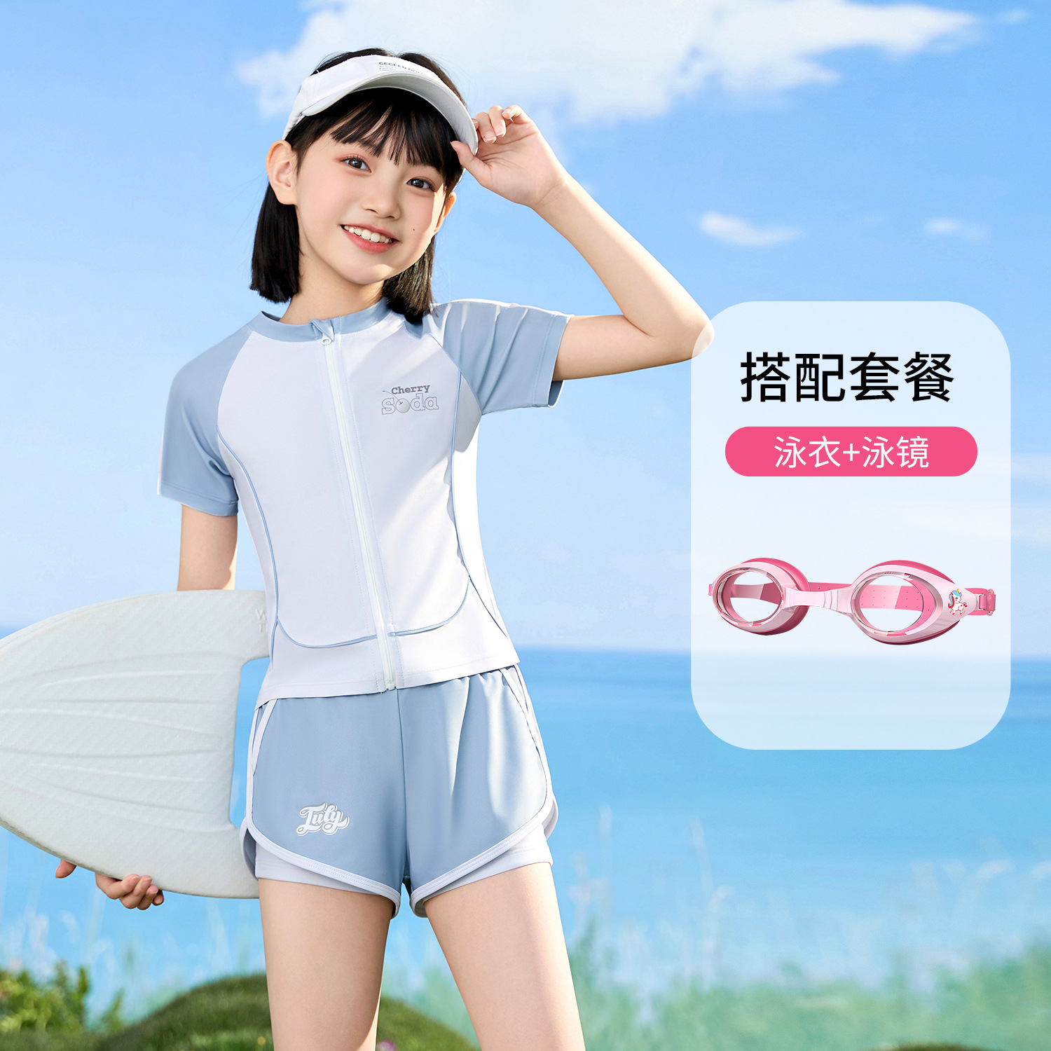 아동 수영복 여아 2025 신형 스플릿 자외선 차단 투피스 세트 중학생 및 대형 아동 속건 수영복 장비스토어 가기