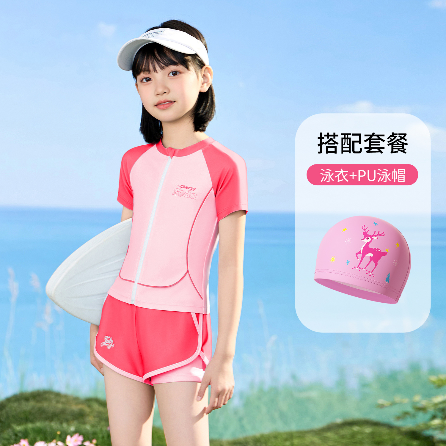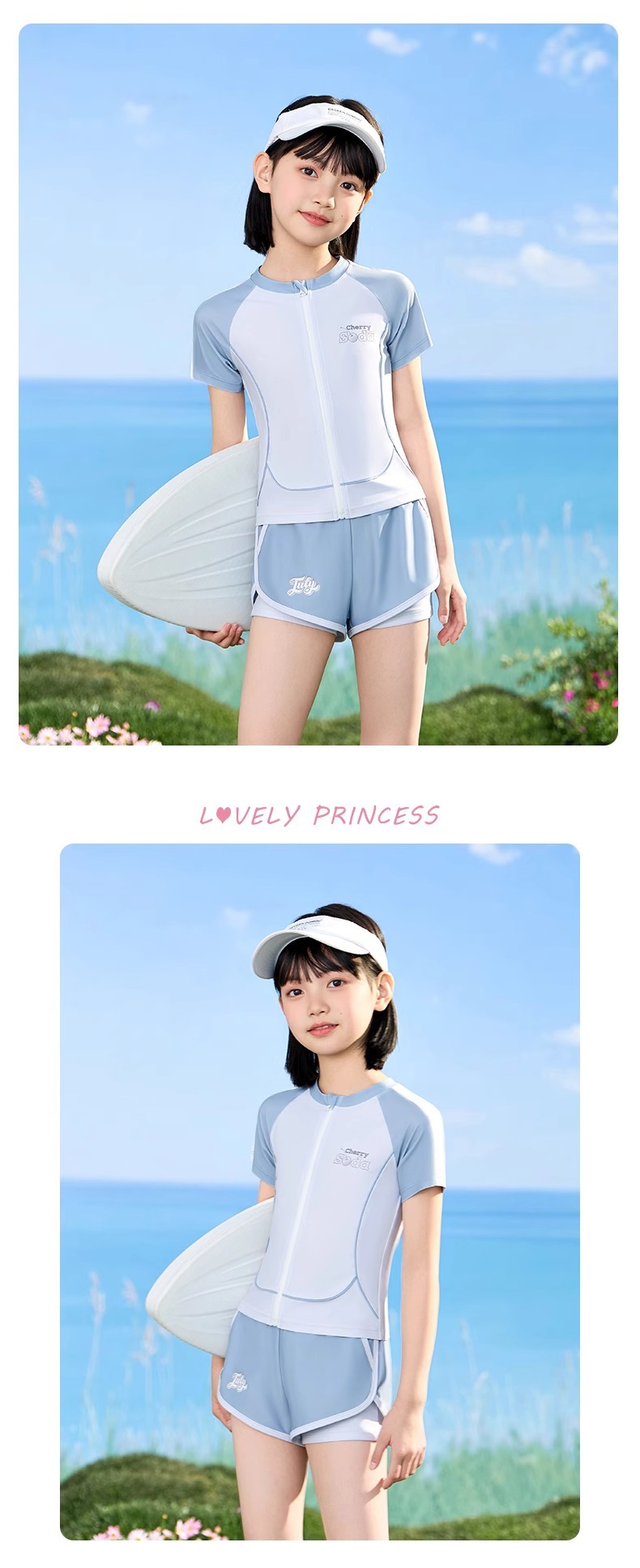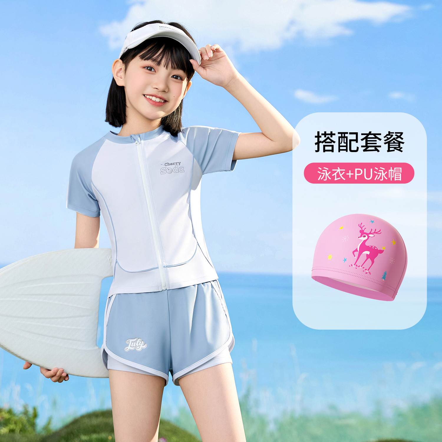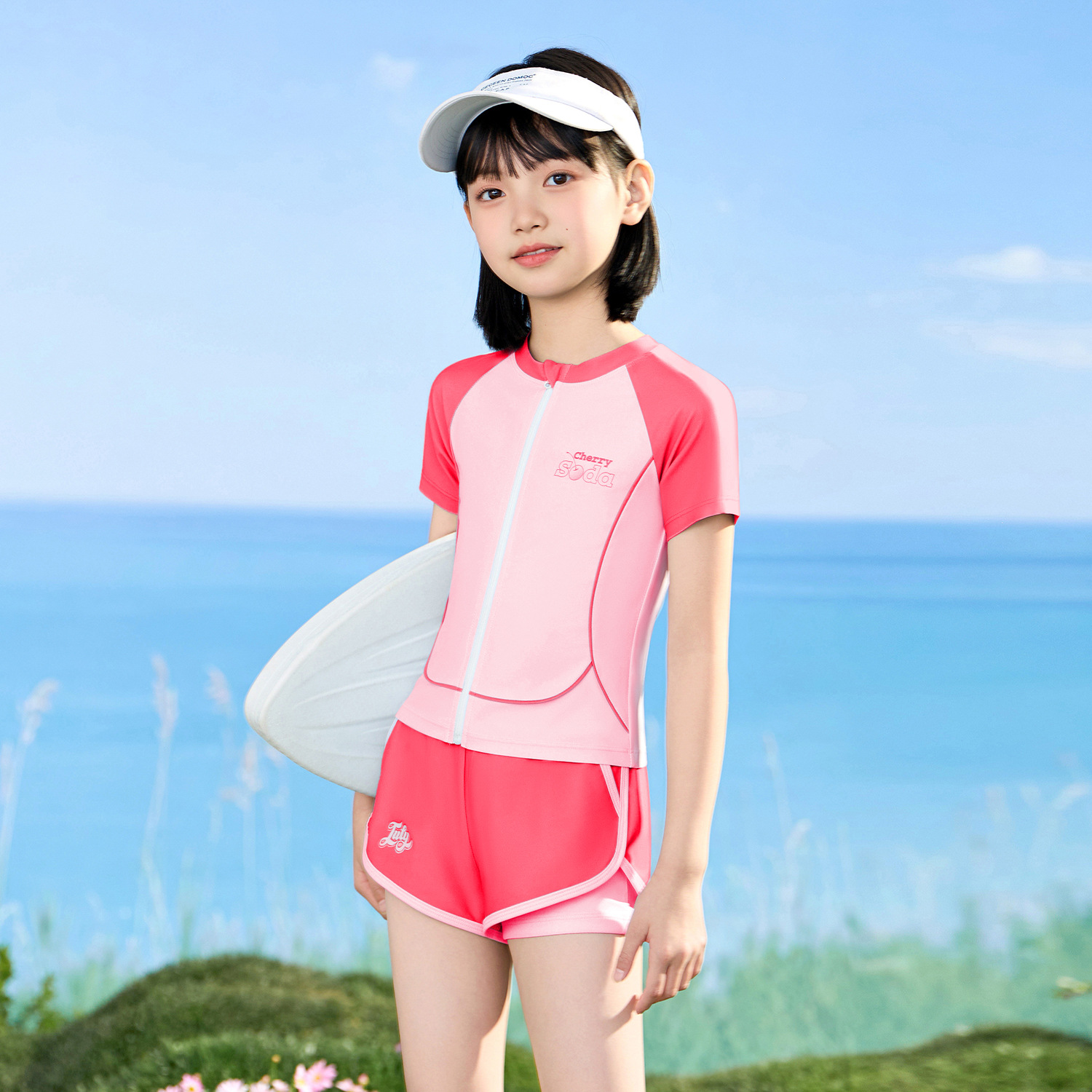 아동 수영복 여아 2025 신형 스플릿 자외선 차단 투피스 세트 중학생 및 대형 아동 속건 수영복 장비스토어 가기
