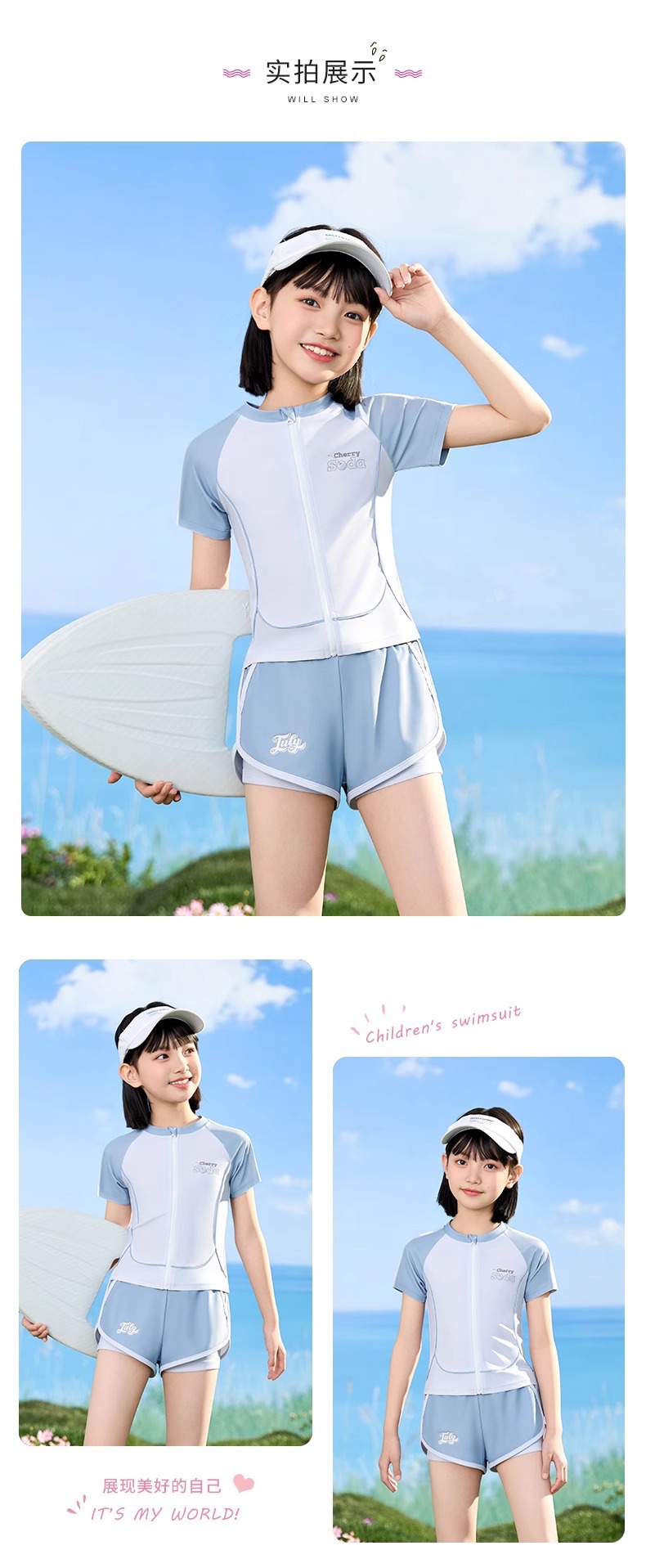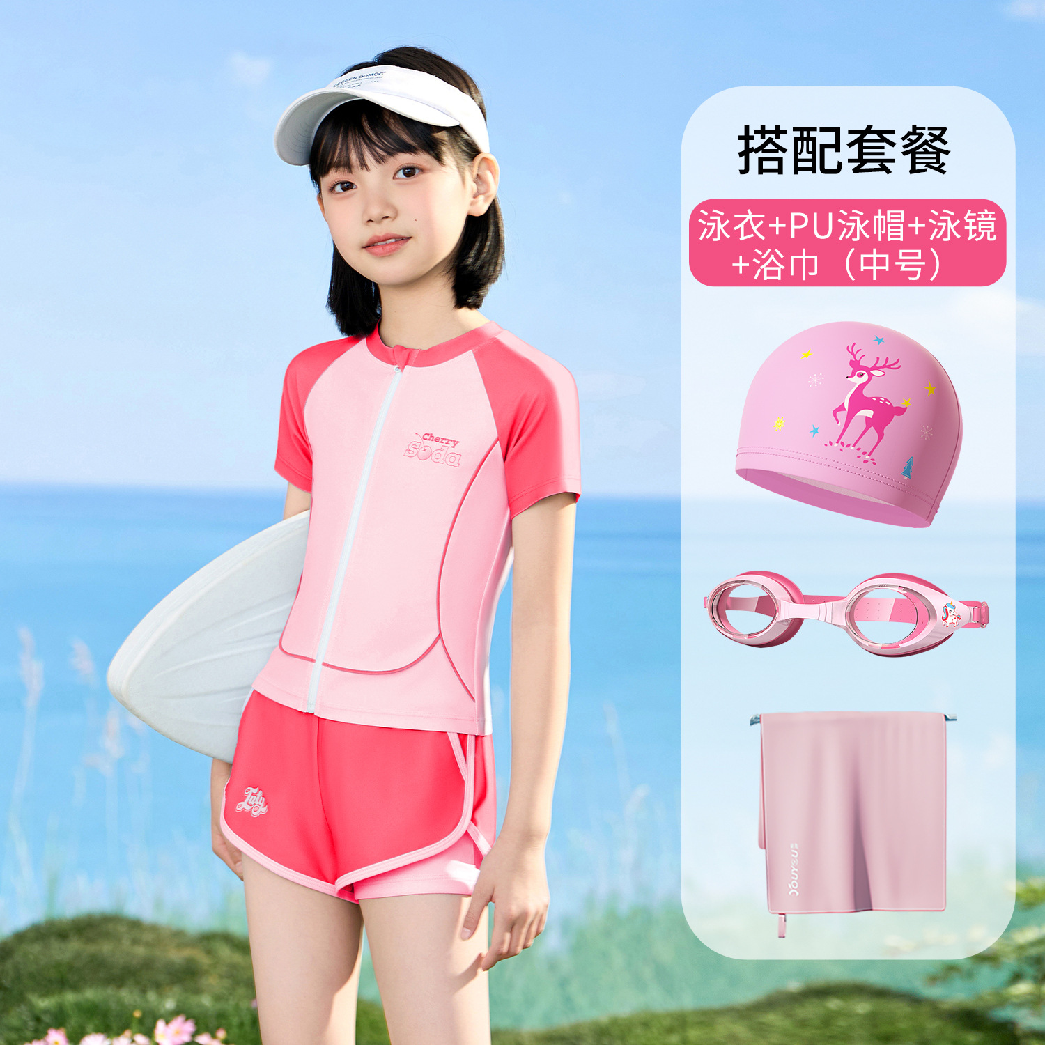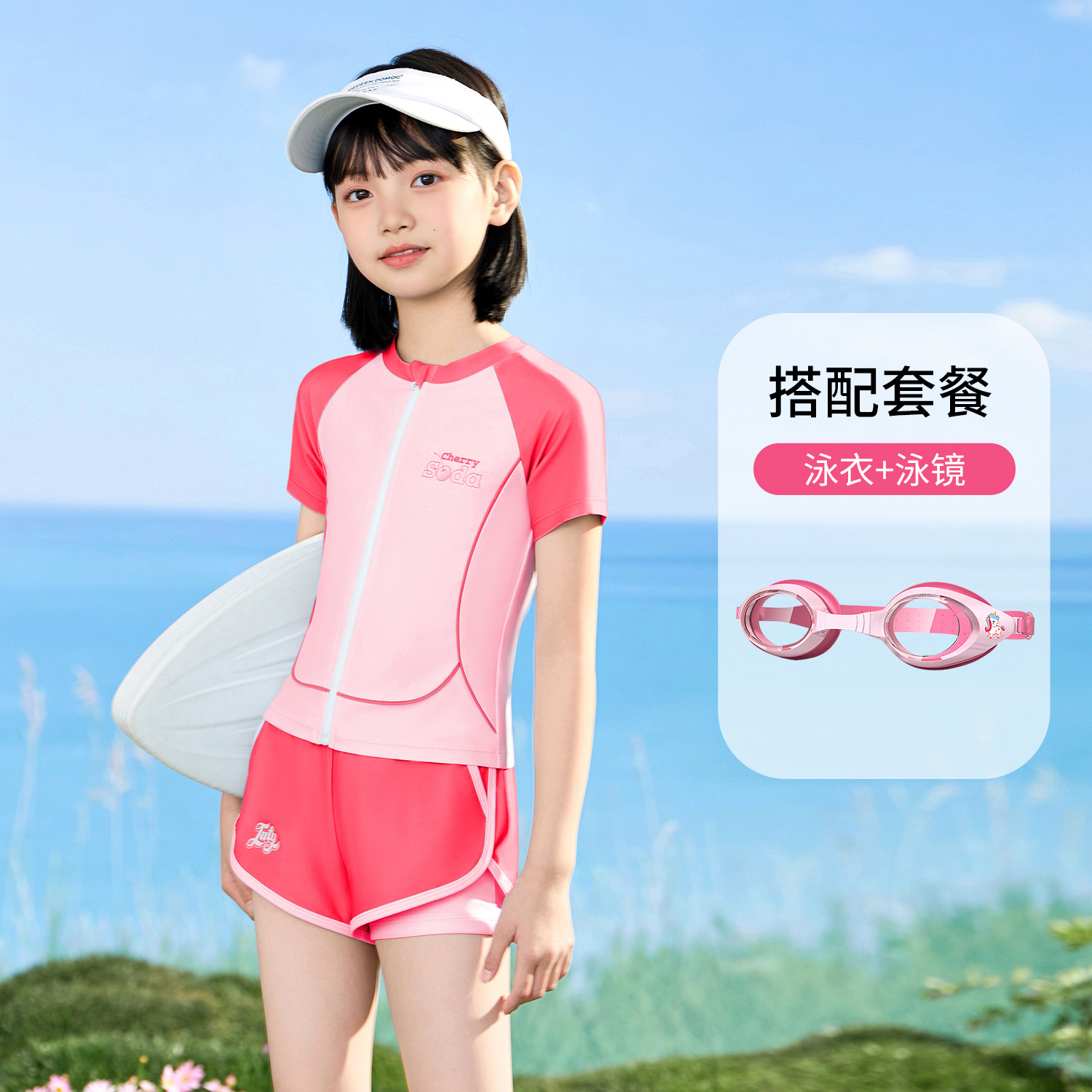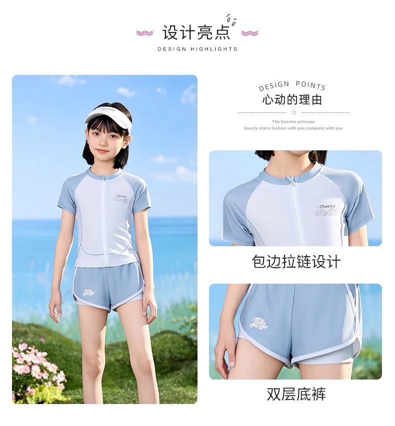 아동 수영복 여아 2025 신형 스플릿 자외선 차단 투피스 세트 중학생 및 대형 아동 속건 수영복 장비스토어 가기