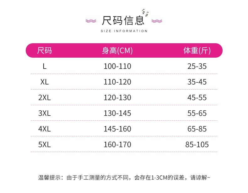 • 3XL (권장 키 130-140cm, 몸무게 30-35kg )