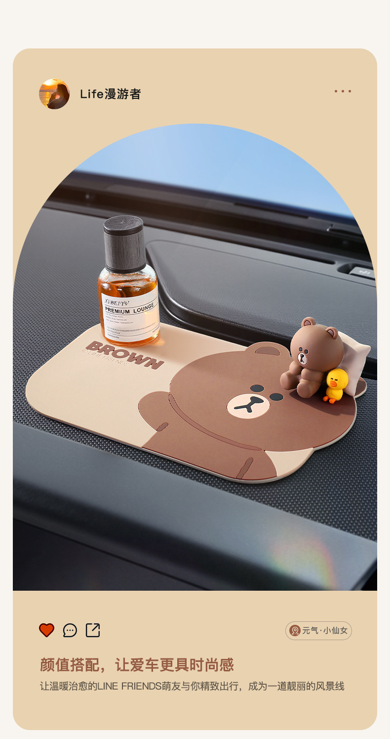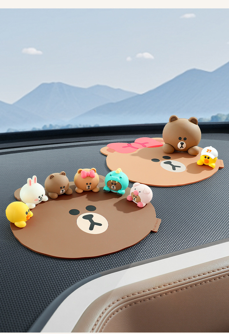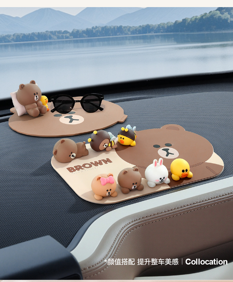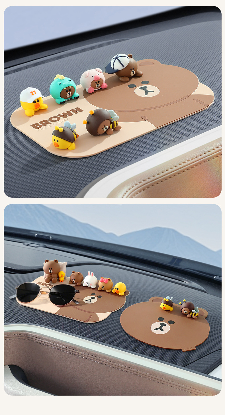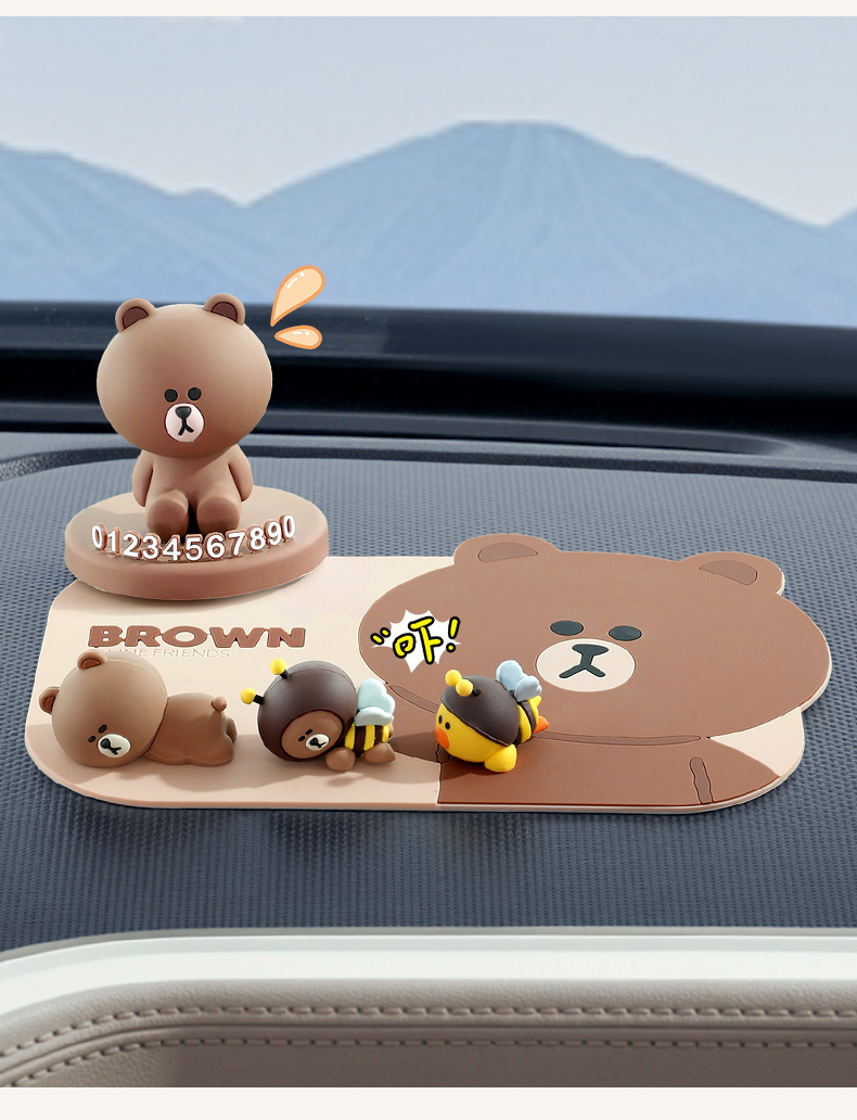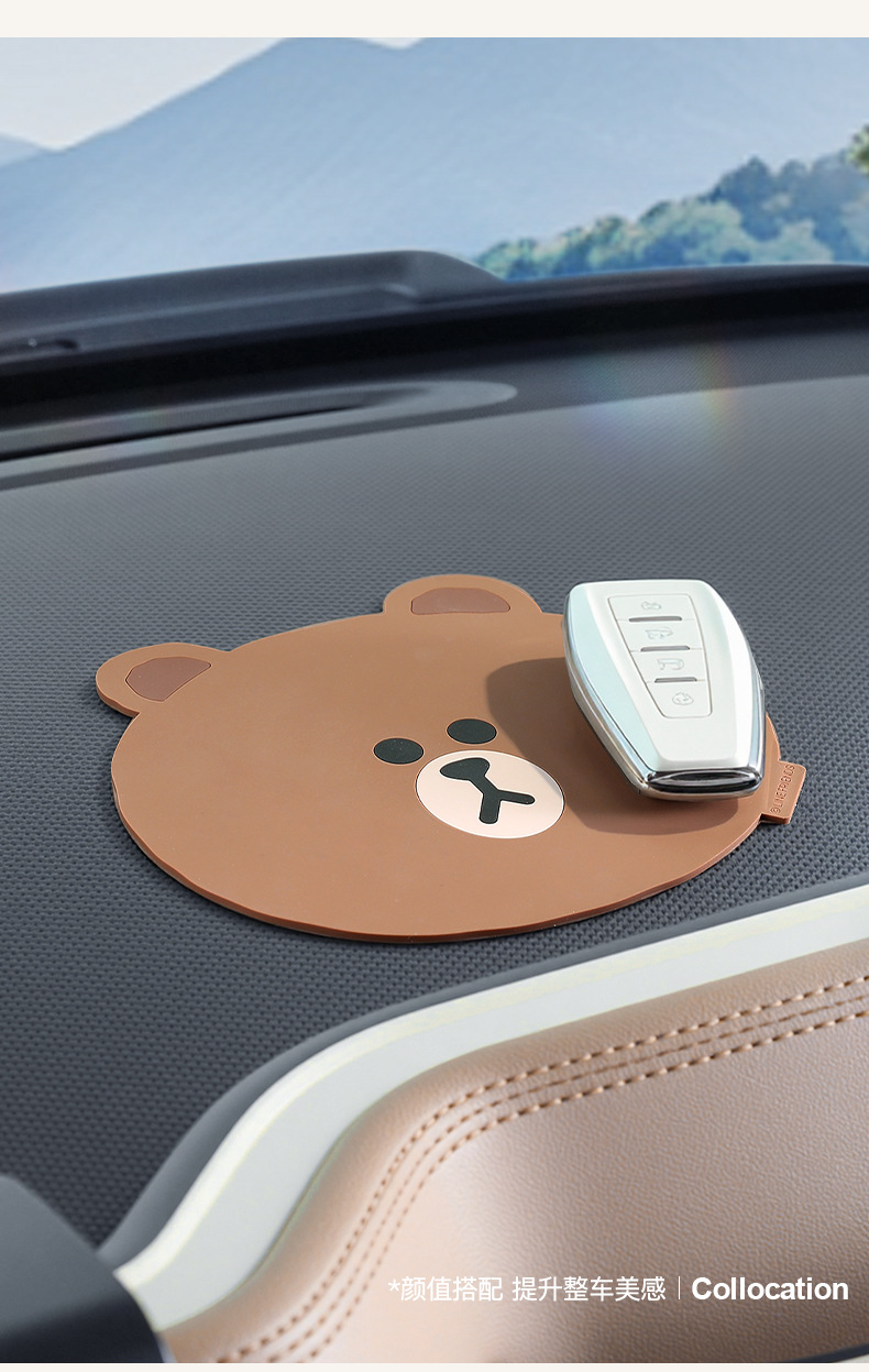 다크 브라운 곰 자동차 미끄럼 방지 매트 만화 매트 자동차 장식 창조적 인 센터 콘솔 휴대 전화 고정 매트 방수스토어 가기
