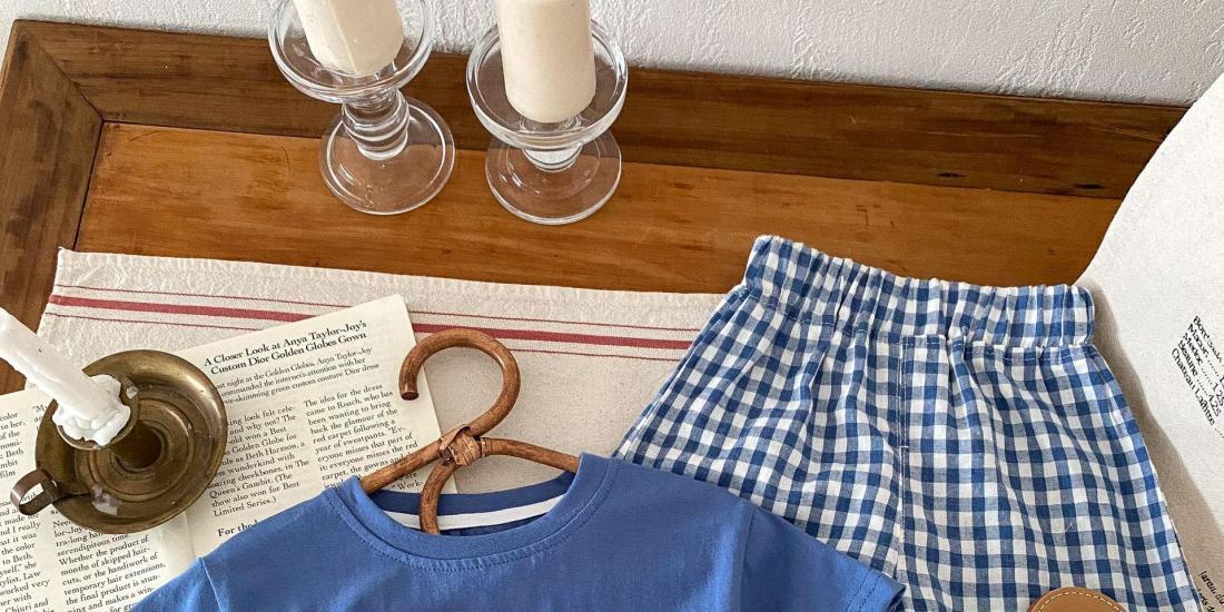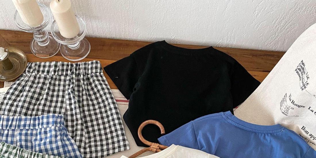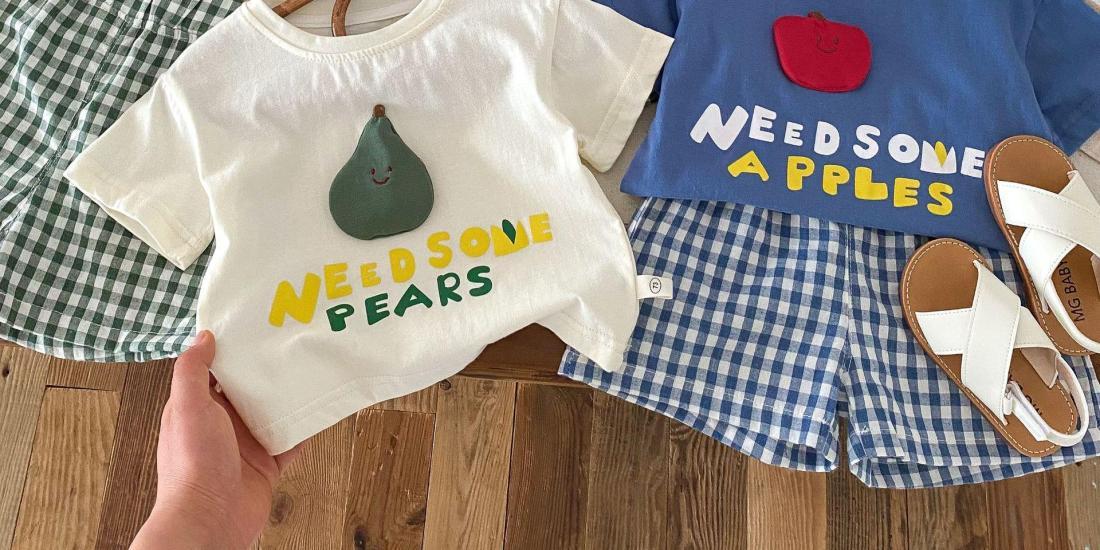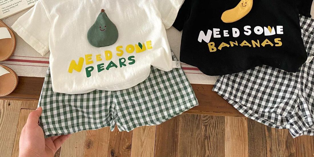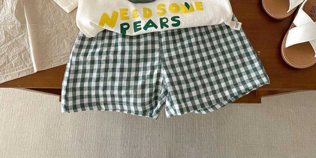 어린이 격자 무늬 정장 여름 옷 2025 새로운 스타일 아기 소년 편지 티셔츠 소녀 반팔 반바지 투피스 세트스토어 가기