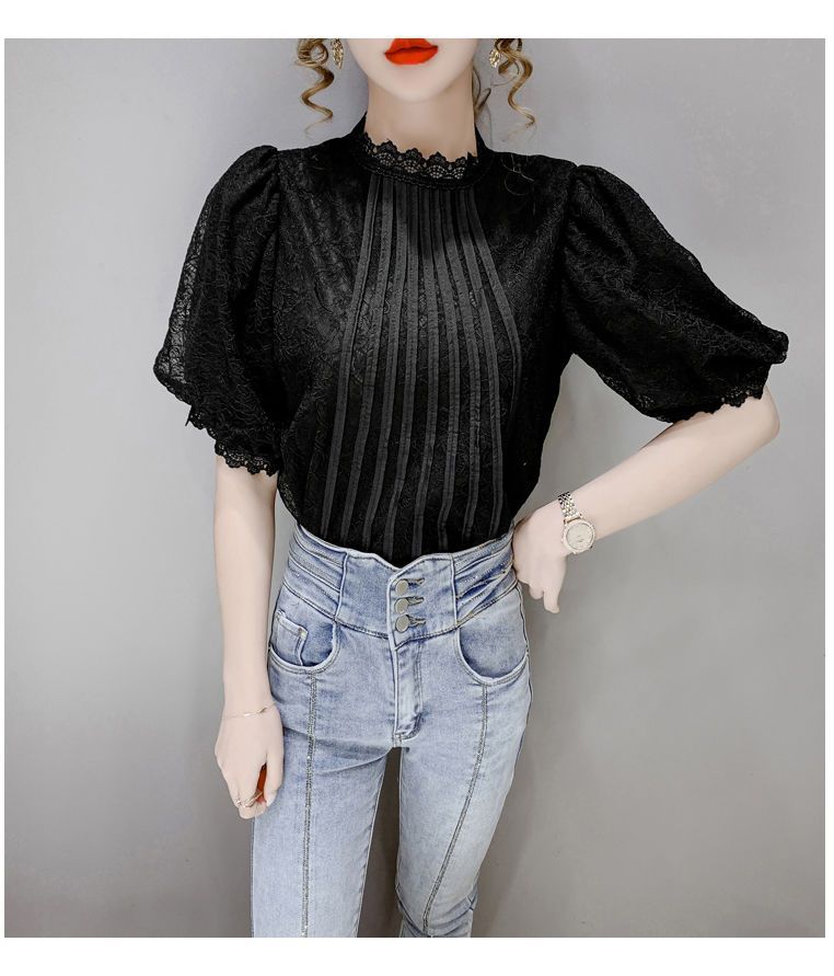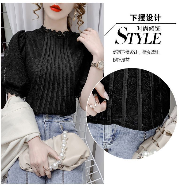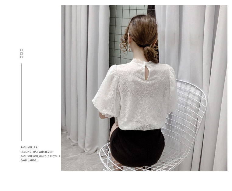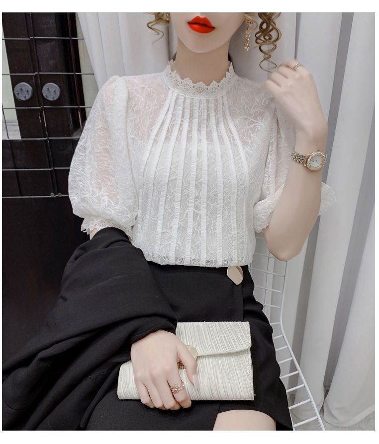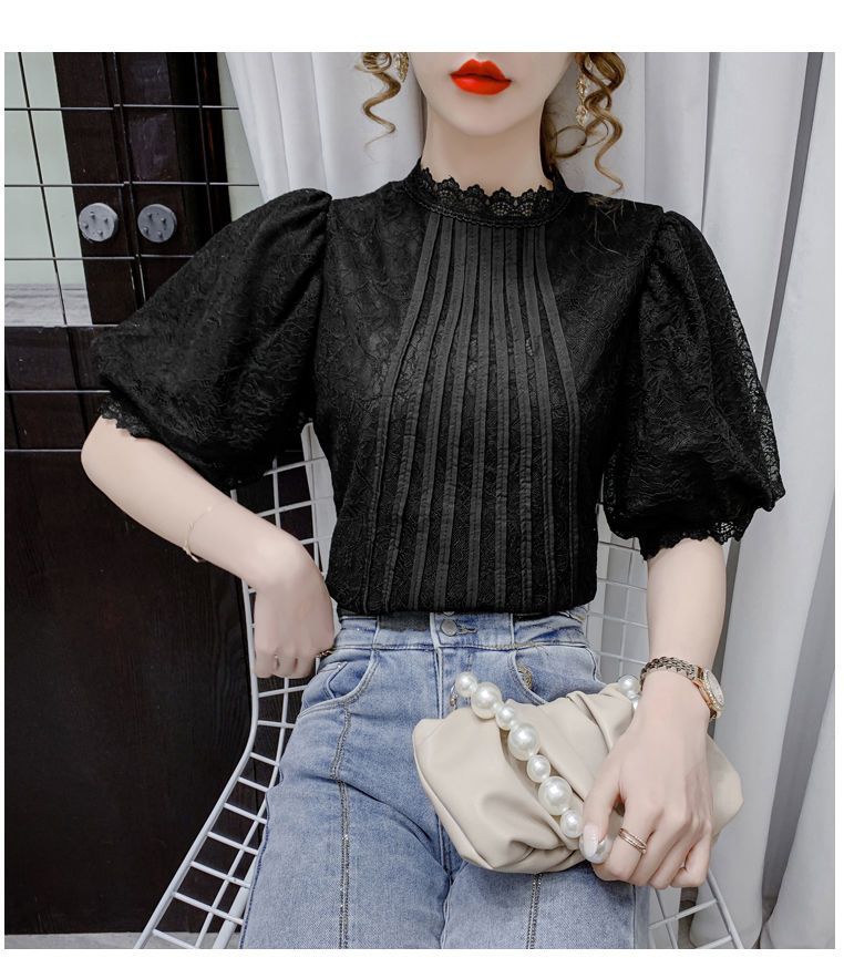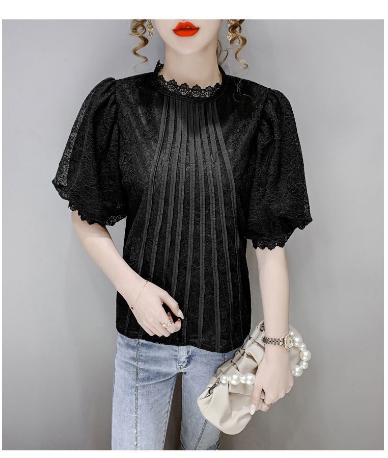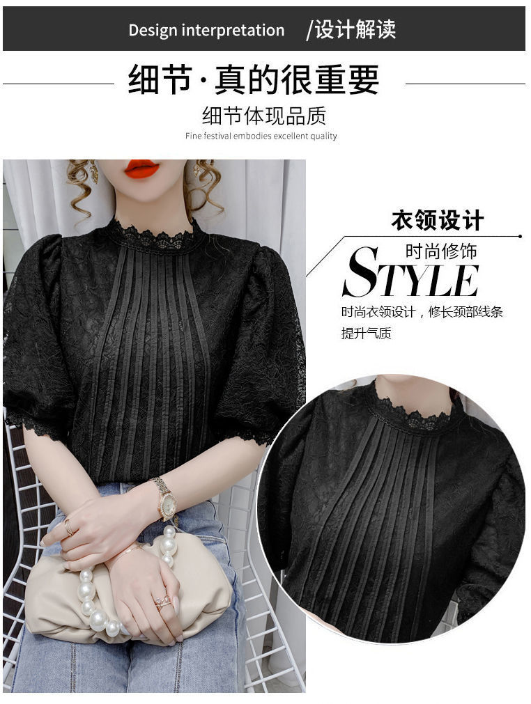 화이트 여성 탑 2025 여름 새 스타일 버블 반팔 쉬폰 셔츠 얇은 셔츠 여성을위한 세련된 레이스 셔츠