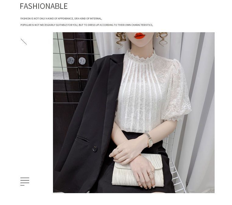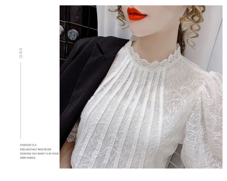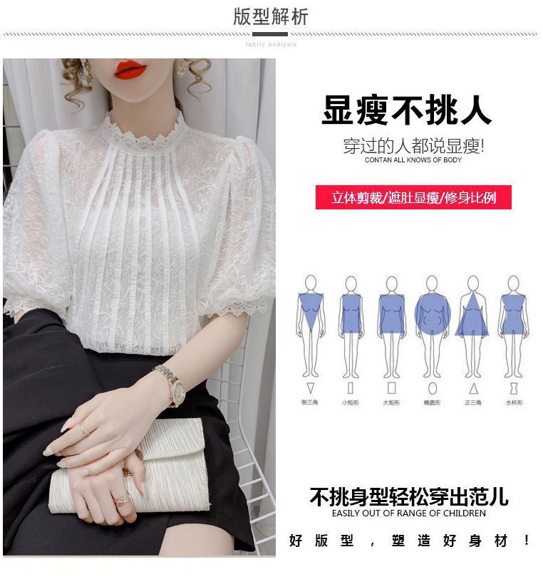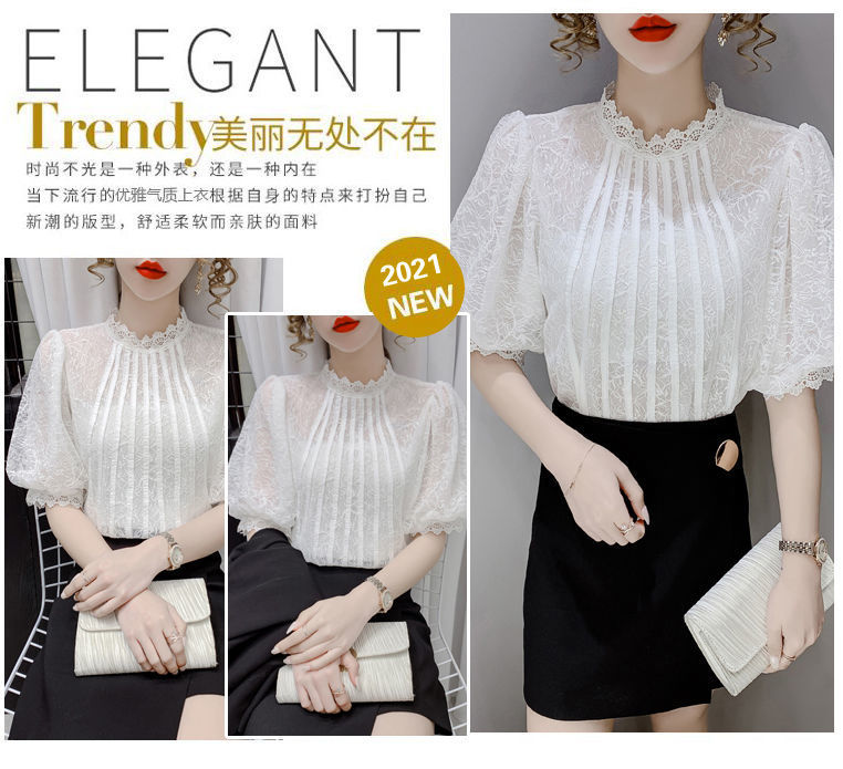 화이트 여성 탑 2025 여름 새 스타일 버블 반팔 쉬폰 셔츠 얇은 셔츠 여성을위한 세련된 레이스 셔츠스토어 가기