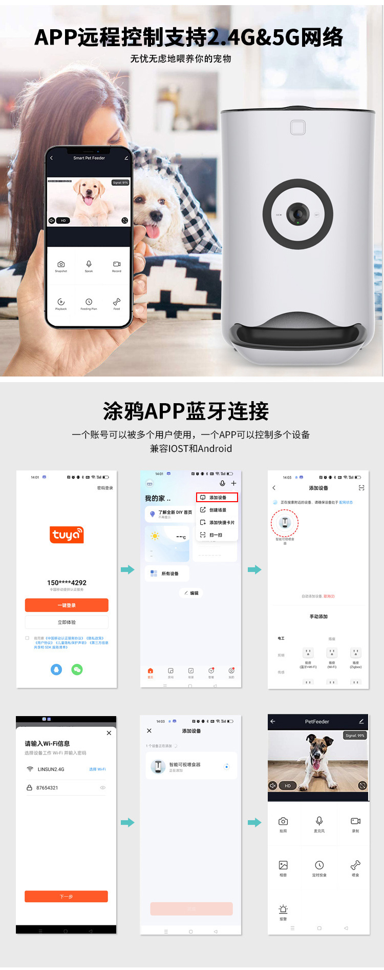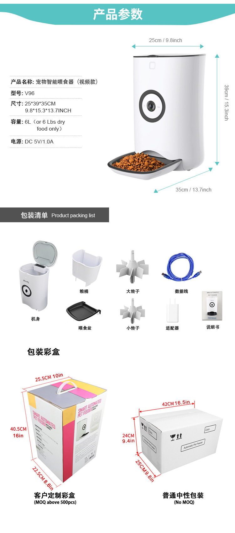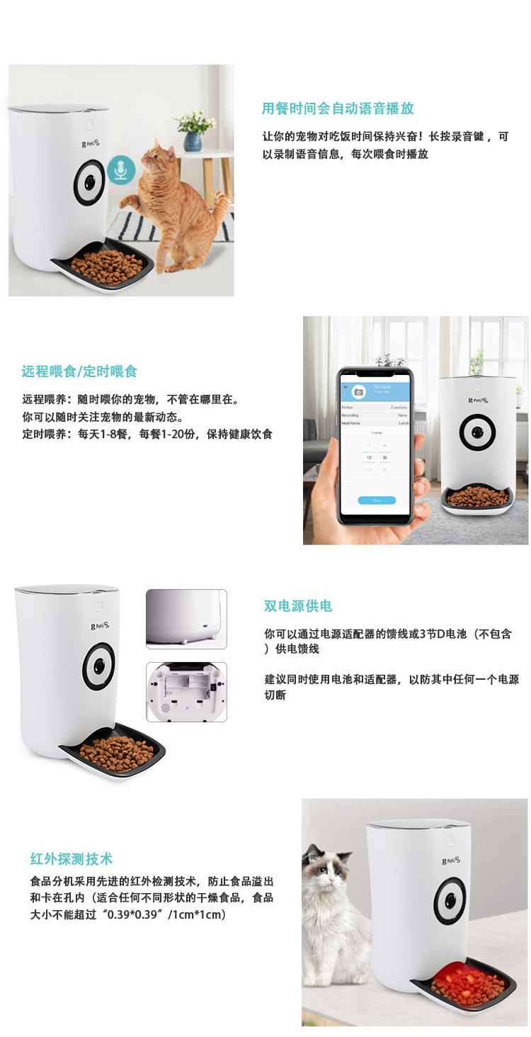 애완동물 자동 급식기, 지능형 5G 모니터링, 시각적 개밥, 애완동물 시간 및 정량 고양이 먹이 공급, 원격 시각화스토어 가기