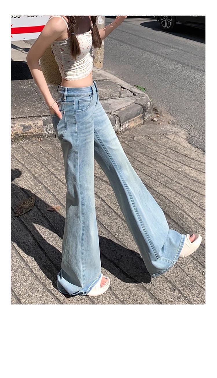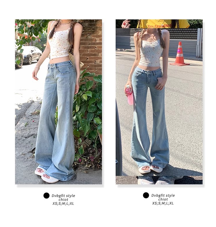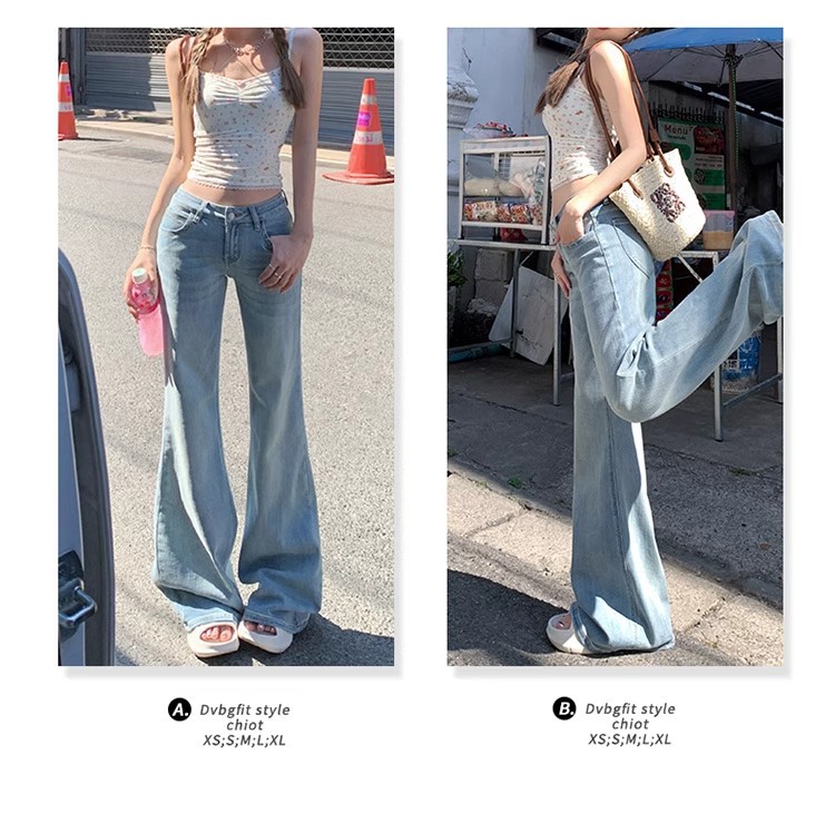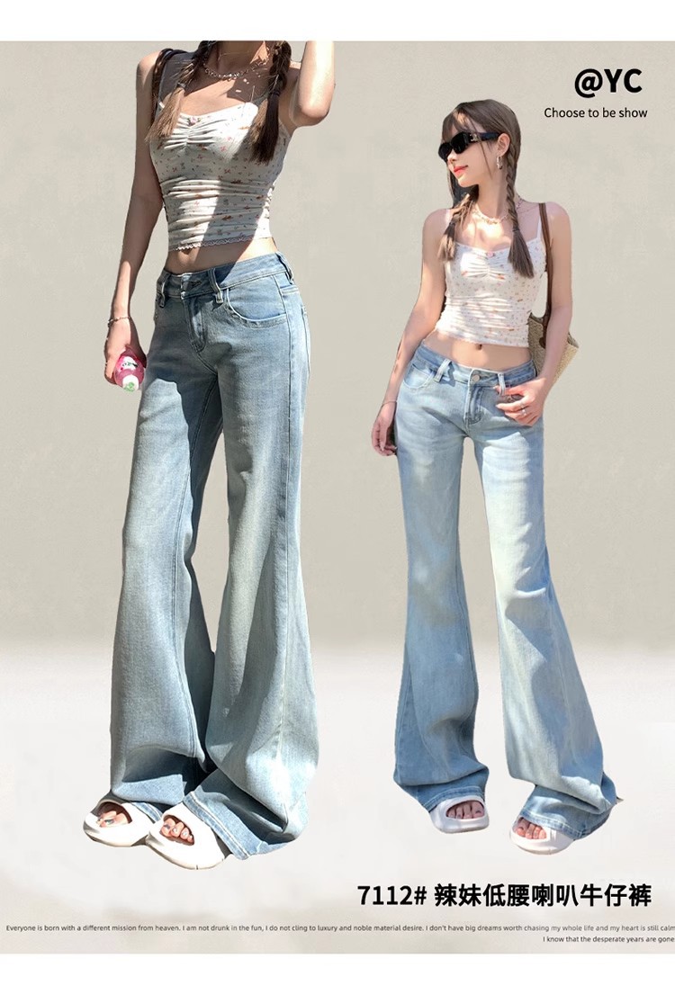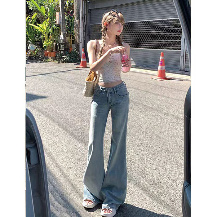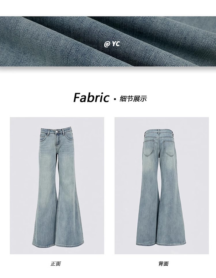 2025년 신상 봄 여름 로우 웨이스트 신축성 있는 연청 데님 플레어 팬츠 여성용, 다용도 활용 가능, 슬림핏, 마이크로 플레어, 트렌디한 여성용 바지스토어 가기