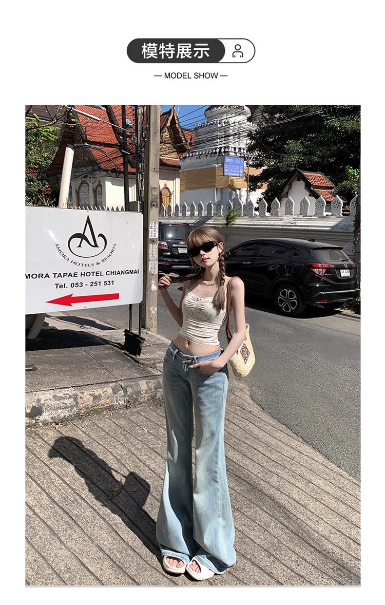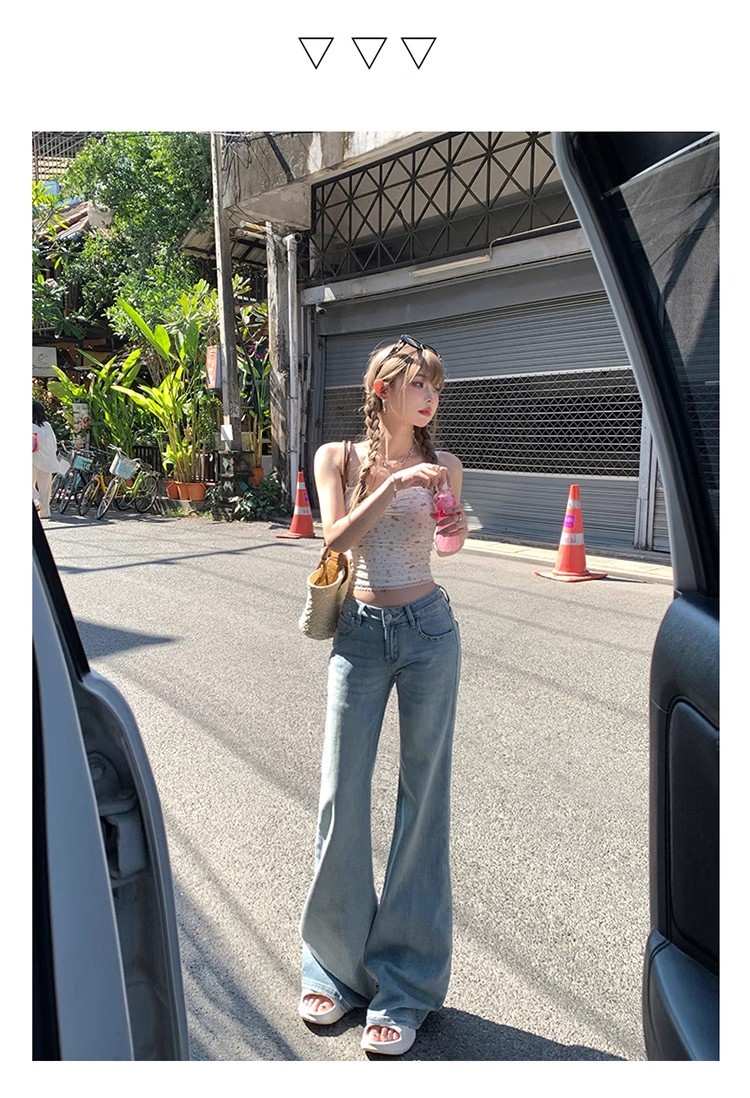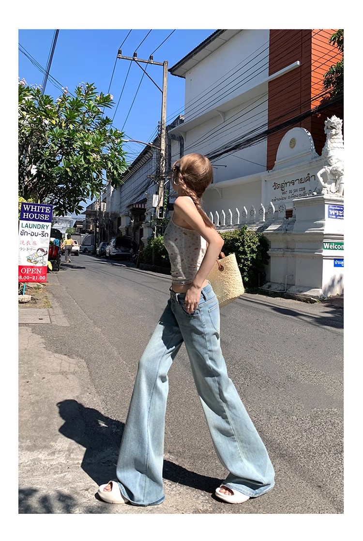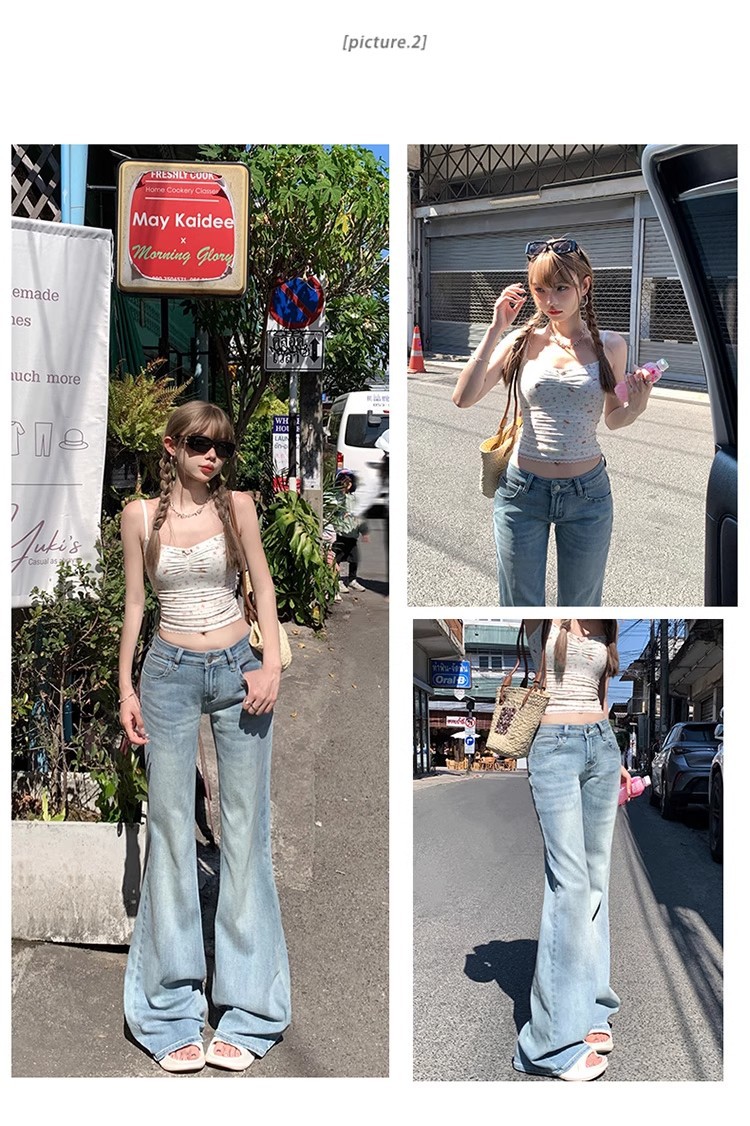 2025년 신상 봄 여름 로우 웨이스트 신축성 있는 연청 데님 플레어 팬츠 여성용, 다용도 활용 가능, 슬림핏, 마이크로 플레어, 트렌디한 여성용 바지스토어 가기